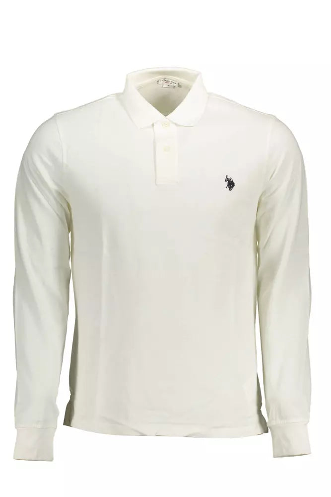 U.S. POLO ASSN. delivers timeless elegance with this crisp white polo shirt, perfect for a man who appreciates classic style with a modern twist. The meticulously crafted embroidery logo on the chest heralds luxury, while the pure cotton material promises breathable comfort. Tailored with long sleeves and a smart two-button placket, this polo is a must-have for those who seek to marry sophistication with casual wear.