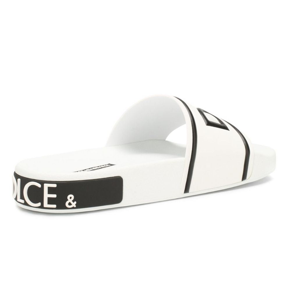 Dolce & Gabbana presents these chic white rubber slides, perfect for adding a touch of elegance to your casual ensembles. Boasting the brand’s iconic logo on the front and side, these slides are crafted with a compact and comfortable design, ideal for everyday wear. Made in the fashion heartland of Italy, they promise both style and quality.