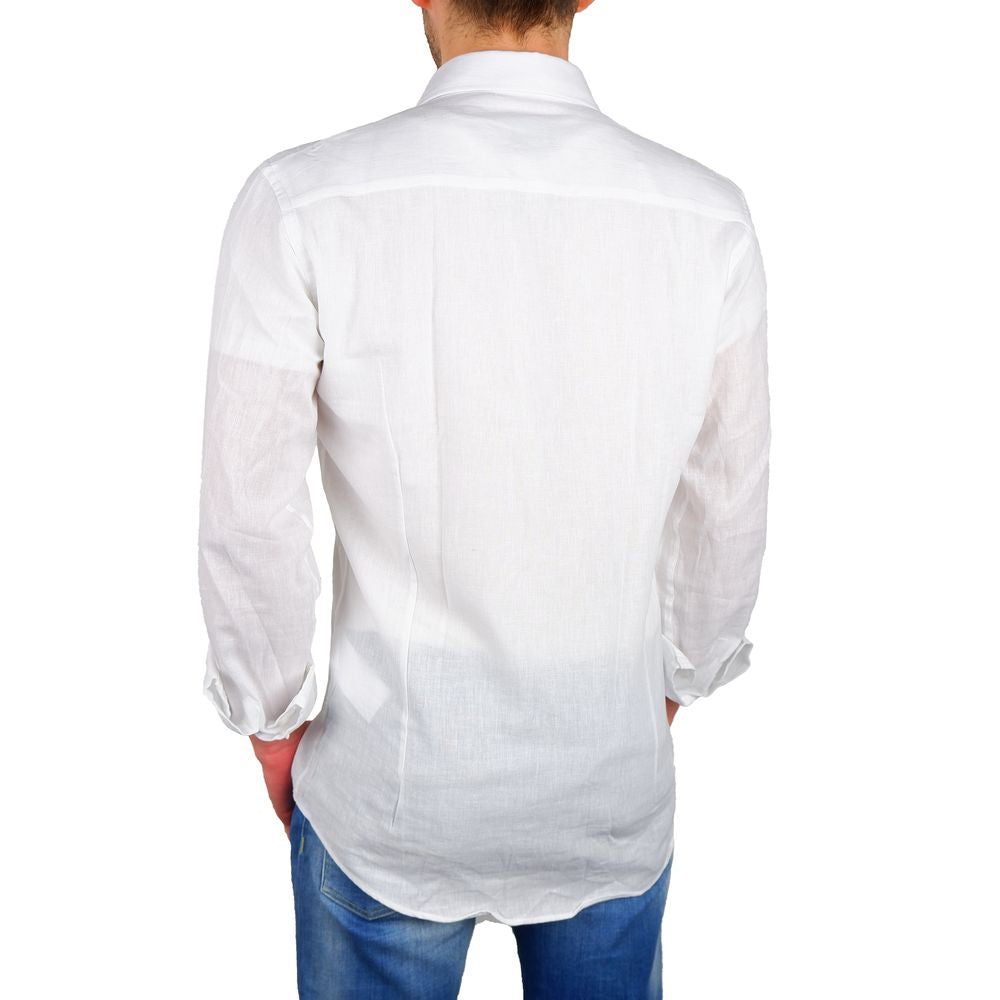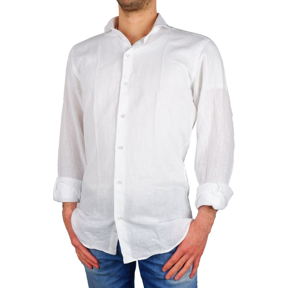 100% Milano Lisbon cotton and linen fabric shirt perfect for spring/summer season, slim fit, button closure. Made in Italy