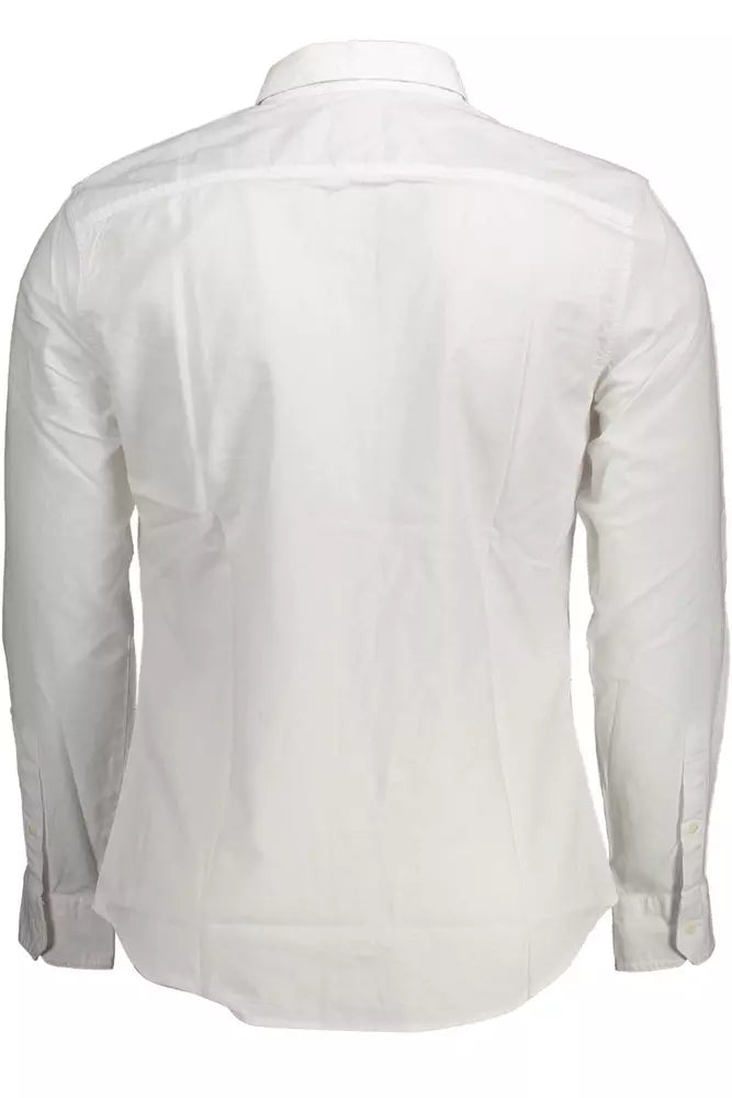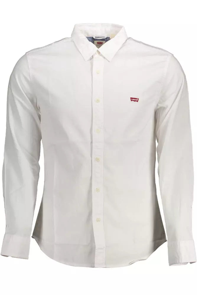 Elevate your wardrobe with the timeless sophistication of a Levi’s long-sleeved shirt. Tailored for a slim fit with an Italian collar, this crisp white shirt exemplifies casual elegance. Adorned with the iconic Levi’s logo and classic one-button cuffs, it seamlessly blends form and function. Perfect for the modern man who appreciates style without sacrificing comfort.