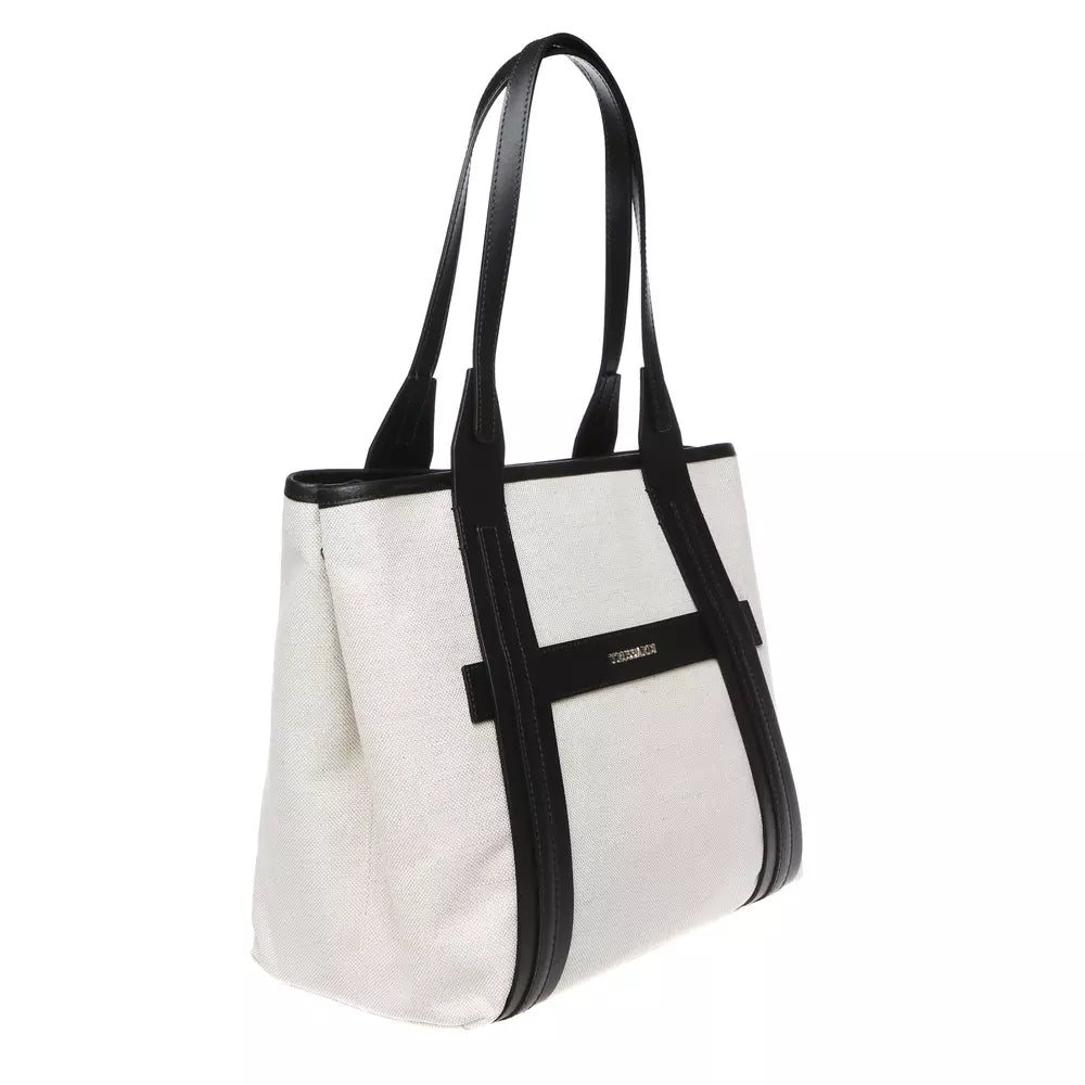 Indulge in the epitome of sophistication with this Trussardi women’s shoulder bag – a perfect blend of functionality and high-end style. The exquisite white fabric is complemented by sumptuous leather handles, offering a chic touch to your ensemble. Its practical snap button closure secures your essentials, while the adjustable shoulder strap ensures comfort on the go. The crafted internal pocket keeps items organized. Distinctly Trussardi, this bag is a timeless accessory for the fashion-forward individual.