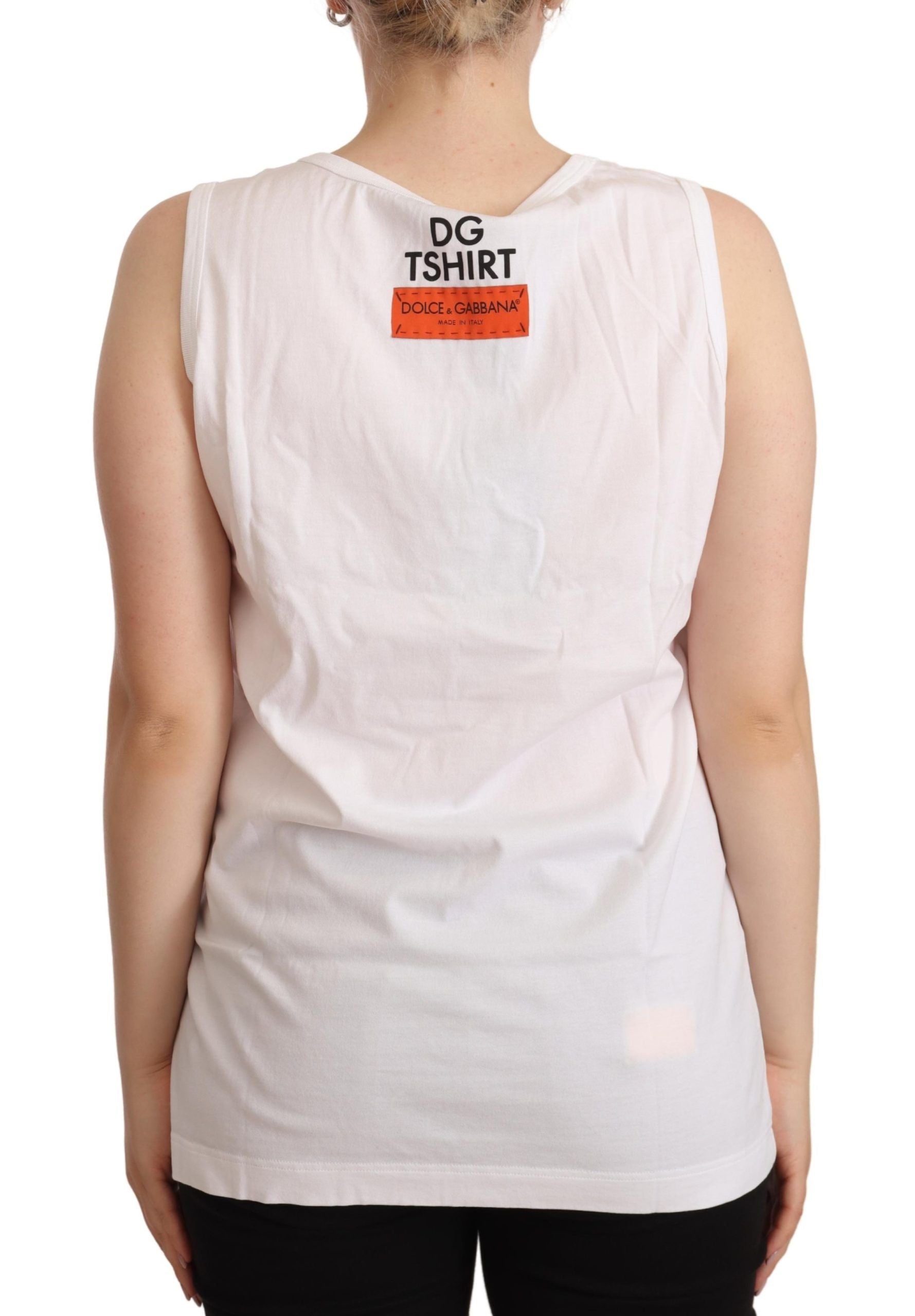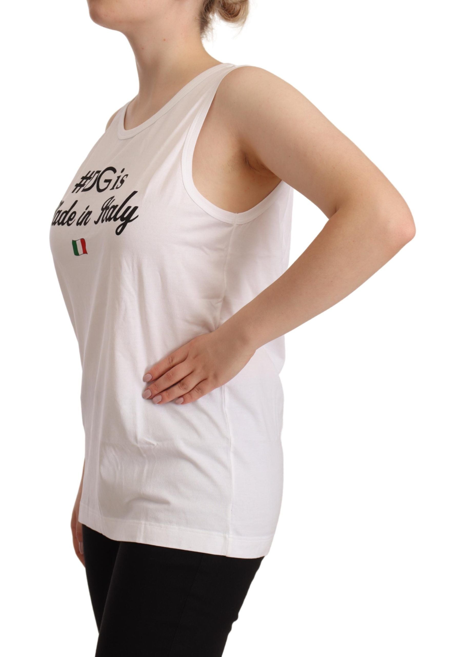 Discover the epitome of summer elegance with this stunning sleeveless top from Dolce & Gabbana. Crafted with luxurious 100% cotton, this gorgeous top proudly embodies the ‘Made in Italy’ prestige. Its crisp white hue is both timeless and versatile, ensuring a perfect match with a variety of outfits for any fashion-forward wardrobe. Detailed with the iconic logo, this piece is a true testament to high fashion and quality.