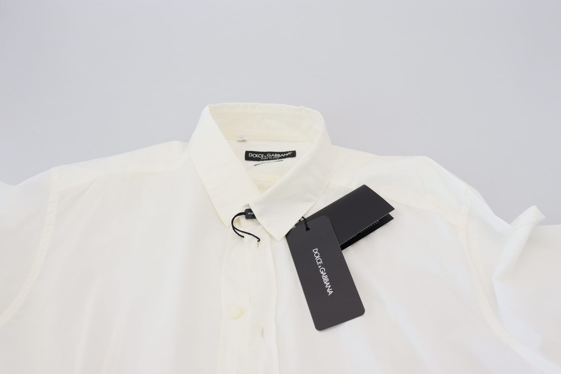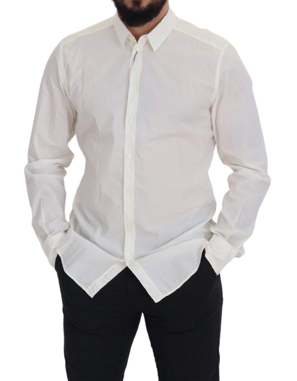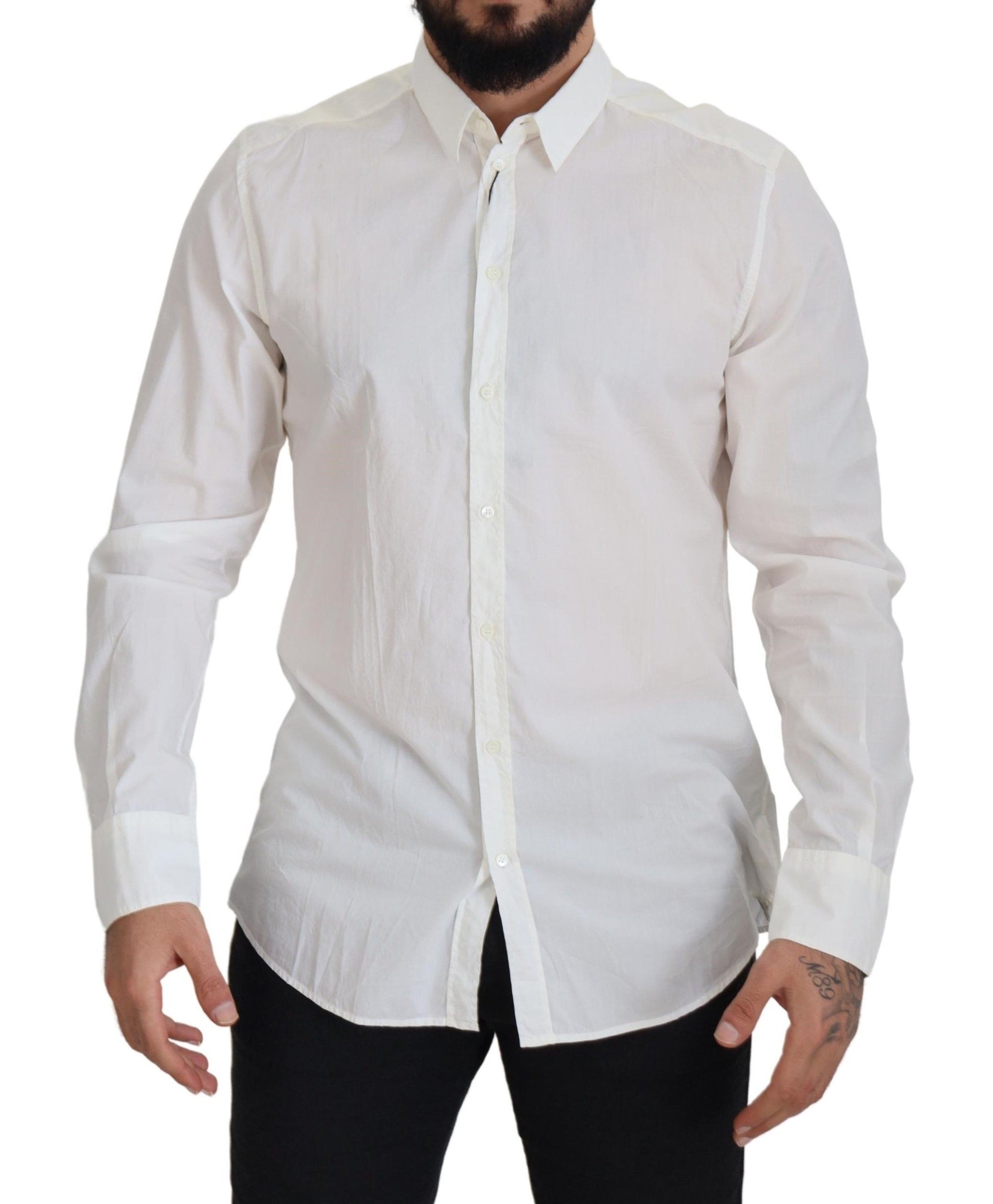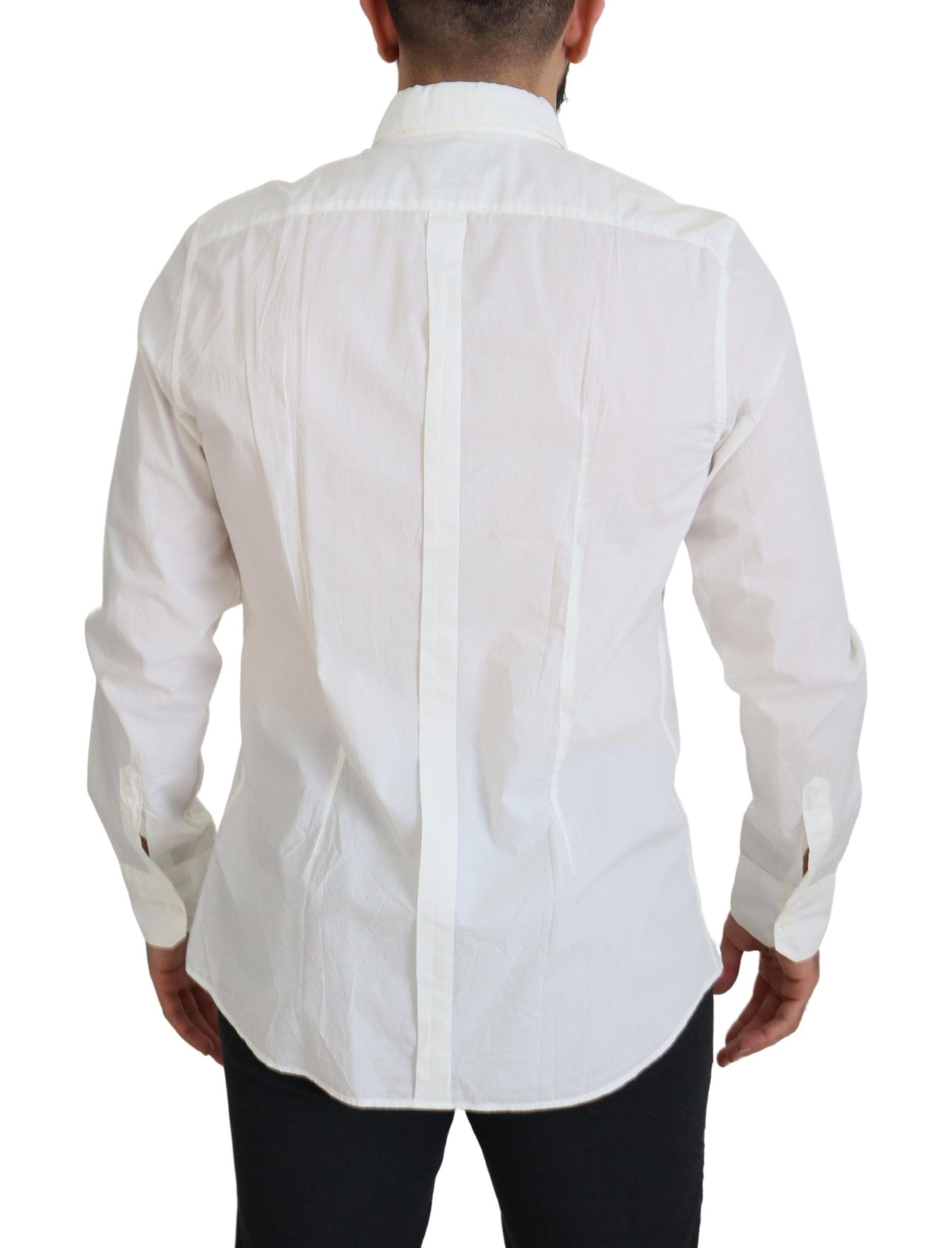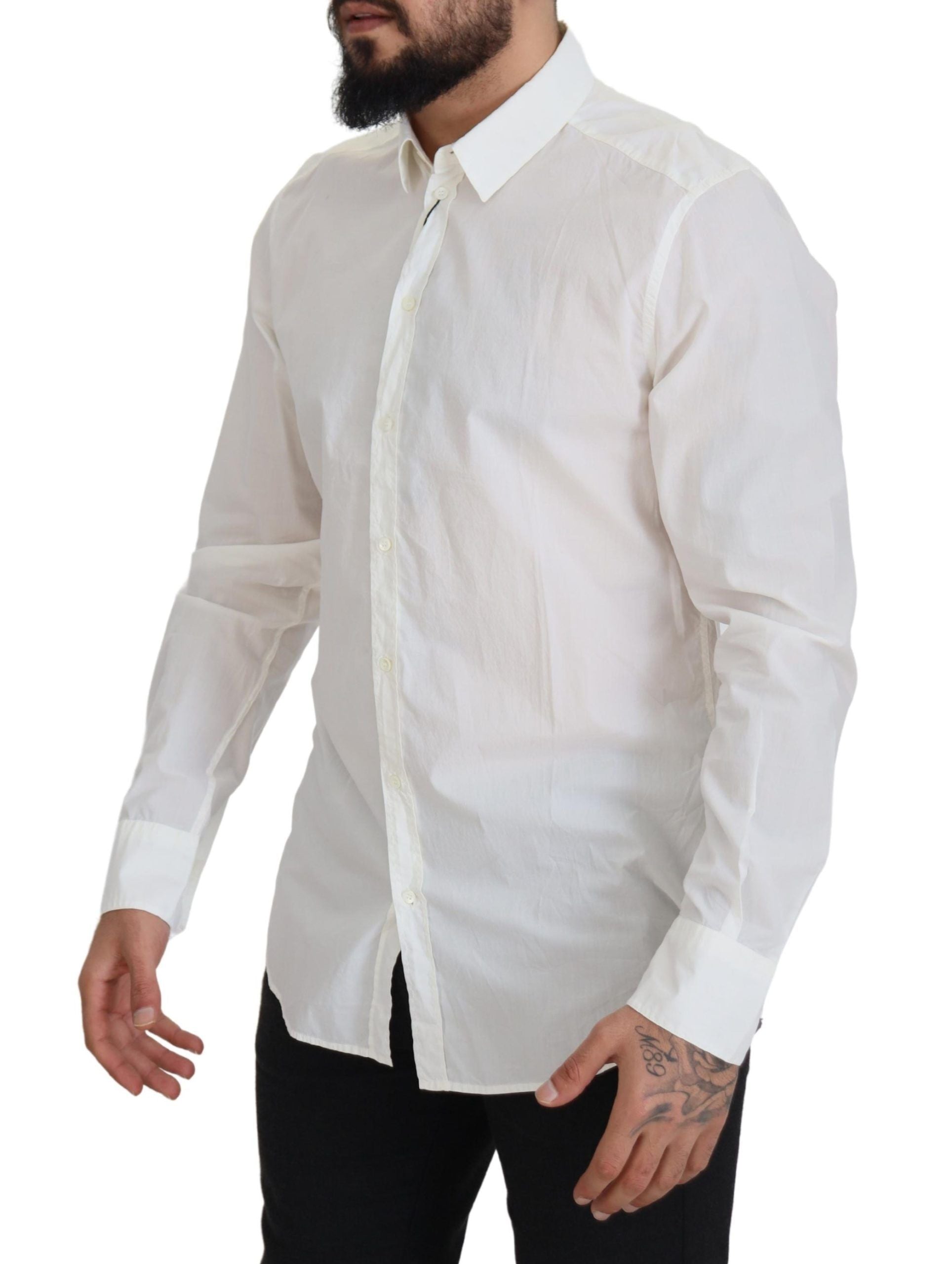 Step up your wardrobe with this magnificent and impeccably tailored white dress shirt from the luxurious Dolce & Gabbana collection. Exuding elegancy and craftsmanship, this 100% authentic shirt, adorned with the brand’s distinctive logo details, offers a sophisticated slim-fit design ideal for a sharp and refined look. Made in Italy with precision, this shirt is a sartorial staple that promises to elevate your formal attire. Its classic neck and long sleeves alongside the front button closure ensure a seamless silhouette for any gentleman.