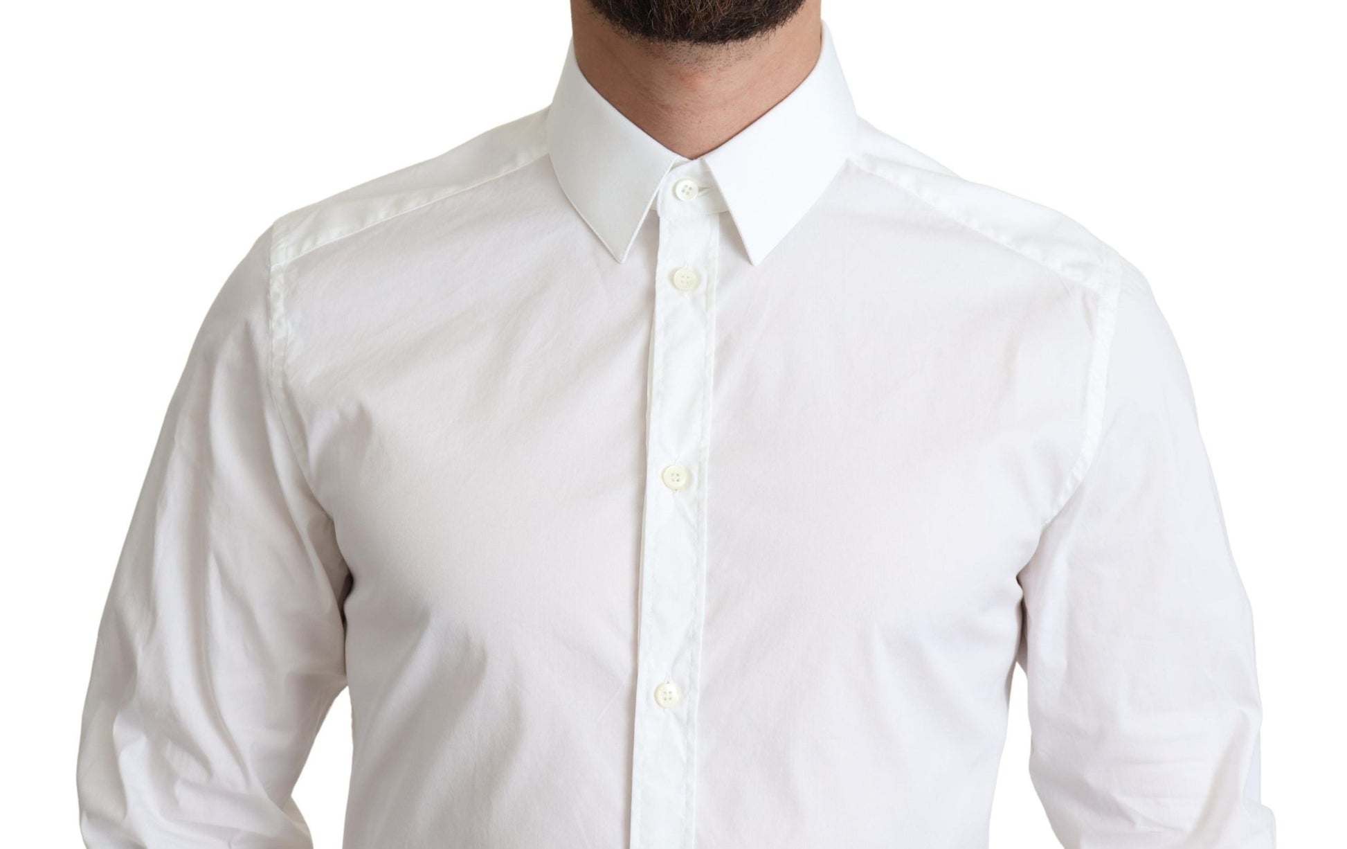 Elevate your formal wardrobe with this stunning white dress shirt from Dolce & Gabbana . Crafted with attention to detail, this shirt features a refined solid pattern, long sleeves, and a neat spread collar. Tailored for a sharp slim fit and completed with a sleek button closure, it’s a luxurious essential for any stylish gentleman. An epitome of Italian craftsmanship that promises to stand out in any setting.