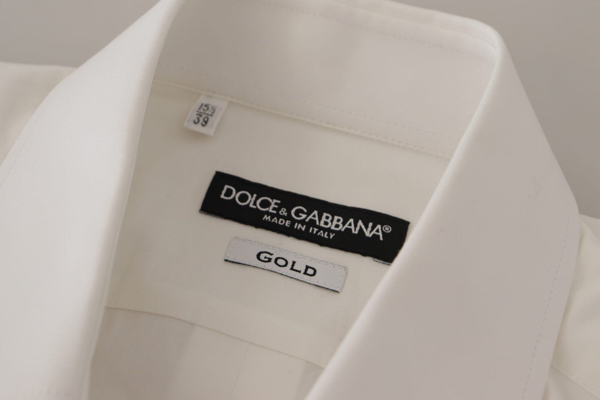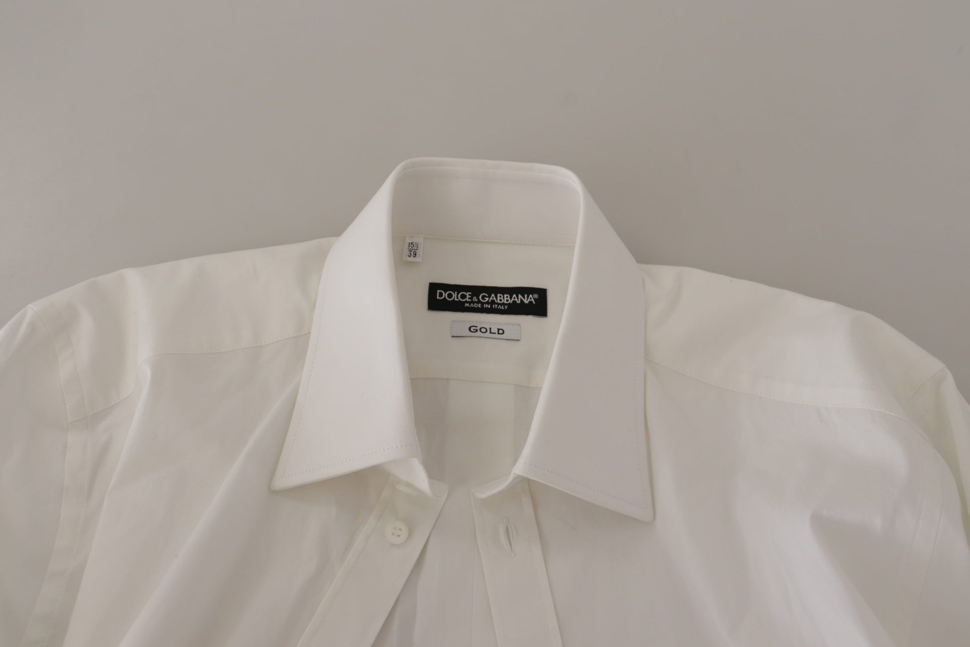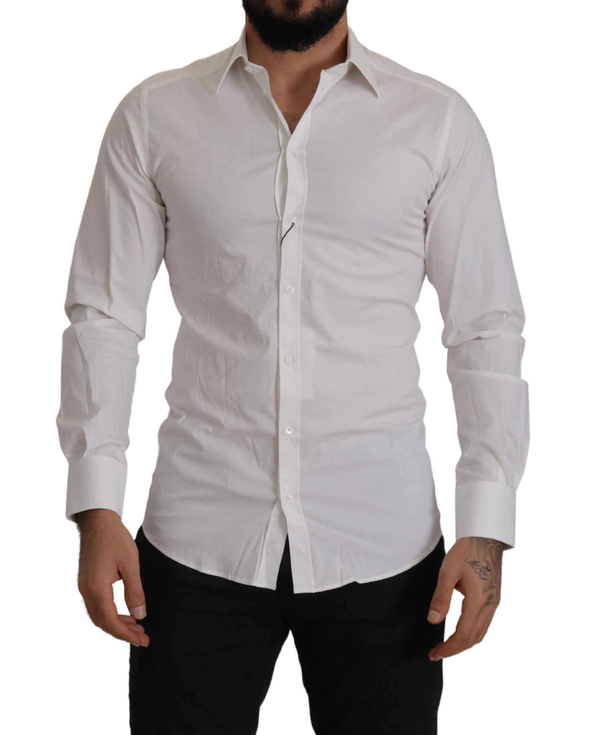 Indulge in the epitome of sophistication with our stunning Dolce & Gabbana dress shirt. This piece is a true testament to luxury, perfect for those who appreciate the finer things in life. Crafted from a premium blend of 97% cotton and 3% elastane, it boasts a crisp white color that exudes elegance and class. The slim fit cut ensures a sleek silhouette, while the classic collar, long sleeves, and front button closure offer a timeless look. This shirt is embellished with subtle logo details that speak to its distinguished brand identity—all made in the heart of fashion, Italy.