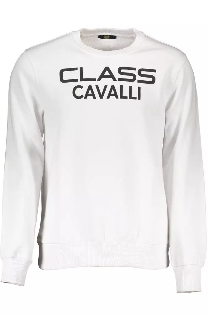 Step into the epitome of trendsetting style with the Cavalli Class sweatshirt. This pristine white piece boasts a round neckline, sleek long sleeves, and a bold application that echoes the designer’s flair for daring elegance. The iconic logo declares your affinity for high fashion with understated sophistication. Crafted from sumptuous 100% cotton for unrivaled comfort, this sweatshirt embodies the fusion of luxury and casual chic, making it a versatile addition to any fashion-forward wardrobe.