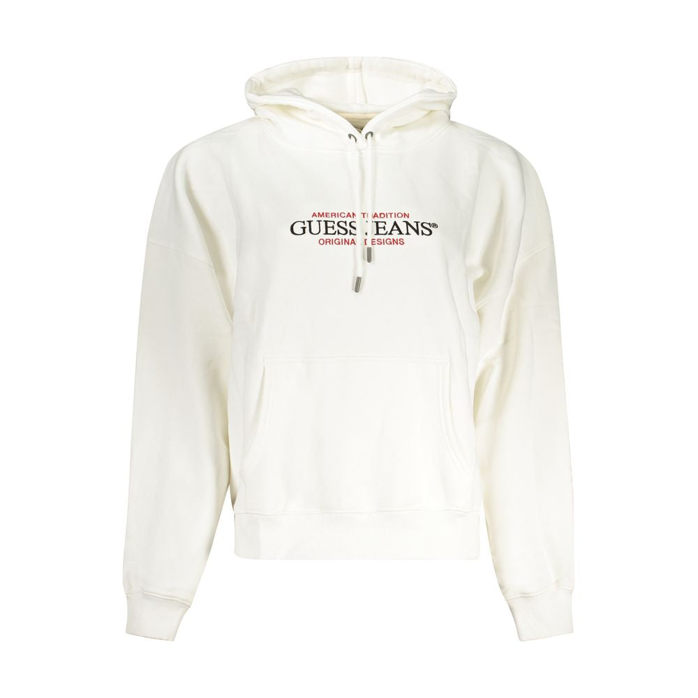 Indulge in the magnificence of Guess Jeans’ latest offering – an emblematic white hooded sweatshirt that beckons with its impeccable blend of style and comfort. Designed for the fashion-forward, this quintessential piece boasts a single central pocket, enveloped by the brand’s iconic logo, intricately embroidered to make a bold statement. Perfect for those chic, casual days or the cozy nights in.