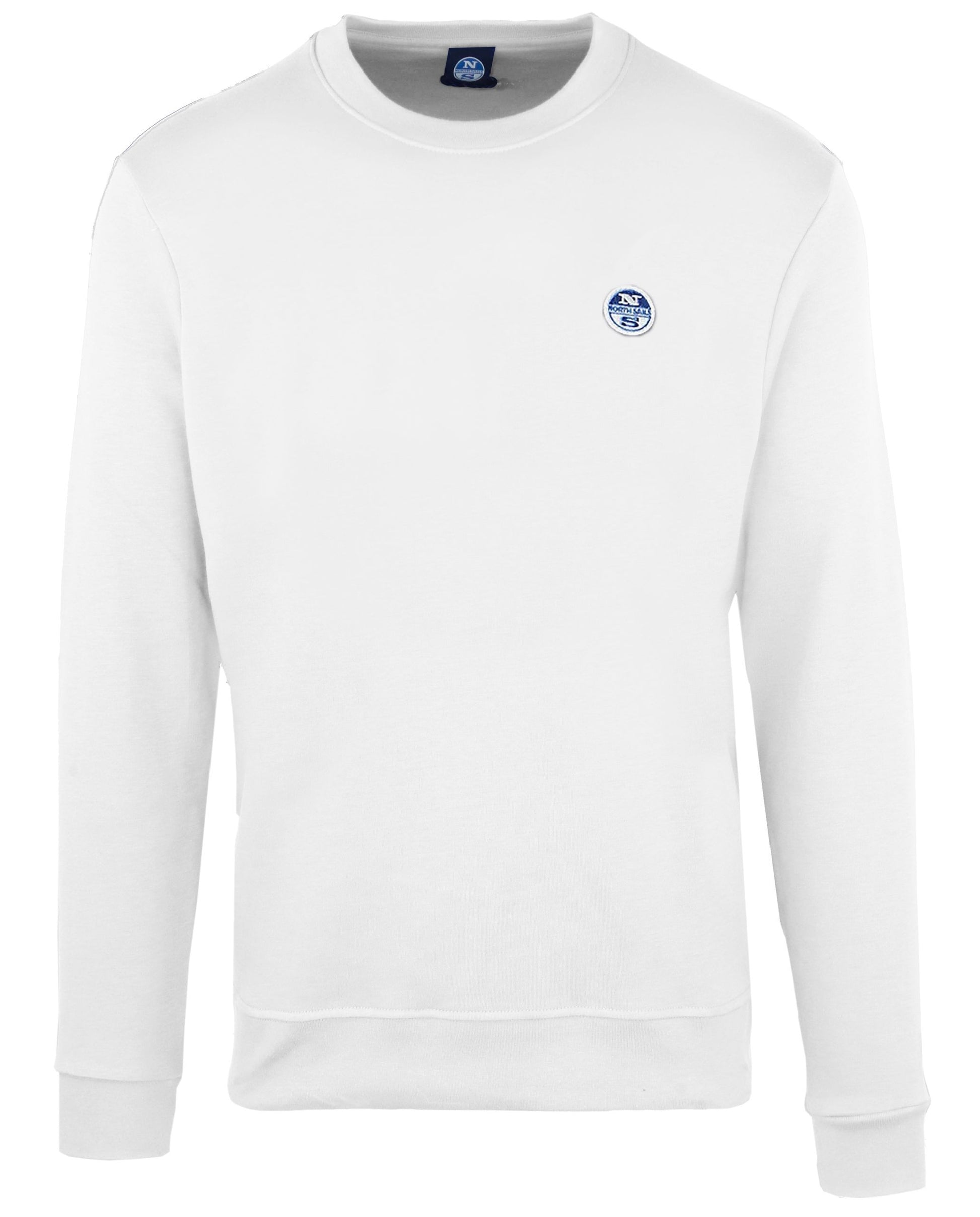 Step into comfort with our impeccably soft white crewneck sweatshirt, masterfully crafted from a premium cotton blend, ensuring both warmth and breathability. The sleek design is elevated by a distinctive logo patch on the chest, creating an understated yet stylish statement perfect for any casual occasion.