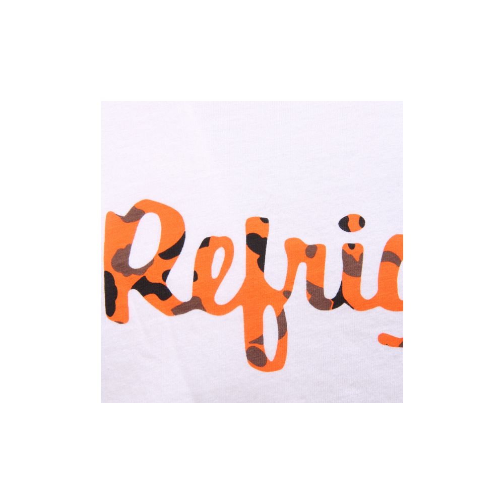 Embrace casual sophistication with this crew-neck t-shirt from Refrigiwear, featuring a distinctive spotted logo print. Crafted from pure cotton, this top offers comfort and style that transitions effortlessly from day to evening. Its sleek white color ensures it pairs seamlessly with your favorite wardrobe staples.