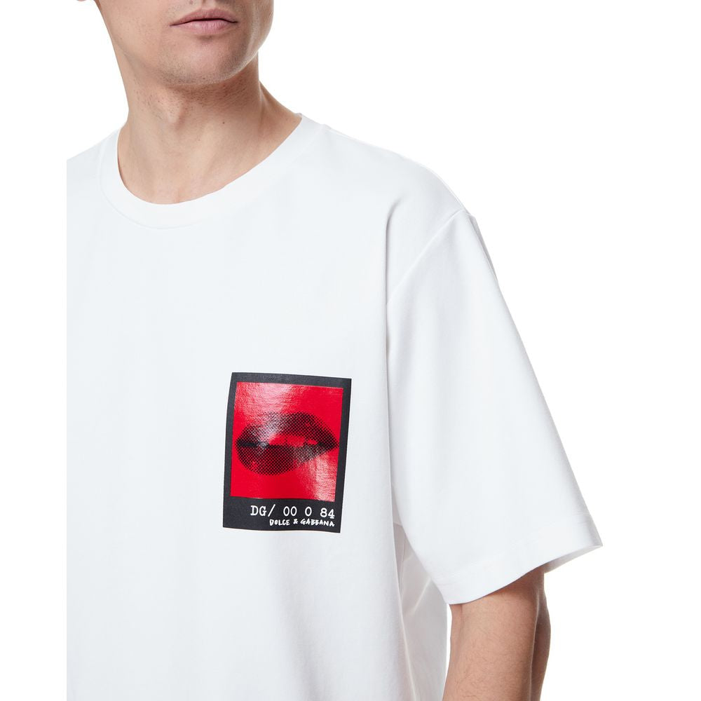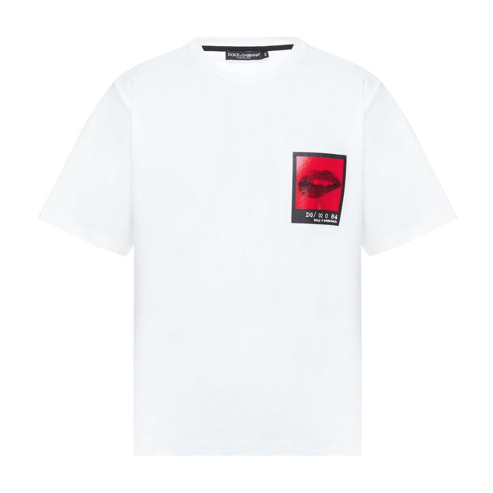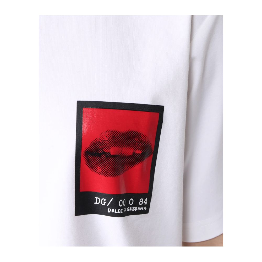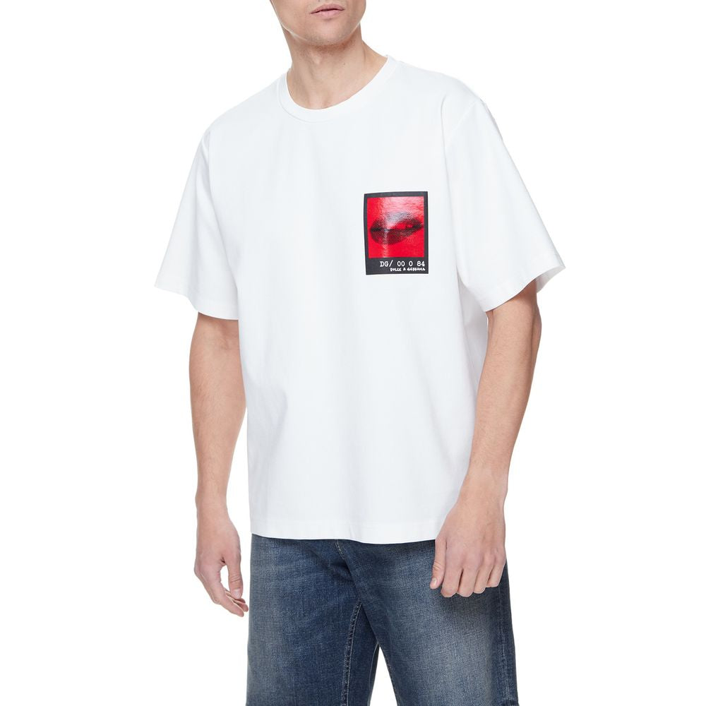 Dolce & Gabbana short-sleeved cotton blend t-shirt with graphic print on the chest and lettering printed on the back