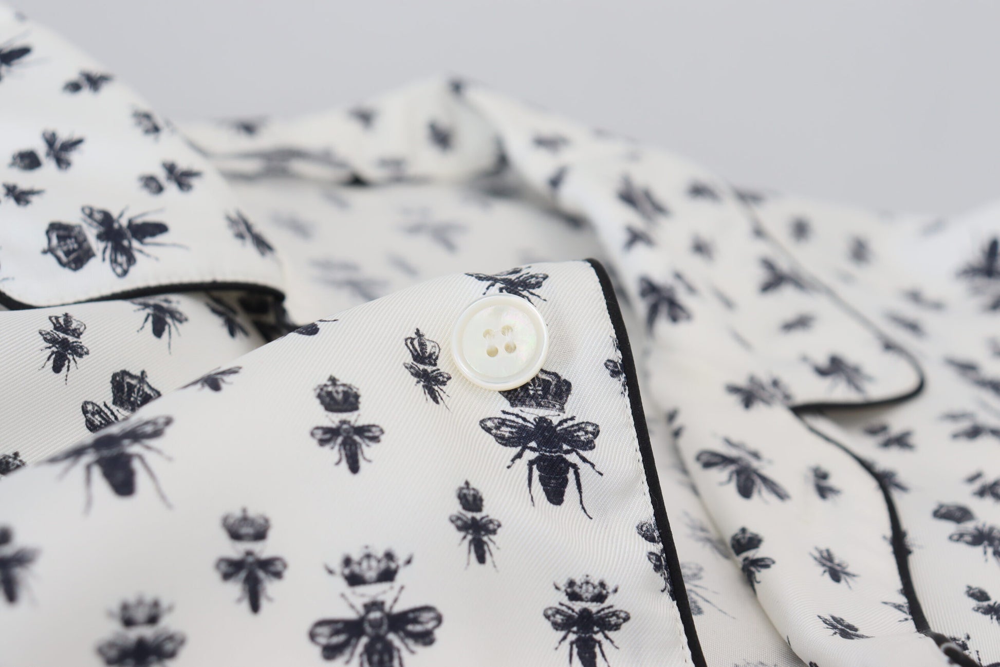 Elegant Silk Pajama Top with Crown Bee Print