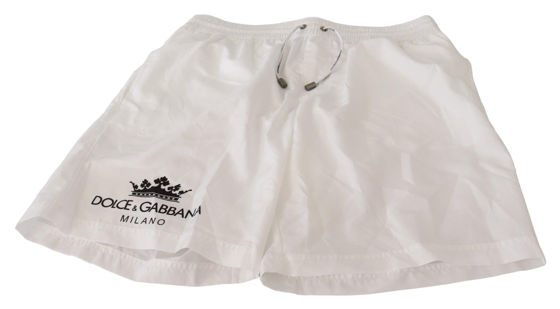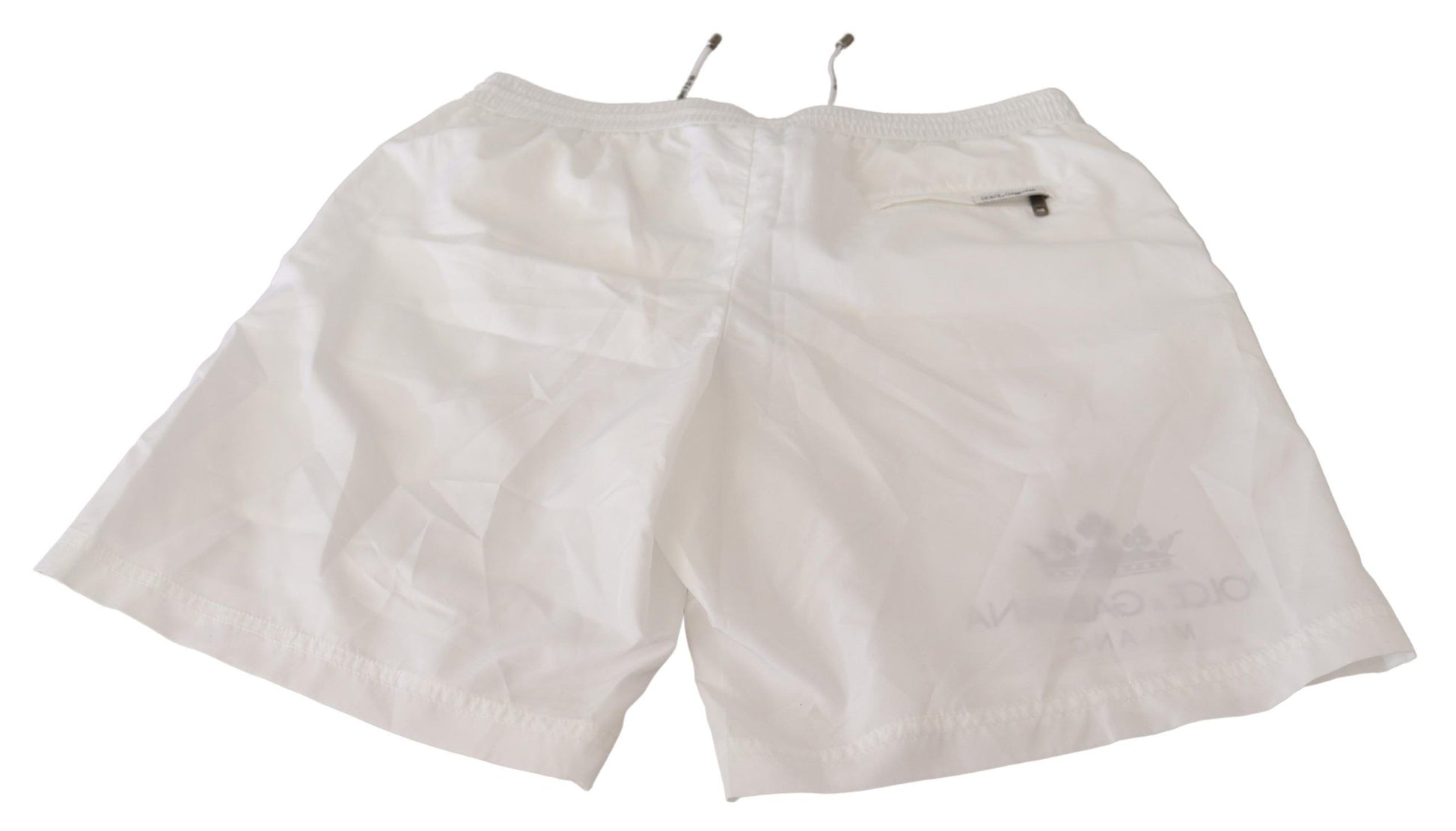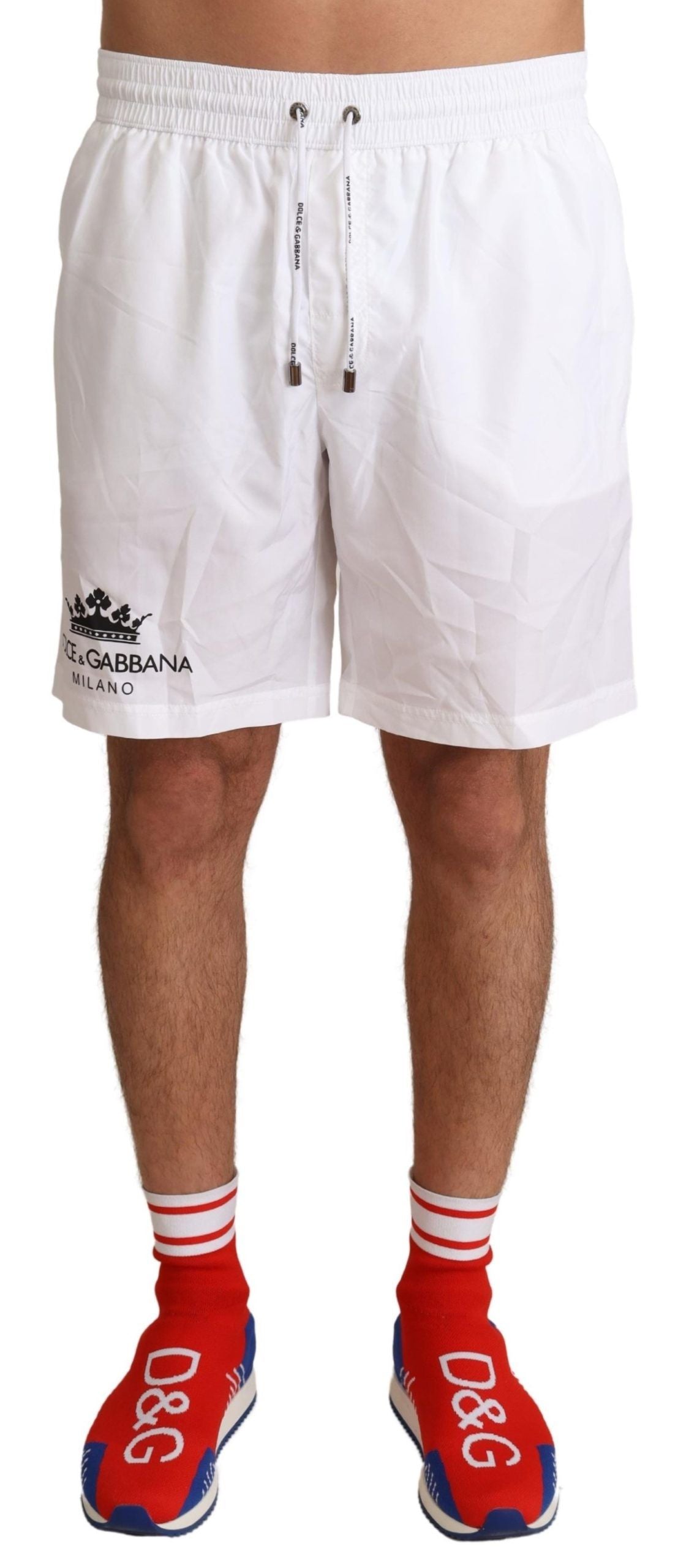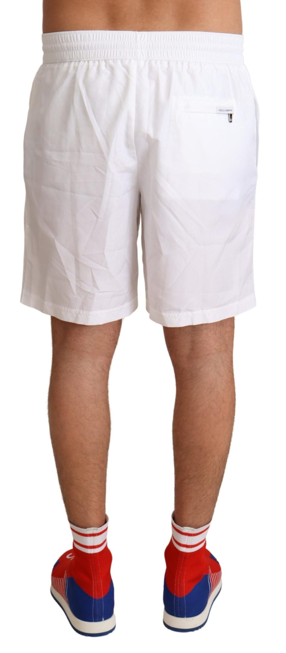 Step out in royal style with these exquisite Dolce & Gabbana Beachwear swimming trunks shorts. These shorts are the epitome of luxury poolside fashion, with a striking Crown King Motive in a pristine white color. Crafted from high-quality polyester, they offer both comfort and durability. The elastic waist strap ensures a perfect fit, while the convenient pocket configuration with a secure zipper closure on the back adds practicality to your swim ensemble. Flawlessly designed with the iconic logo details, these trunks promise great fitting and comfort, whether you’re lounging or taking a dive.