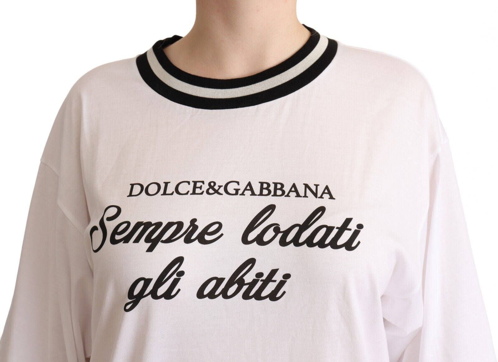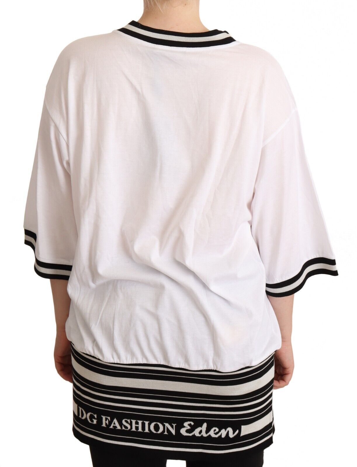 Immerse yourself in the world of high fashion with this exquisite Dolce & Gabbana oversized tee. Flaunting a chic DG fashion print, this crewneck t-shirt with elbow sleeves is not just an article of clothing; it’s a statement of elegance and style. Made in Italy with the finest materials, its monochromatic color scheme brilliantly fuses contemporary design with timeless sophistication.