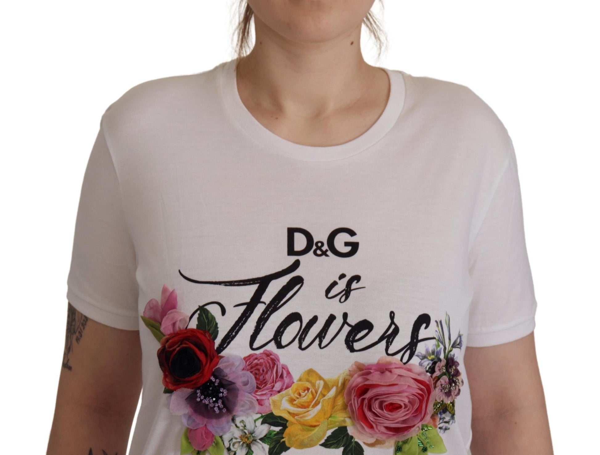 Explore the fusion of luxurious comfort and bold style with this Dolce & Gabbana round neck t-shirt, featuring an eye-catching DG in flowers print. Crafted in Italy from 100% cotton, this top is not only a statement piece but also a testament to high-quality craftsmanship.