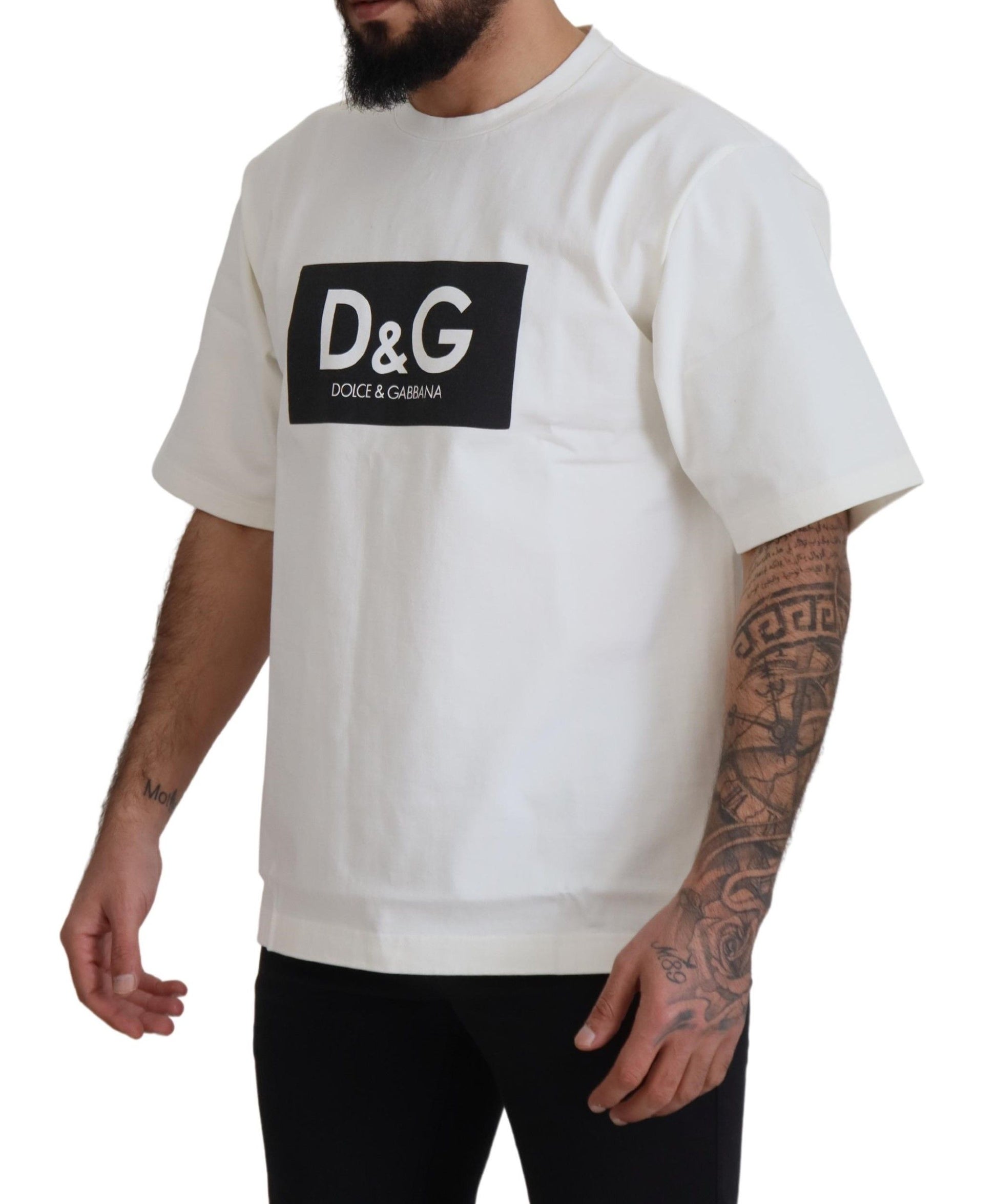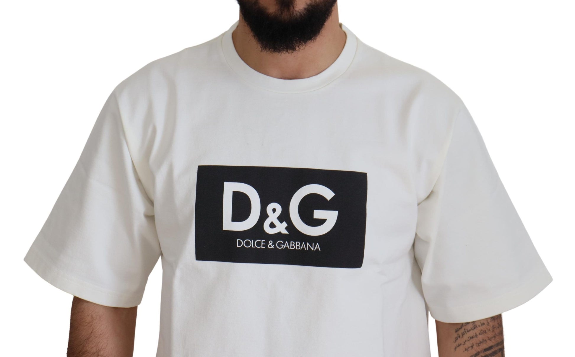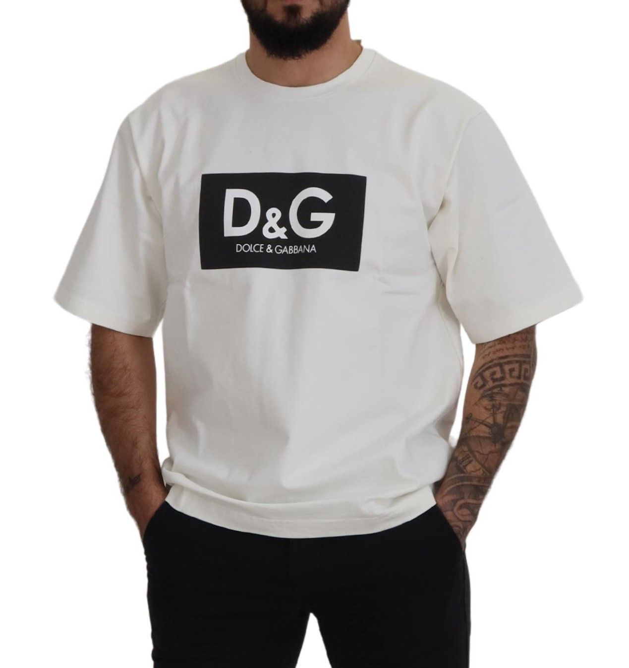 Embrace the epitome of Italian luxury with this exquisite Dolce & Gabbana T-shirt. Crafted from premium 100% cotton for unparalleled comfort, this regular fit tee features a bold black logo print that stands out against the clean, crisp white background. It’s a versatile piece that exudes effortless style and is sure to become a staple in your wardrobe. Proudly made in Italy, it showcases the brand’s commitment to top-notch quality and sartorial finesse.