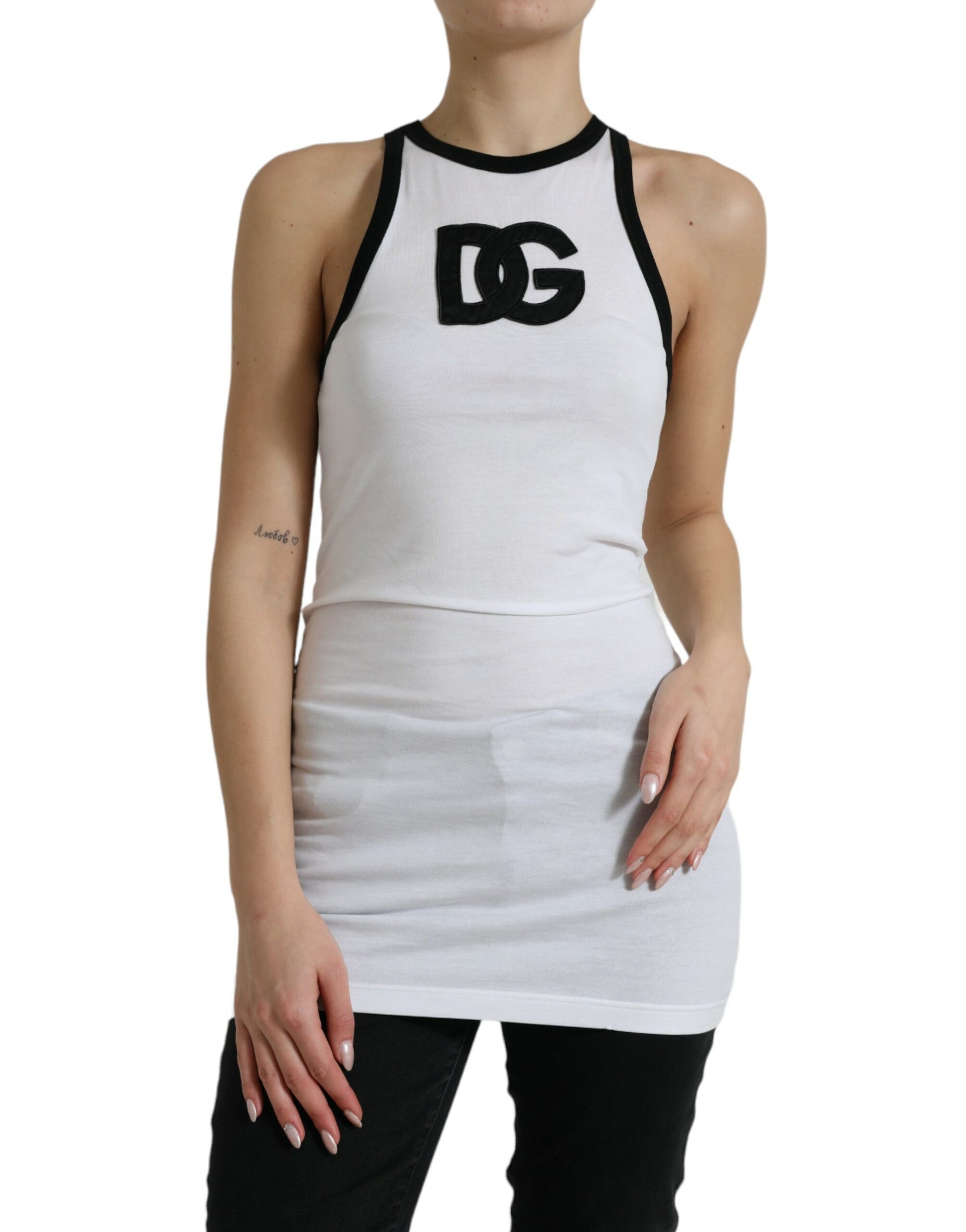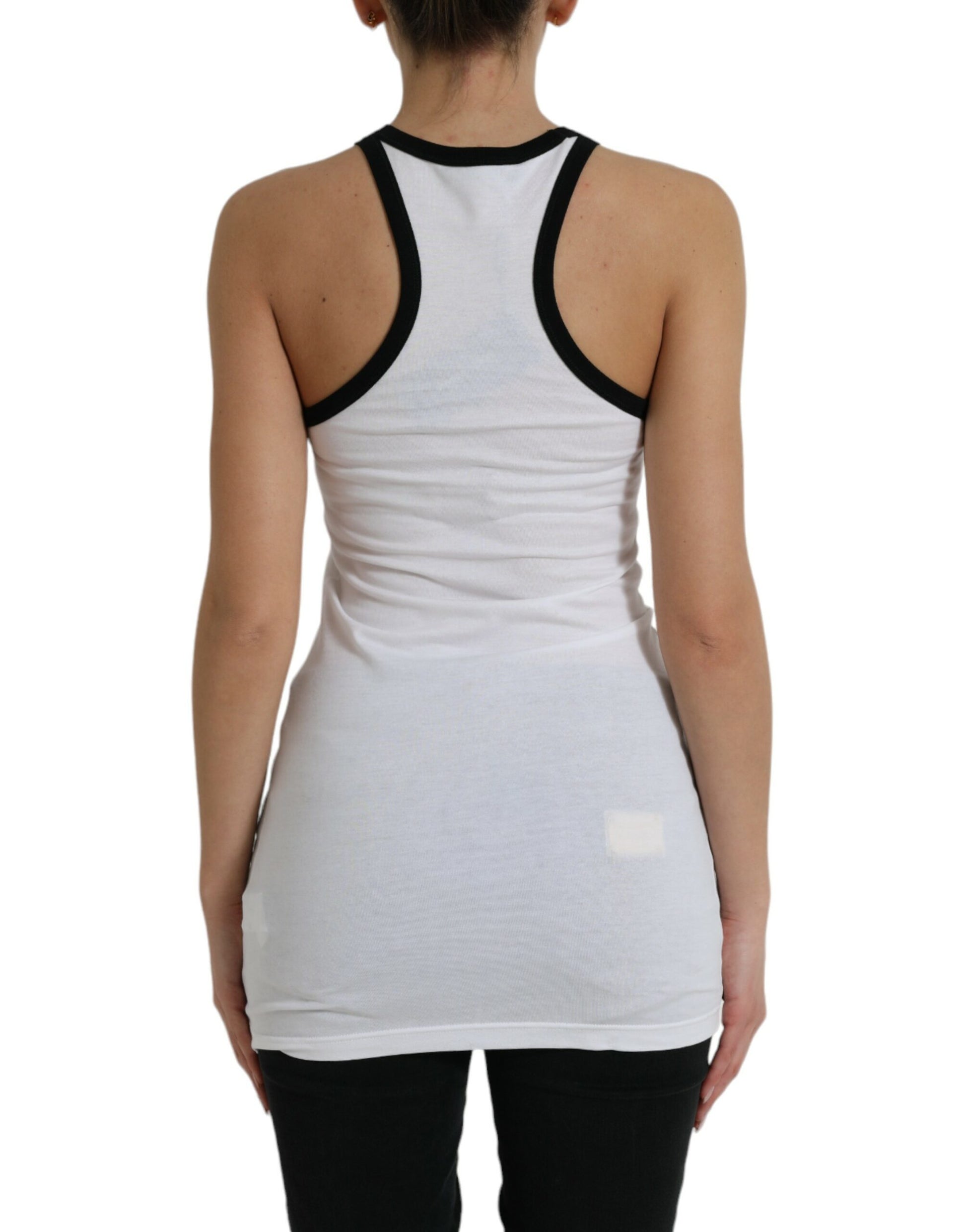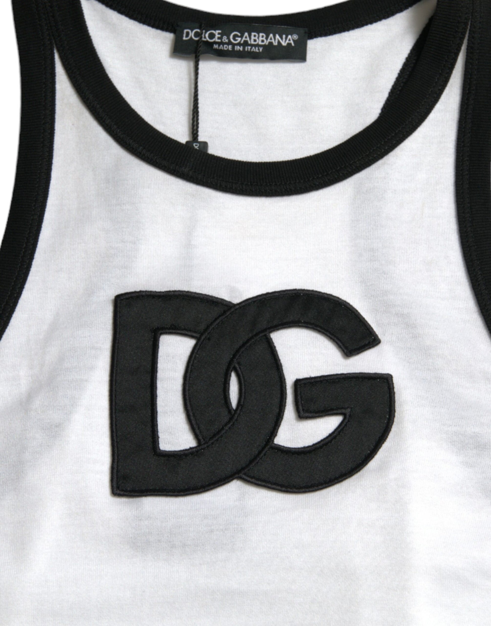 Indulge in the epitome of Italian luxury with this pristine sleeveless tank top by Dolce & Gabbana. The piece exudes effortless elegance with its clean white color contrasted by a striking black logo patch. Crafted from the finest 100% cotton, this top promises both unparalleled comfort and style. Perfect for adding a touch of sophistication to your casual attire, this item truly embodies the exquisite craftsmanship of Dolce & Gabbana. Made in Italy, the fashion heartland, it’s a timeless addition to any wardrobe.