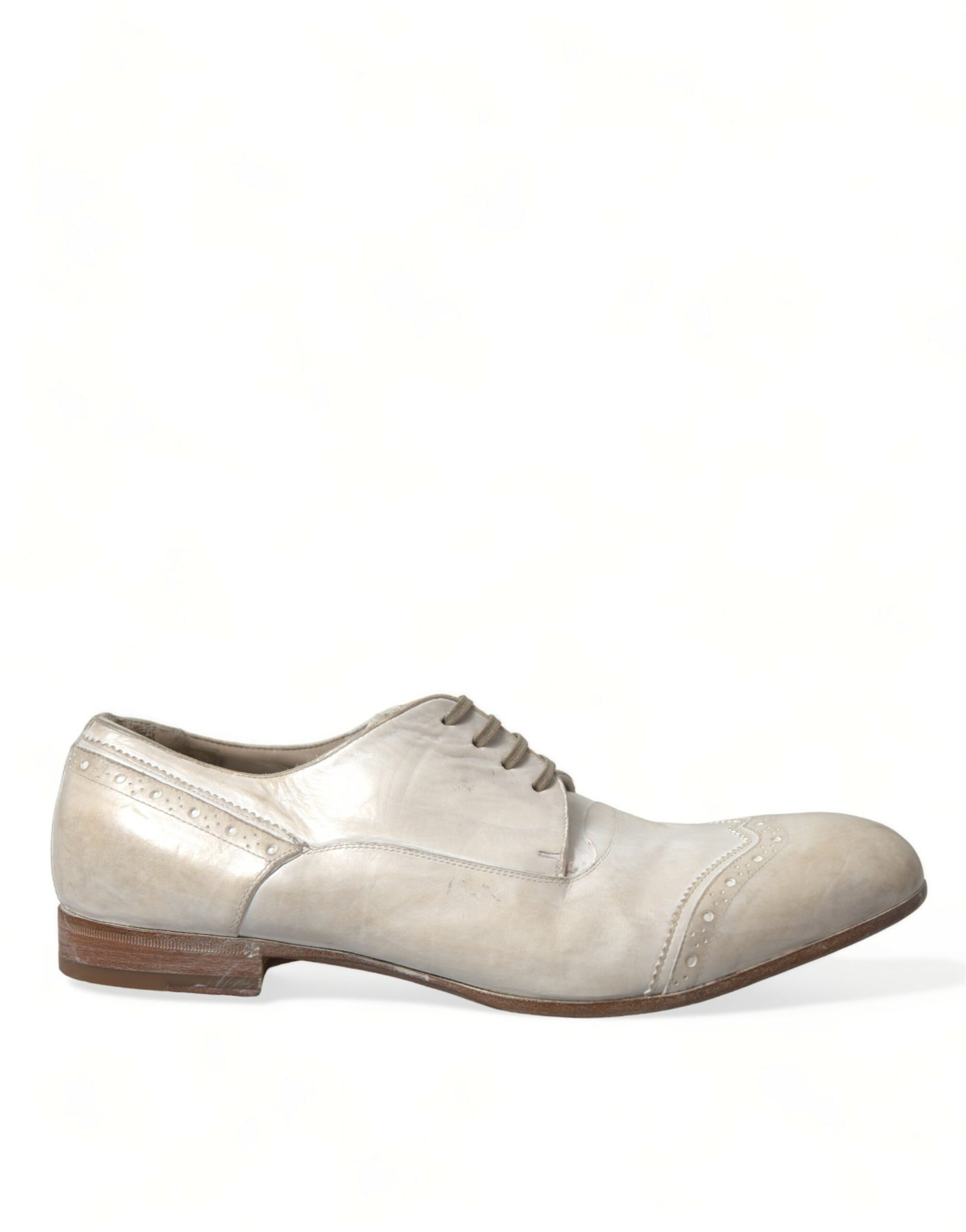 Step into luxury with these absolutely stunning, 100% Authentic Dolce & Gabbana formal brogue shoes. Designed for those with a penchant for sophistication, these shoes boast high craftsmanship and an exclusive allure. Made in Italy, they feature a sleek white calfskin leather, meticulous brogue detailing, a comfortable lace-up closure, and are finished with the iconic logo. Perfect for making a statement at any formal event.