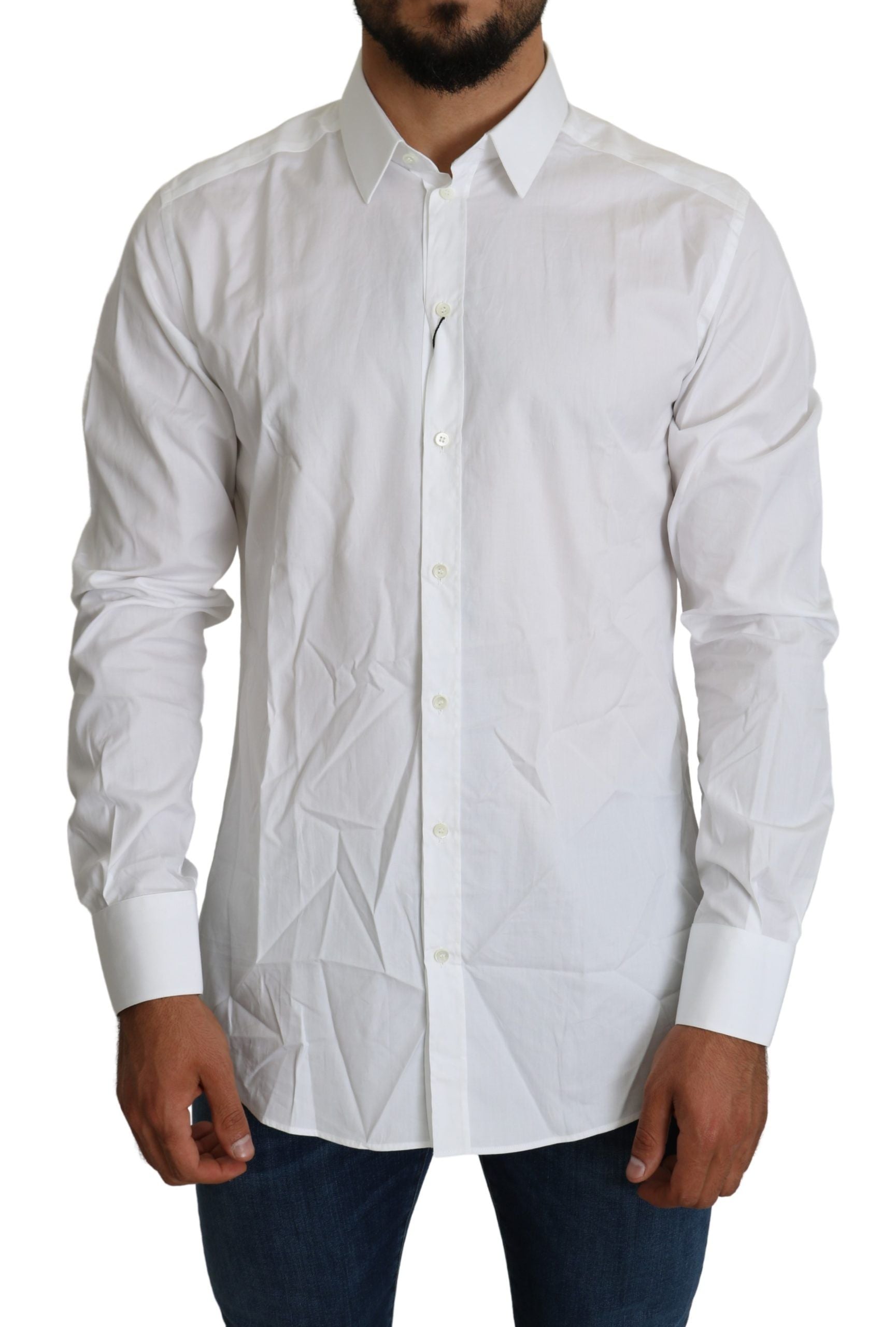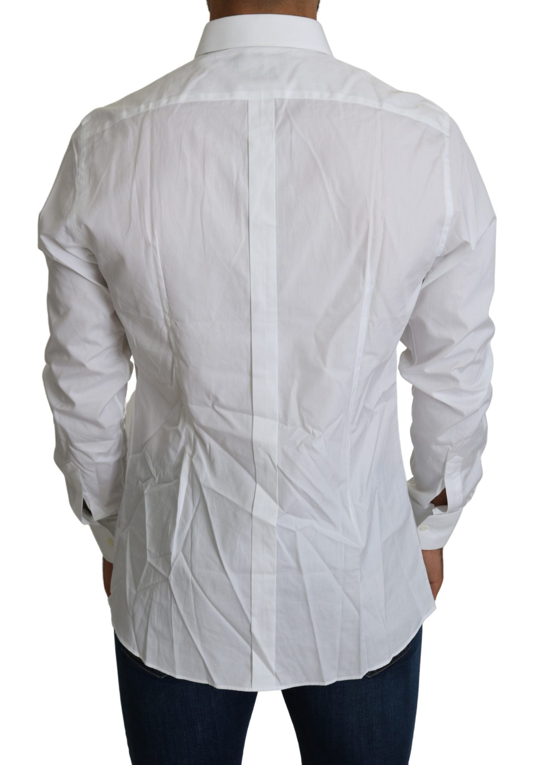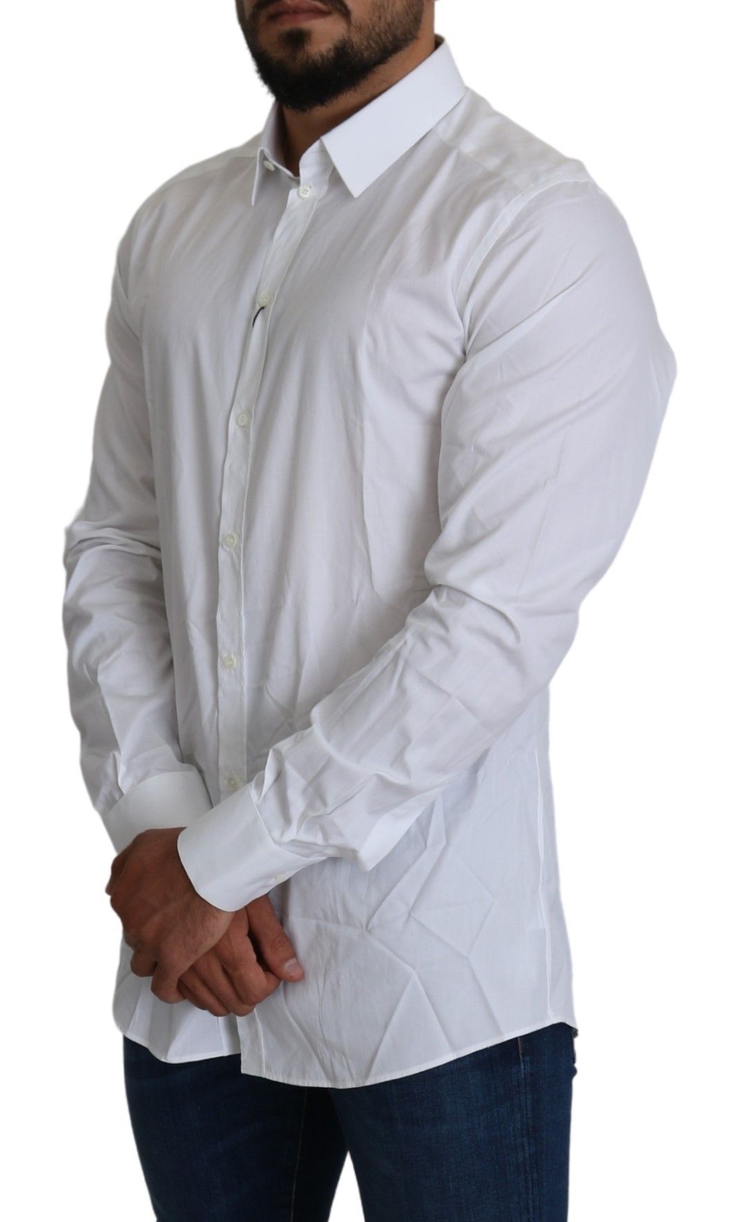 Discover the epitome of Italian craftsmanship with this exquisite white shirt from Dolce & Gabbana . Perfect for formal occasions, this 100% authentic, brand new shirt features the sought-after GOLD model with a sharp, slim fit design. Tailored from the finest 100% cotton material, it ensures comfort and class. Complete with a sophisticated front button closure and subtle logo details, this shirt embodies luxury and style, made in the heart of Italy.