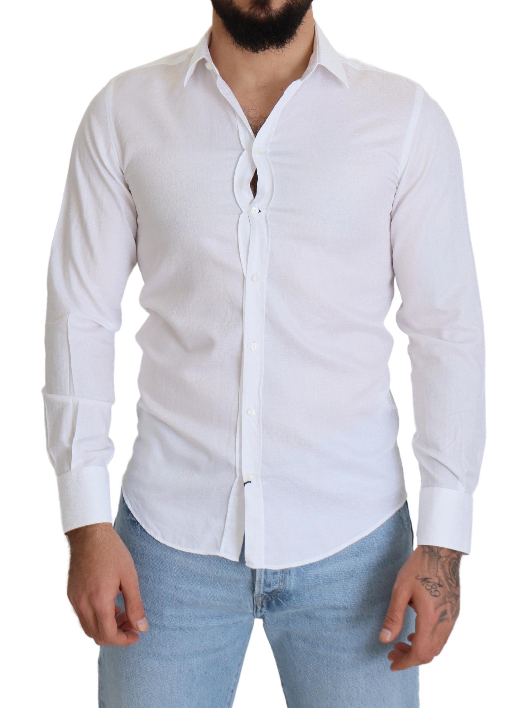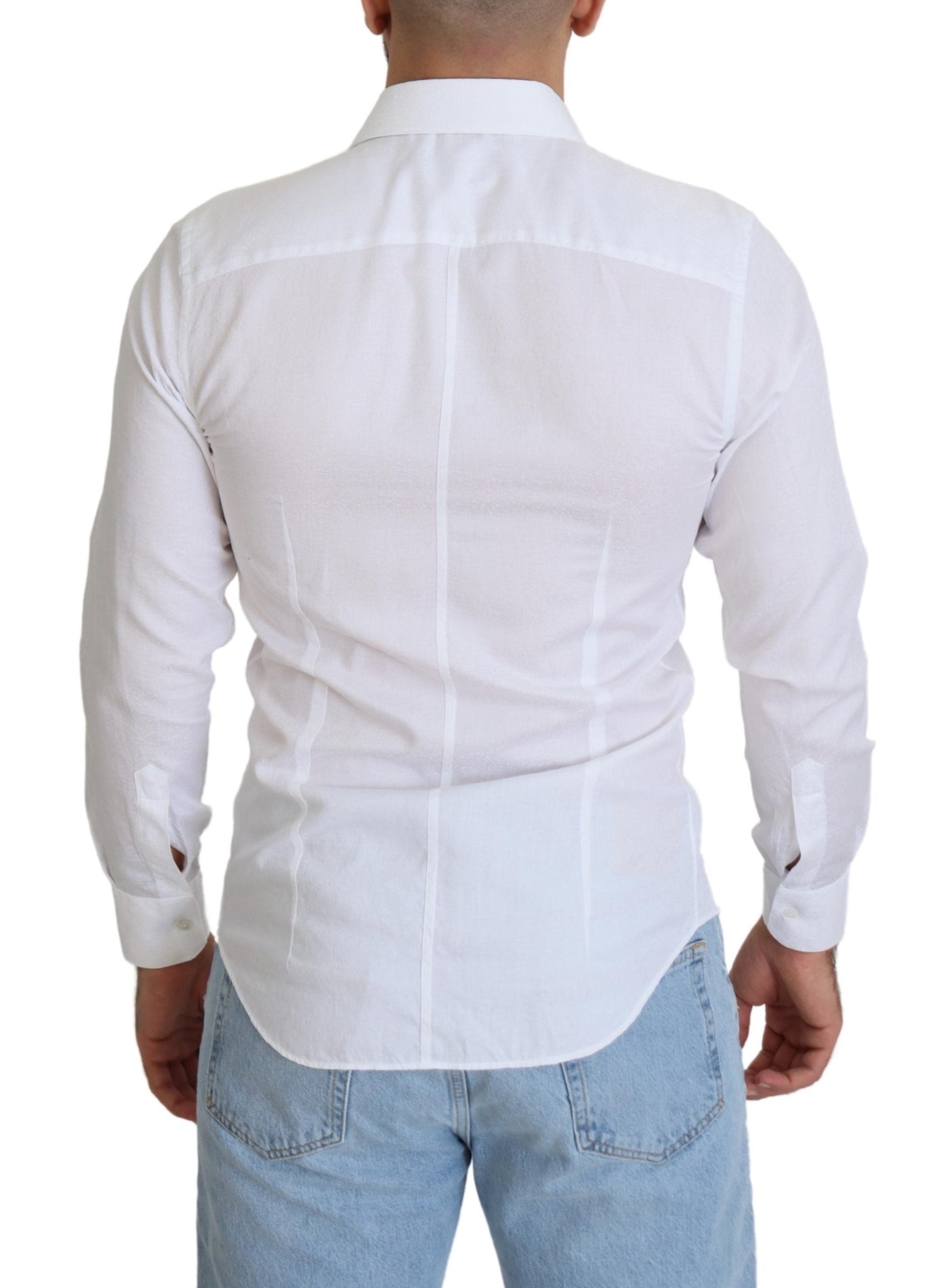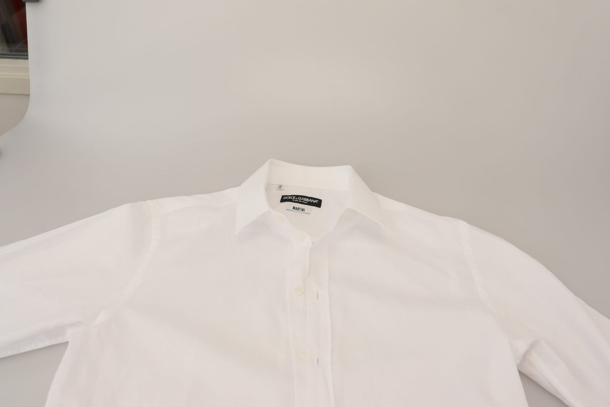Step up your style with an essence of Italian elegance with this Dolce & Gabbana slim fit dress shirt. Designed for the modern gentleman, this 100% cotton, Martini model shirt features a sleek and sophisticated fit, a classic neck, and a smooth front button closure for a timeless appearance. With long sleeves and a pristine white hue, it’s perfect for business, leisure or special occasions.