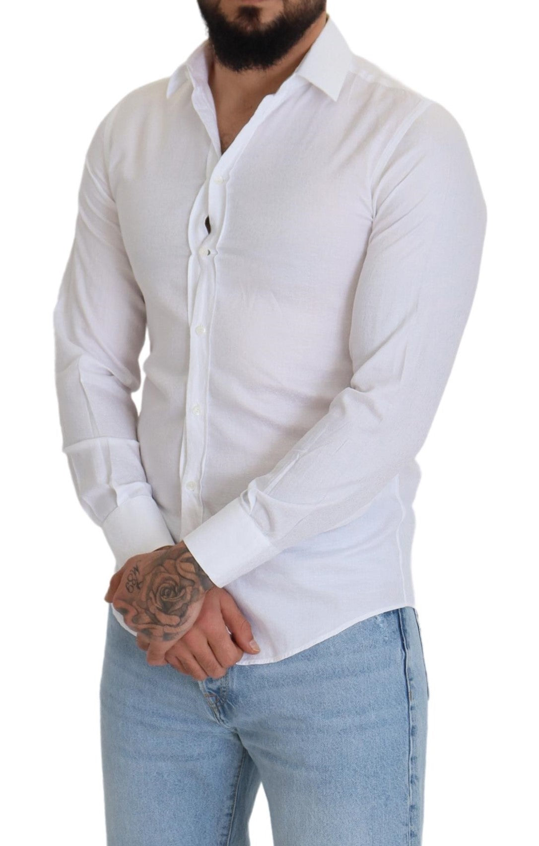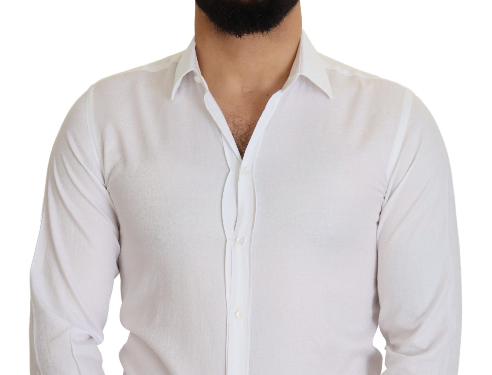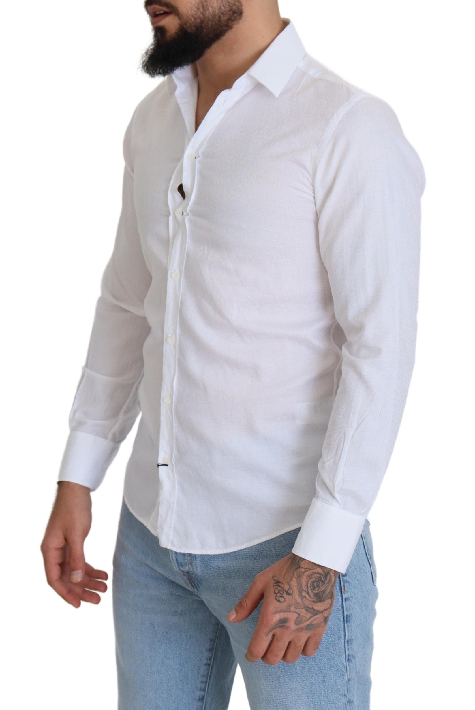 Step up your style with an essence of Italian elegance with this Dolce & Gabbana slim fit dress shirt. Designed for the modern gentleman, this 100% cotton, Martini model shirt features a sleek and sophisticated fit, a classic neck, and a smooth front button closure for a timeless appearance. With long sleeves and a pristine white hue, it’s perfect for business, leisure or special occasions.