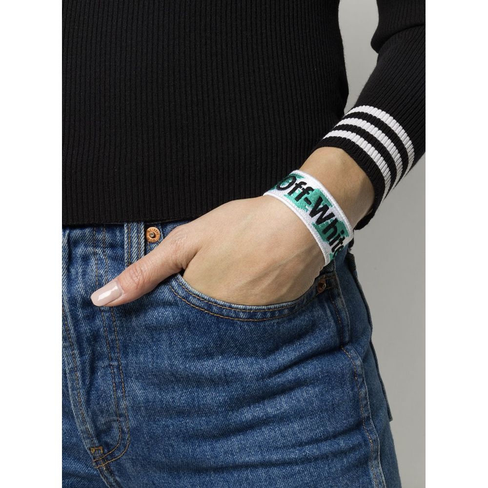 Make a fearless statement with the Off-White bracelet, an embodiment of contemporary luxury with its striking white hue, accented by chic light blue details. Fashioned from 100% high-quality fabric, each bracelet is crafted with precision in Italy, ensuring that you’re wrapping your wrist in nothing short of sophistication. Perfect for the fashion-forward individual looking to elevate their accessory game.