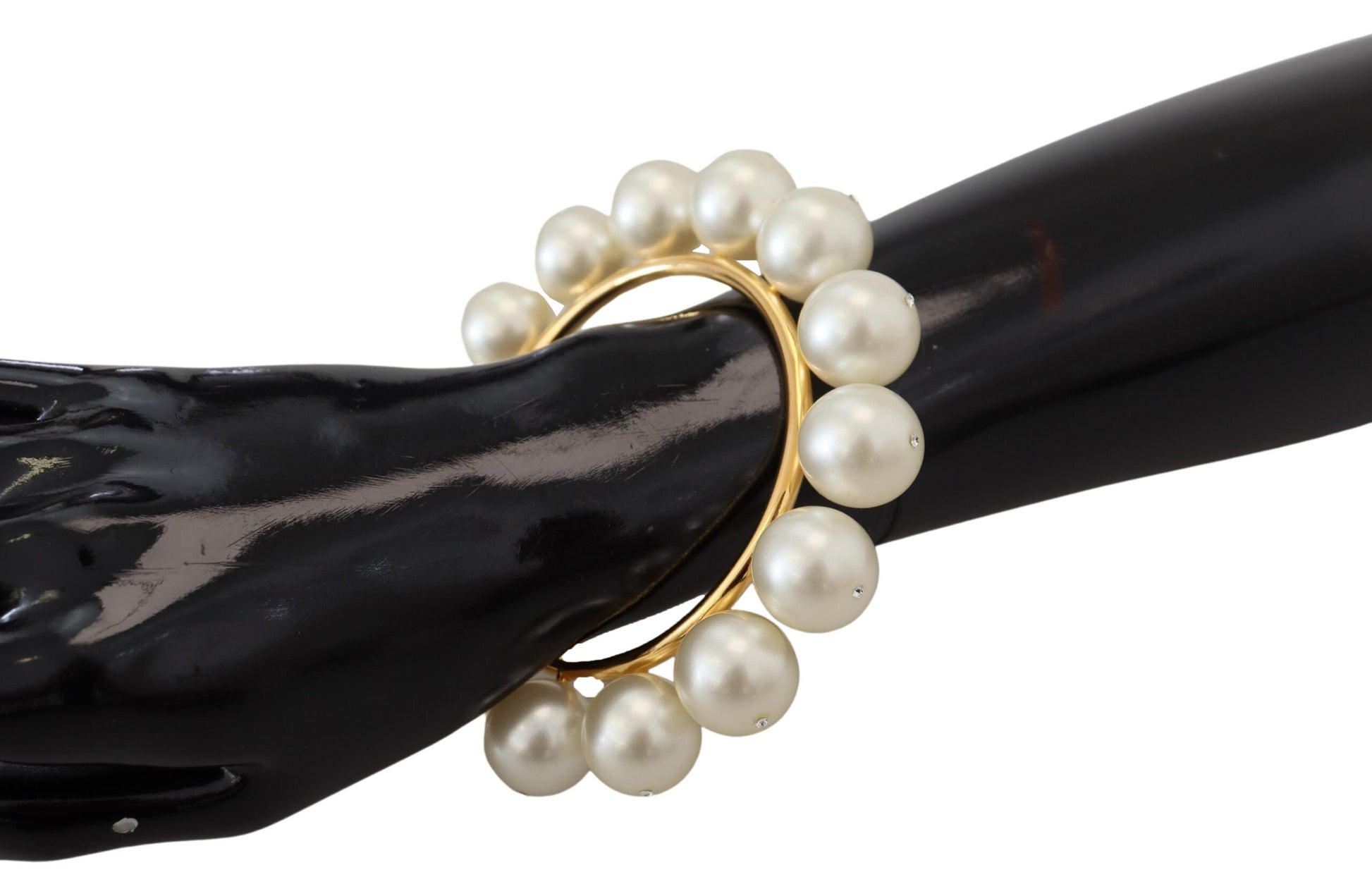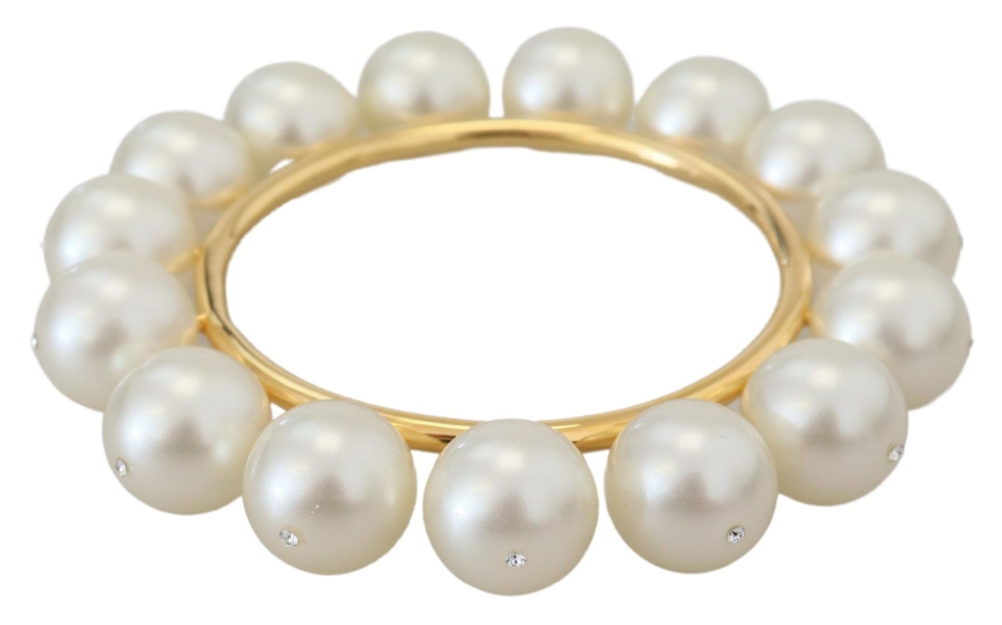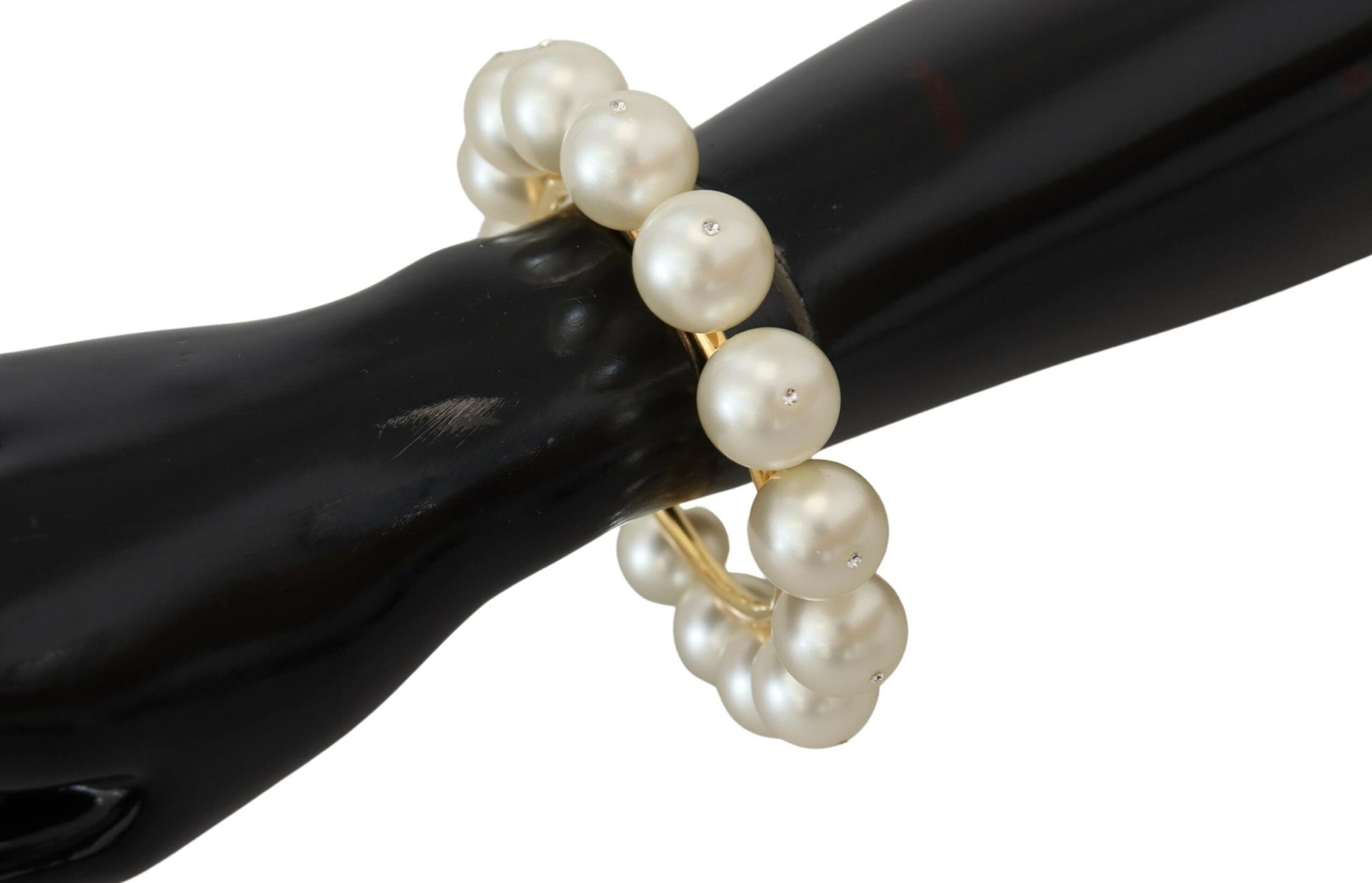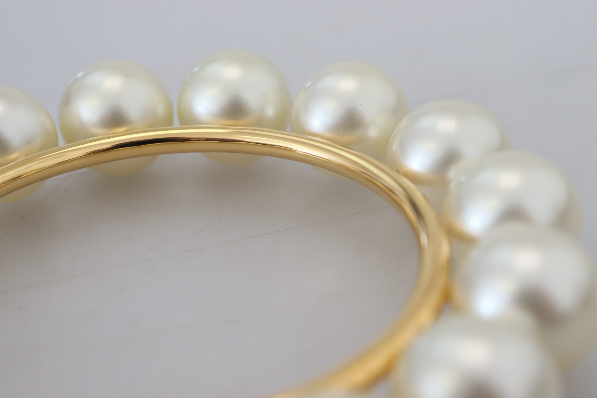 Exude elegance with this stunning Dolce & Gabbana Women’s bangle, featuring a luxurious gold tone complemented by white faux pearls. This exquisite piece adds a touch of glamour to any ensemble, making it a perfect accessory for those special occasions or an opulent gift for someone special.