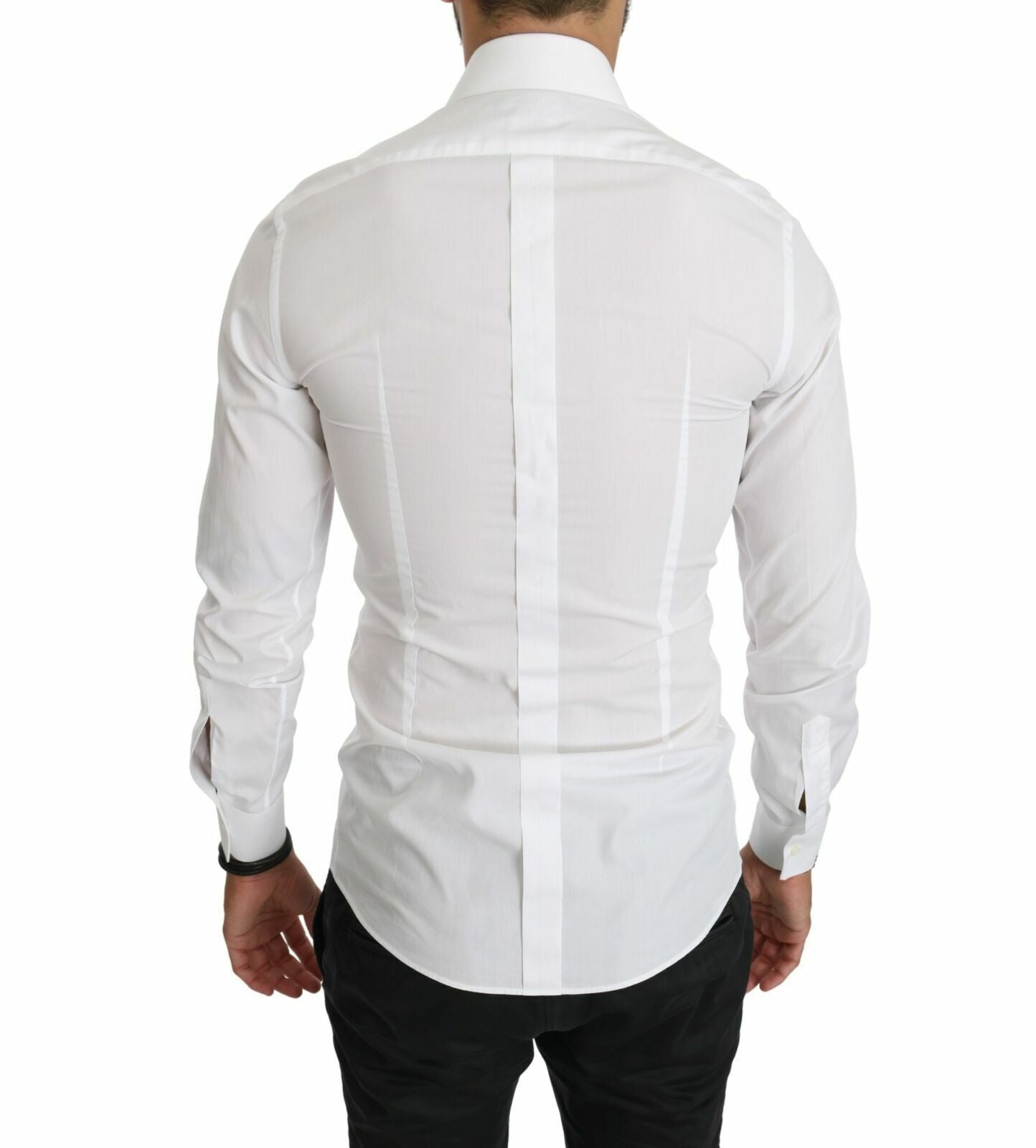 Discover the epitome of Italian craftsmanship with this stunning 100% Authentic casual shirt by Dolce & Gabbana. This ‘GOLD’ model shirt boasts a sharp slim-fit cut, designed to complement your silhouette. The pristine white color exudes a sense of pure elegance, making it a versatile addition to your wardrobe. Fashioned with exquisite attention to detail, featuring a full front button closure complemented by subtle logo details. This piece is not only a testament to luxury fashion but also comfort, thanks to its premium 100% cotton material. Elevate your casual look with this Italian-made masterpiece from Dolce & Gabbana.