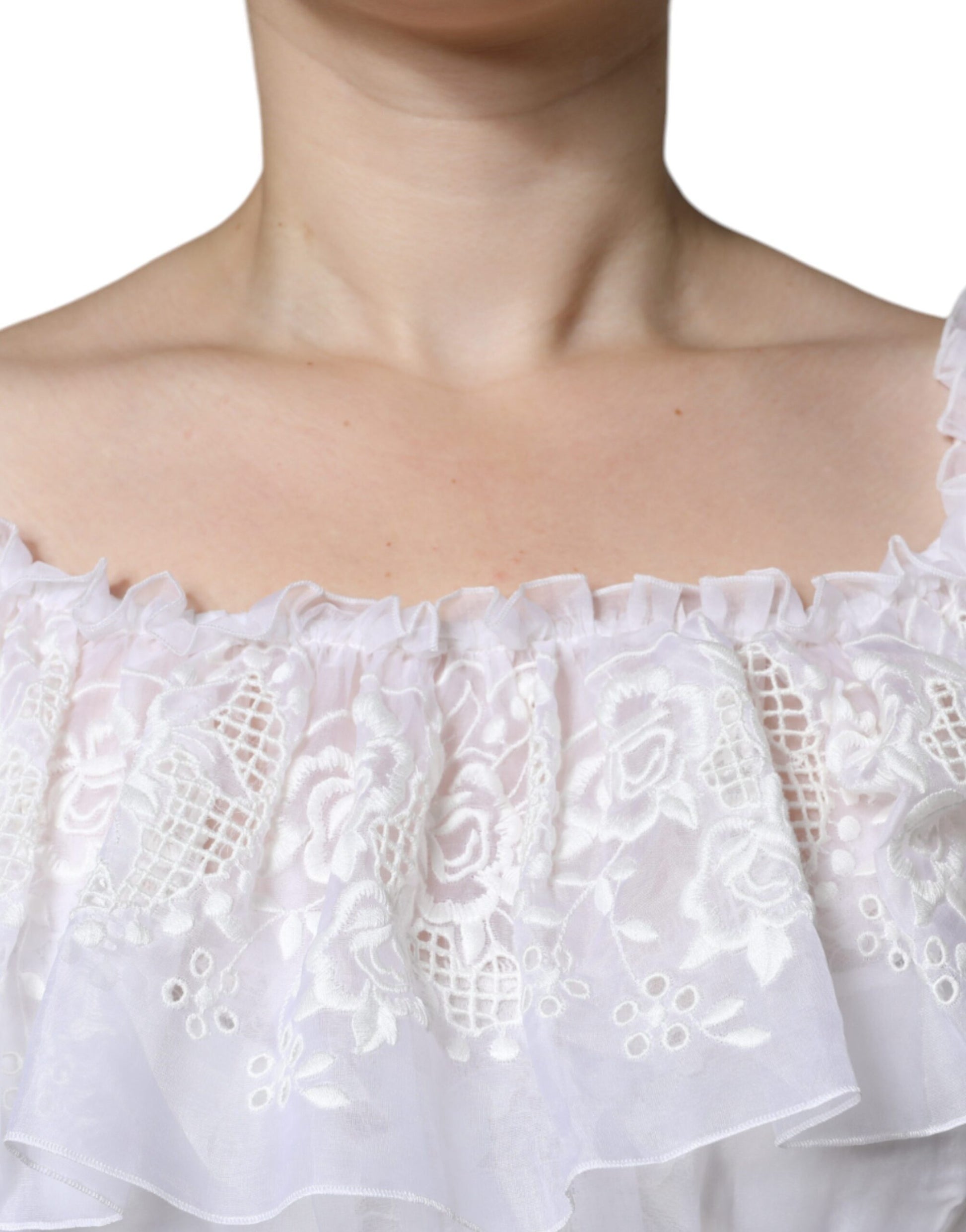 Gorgeous brand new with tags, 100% Authentic DOLCE & GABBANA long, silk blend wedding / summer corset dress with floral lace and puff sleeves in white.