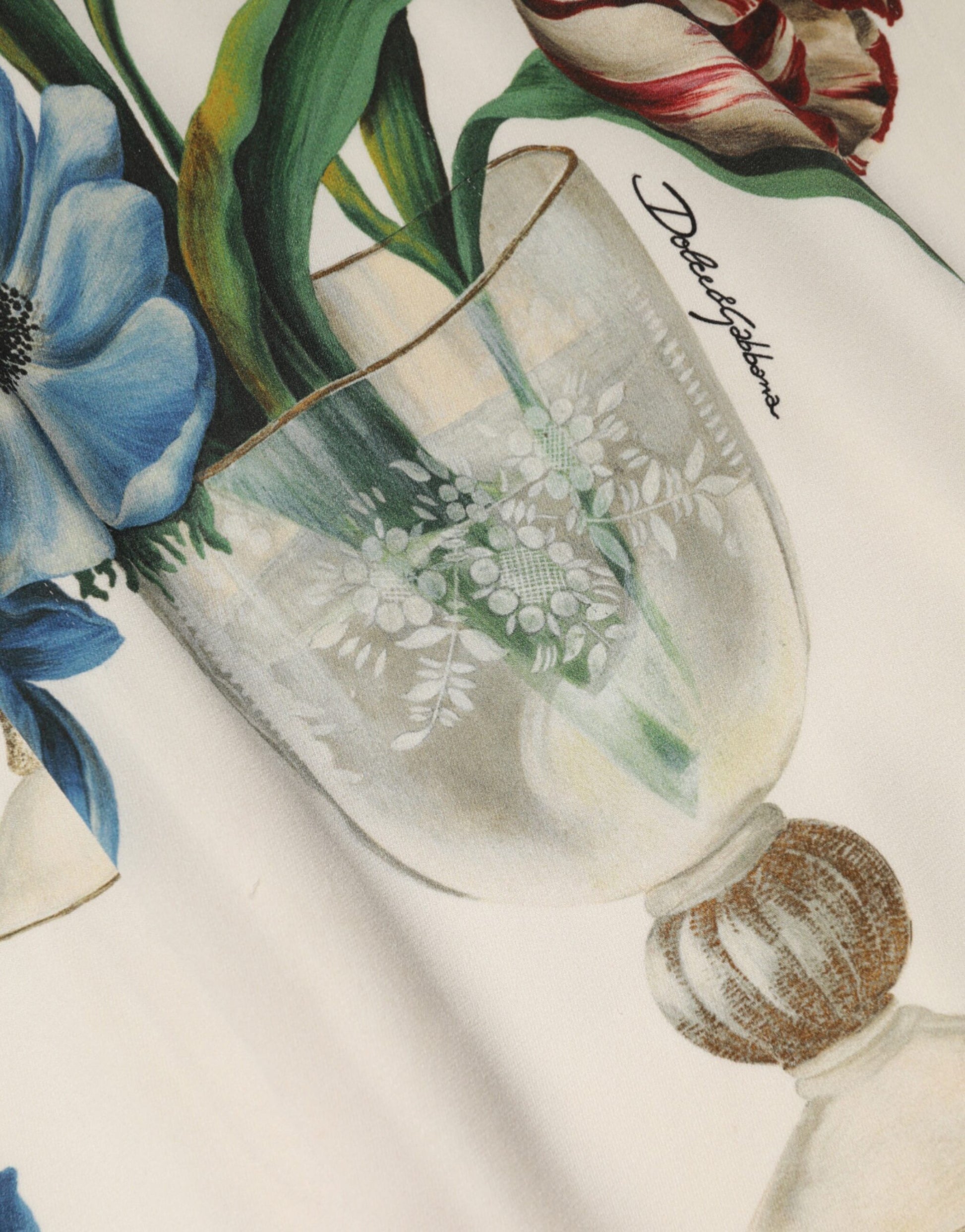 white floral midi skirt features a mid-waist fit and a pencil-cut silhouette for a sleek, flattering shape. The delicate floral print adds a touch of elegance, making it perfect for daytime events, office styling, or sophisticated casual looks. A versatile piece combining classic refinement with signature Italian charm.