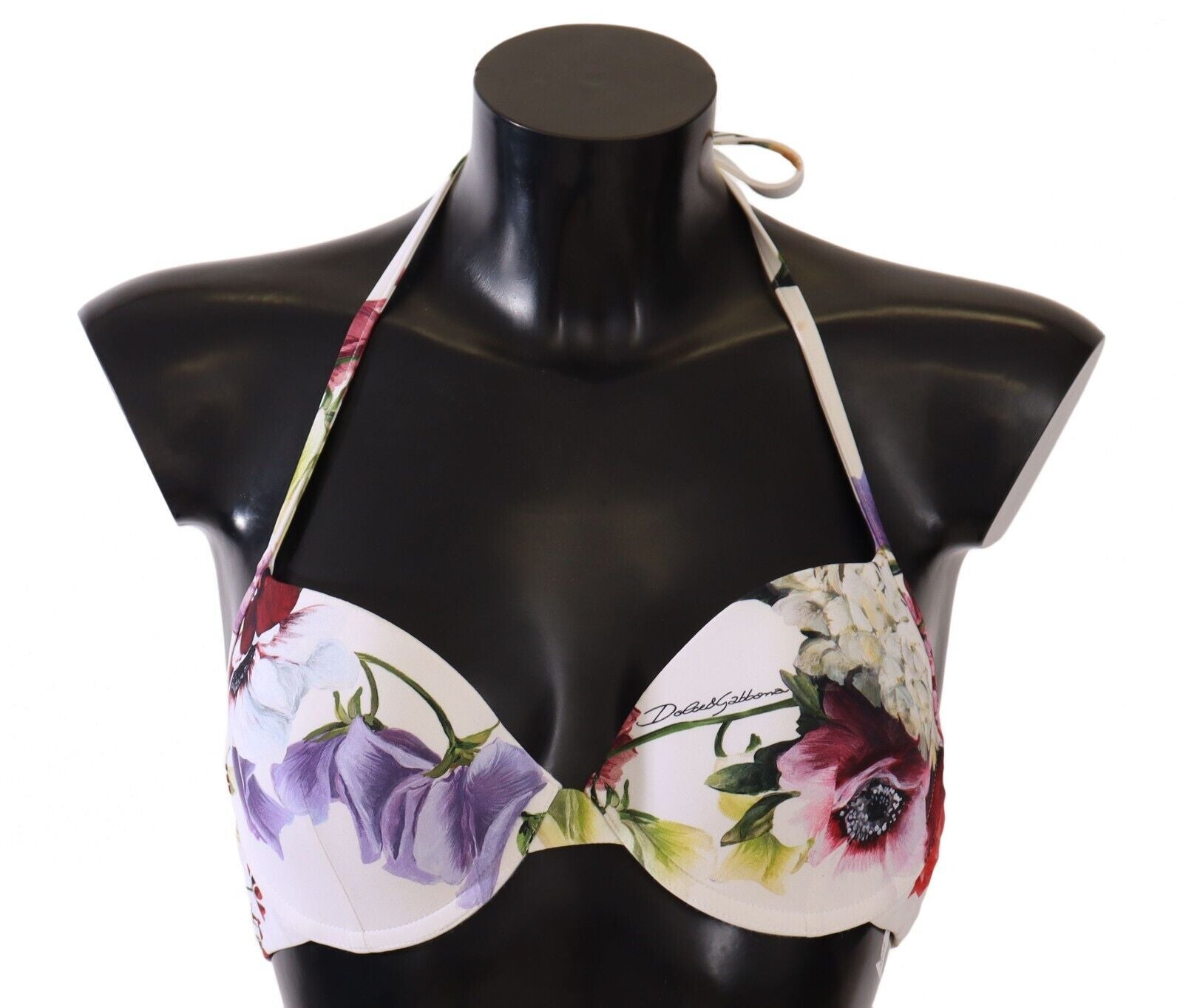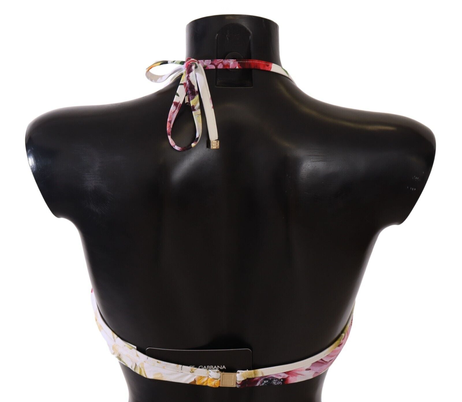 Embrace the essence of summer with this exquisite bikini top by Dolce & Gabbana. Featuring a fresh white base with a vibrant multicolor floral print, this piece is crafted from a blend of 75% nylon and 25% elastane, offering both comfort and an impeccable fit. Adorned with the D&G’s signature logo detailing, this Italian-made swimwear is designed to make you stand out with a touch of luxury.