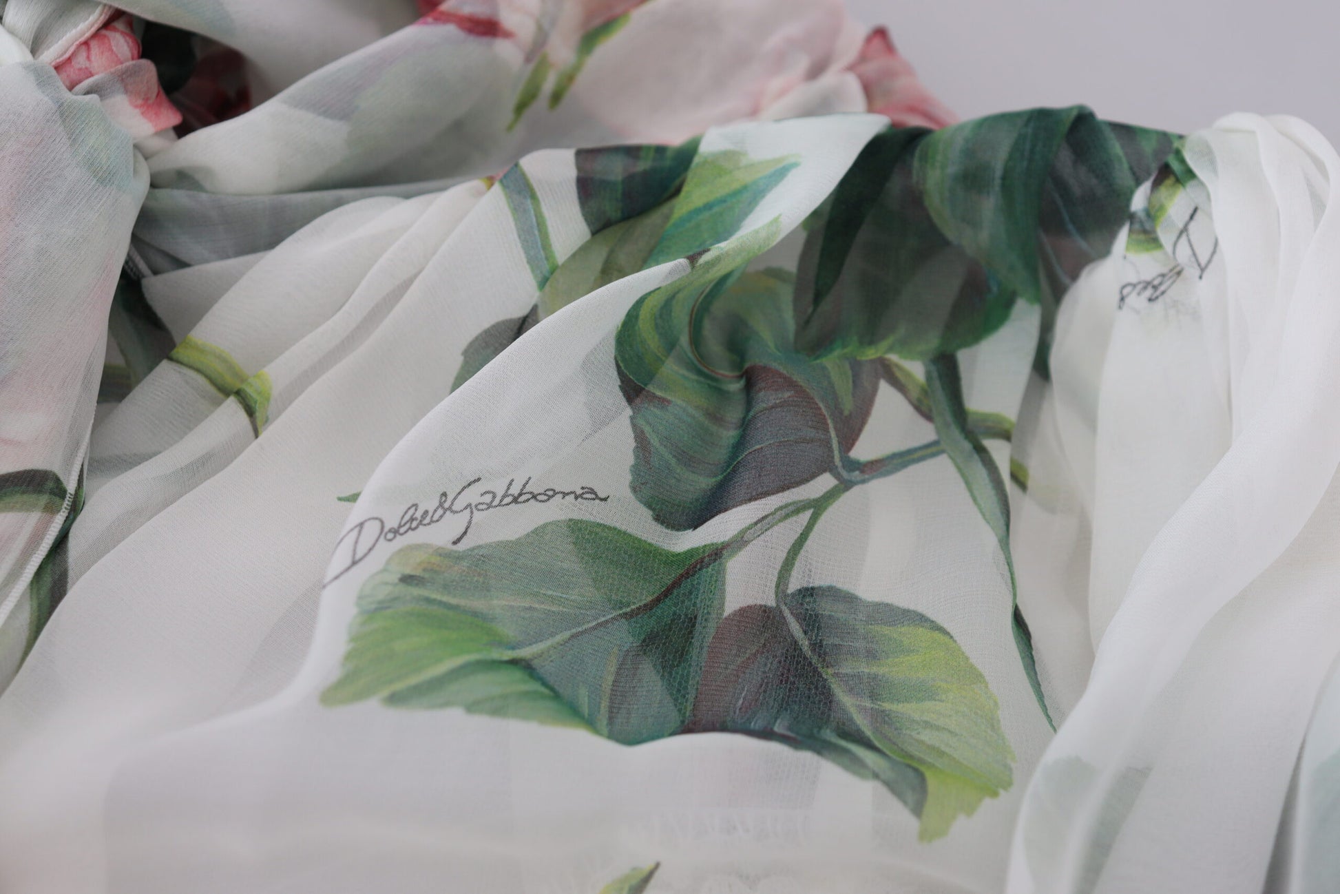 Exude sophistication and grace with this impeccably crafted floor-length maxi dress by Dolce & Gabbana. This stunning white dress, adorned with a delicate pink roses print, perfectly embodies the romantic spirit. A beautiful neckline accented with a ribbon provides a touch of elegance, complemented by the ease of a zipper and hook closure. Made in Italy, this 100% silk gown with thoughtful logo details offers a luxurious feel enhanced by a sumptuous lining blend for ultimate comfort.