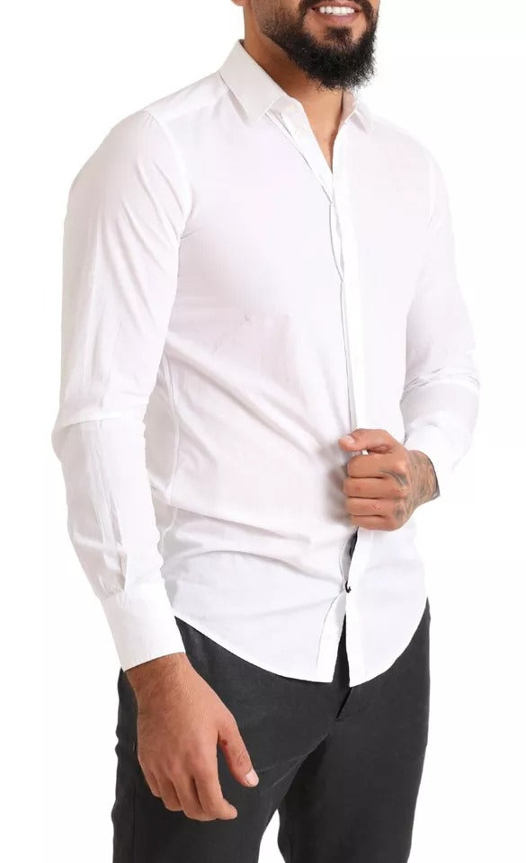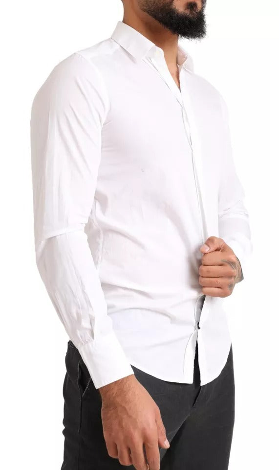 Absolutely stunning, 100% Authentic, preowned with tags Dolce & Gabbana cotton dress shirt. The model has a classic neck, long sleeves and a button down closure.