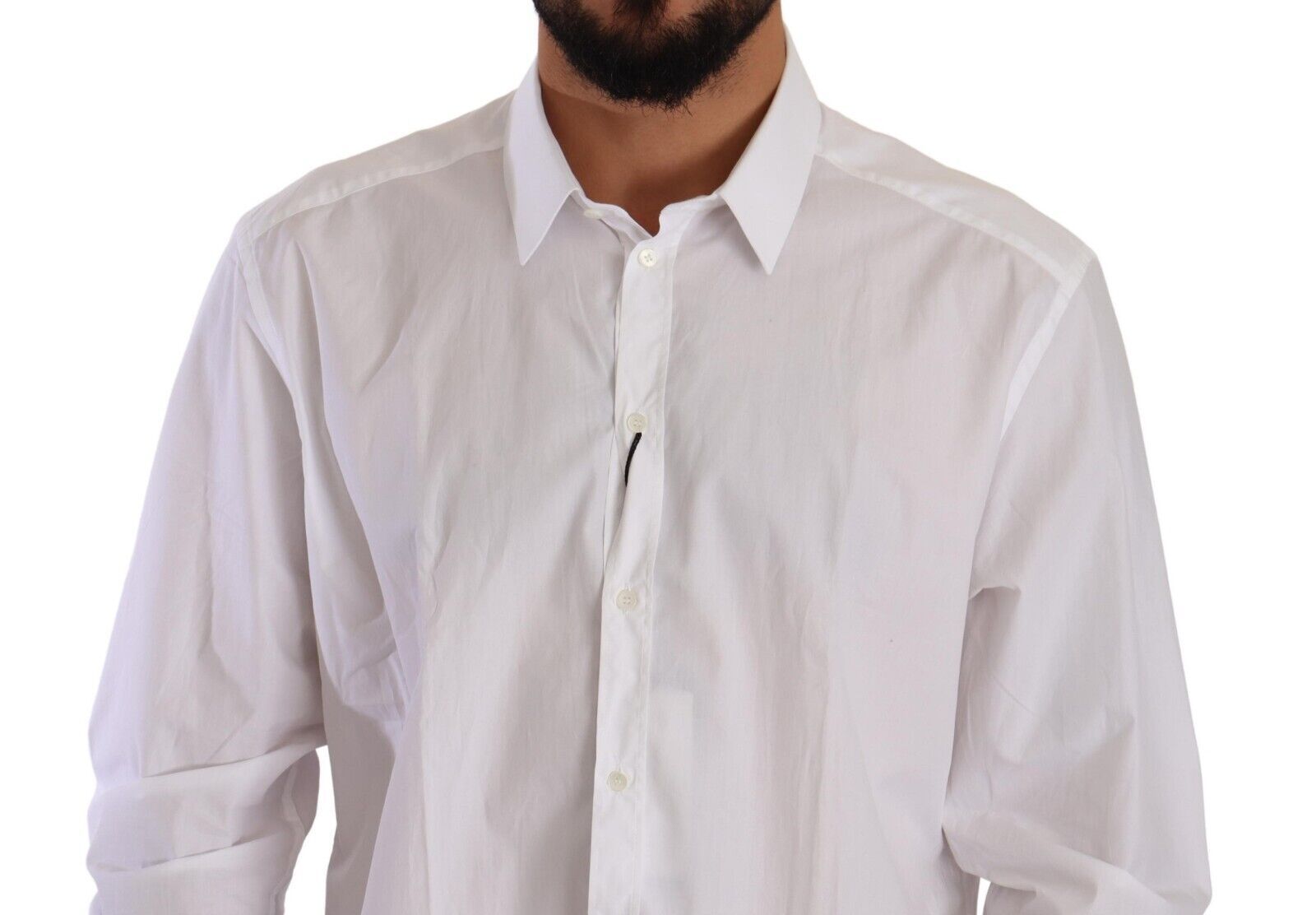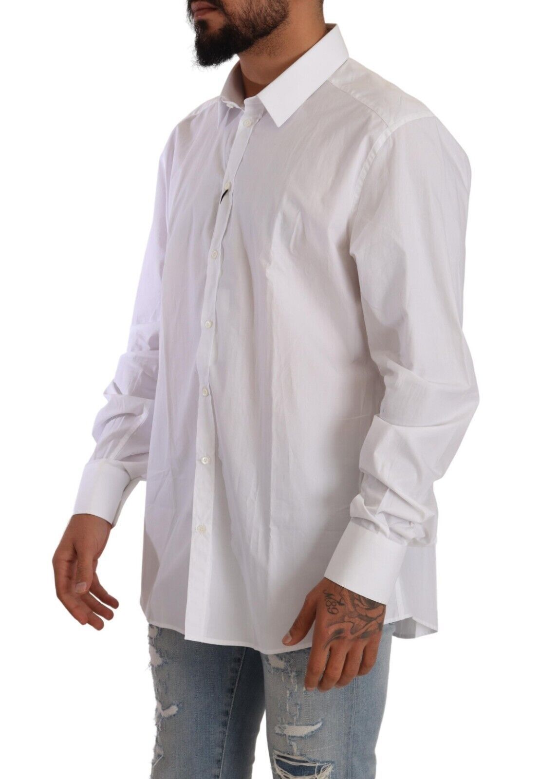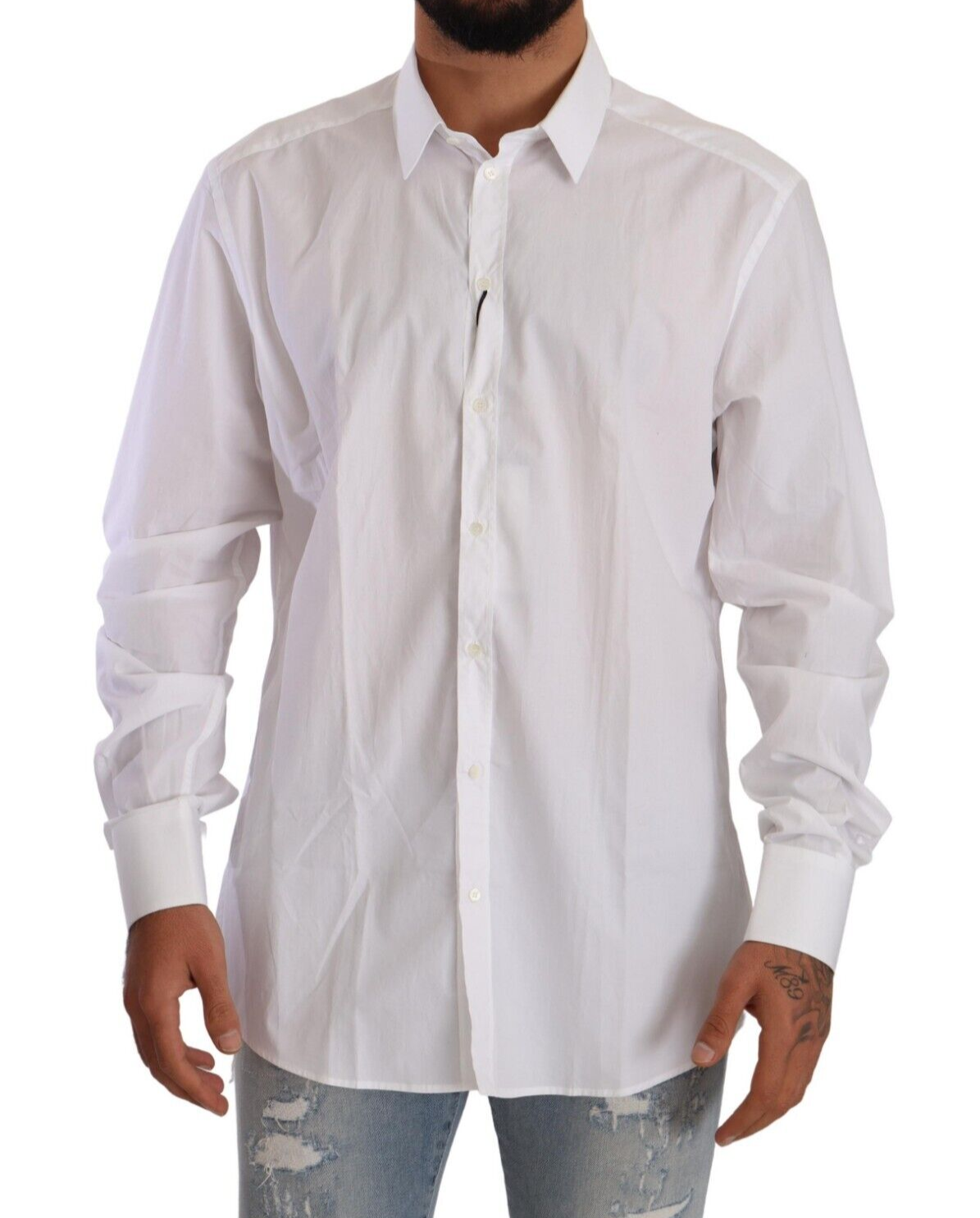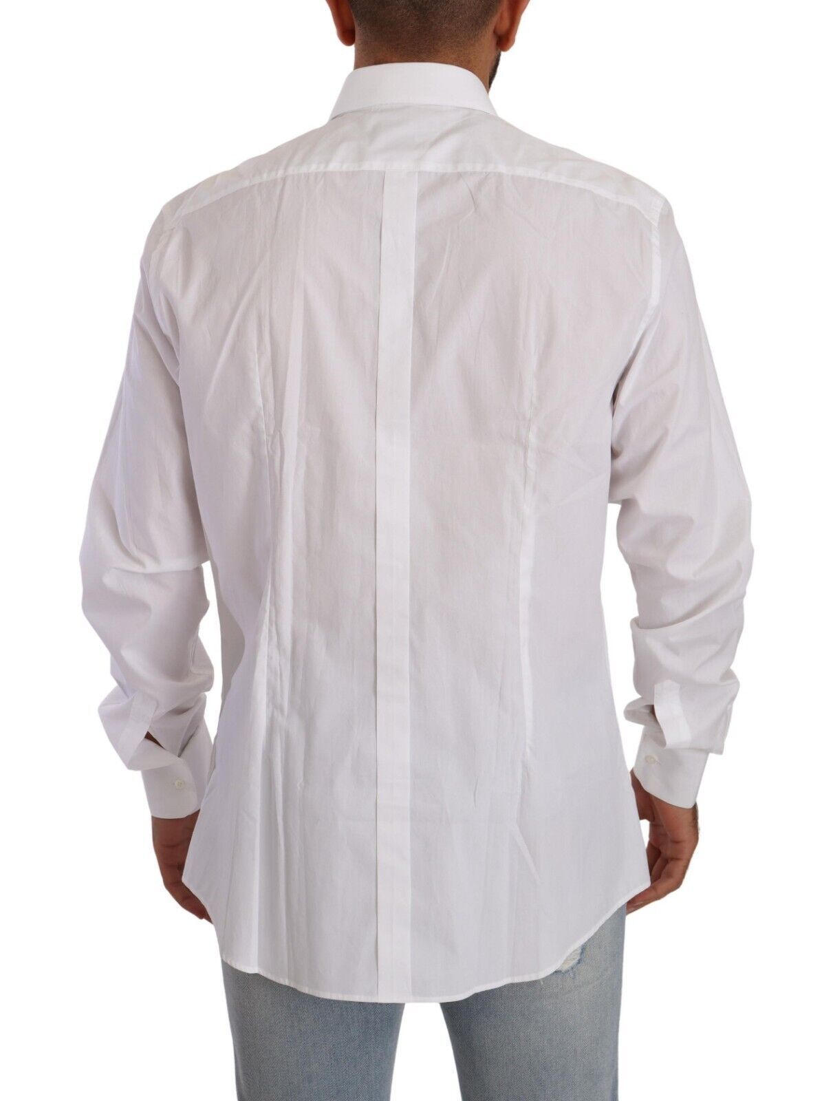 Indulge in the epitome of sophistication with our pristine white dress shirt from Dolce & Gabbana. Tailored to a slim fit, this GOLD collection shirt reflects the pinnacle of Italian craftsmanship, offering a sharp silhouette for any formal or high-profile occasion. The classic collar and front button closure ensure timeless elegance, while the luxurious 100% cotton material promises comfort and durability. Adorned with subtle logo details, this shirt is a testament to Dolce & Gabbana’s attention to detail and commitment to high-end fashion.