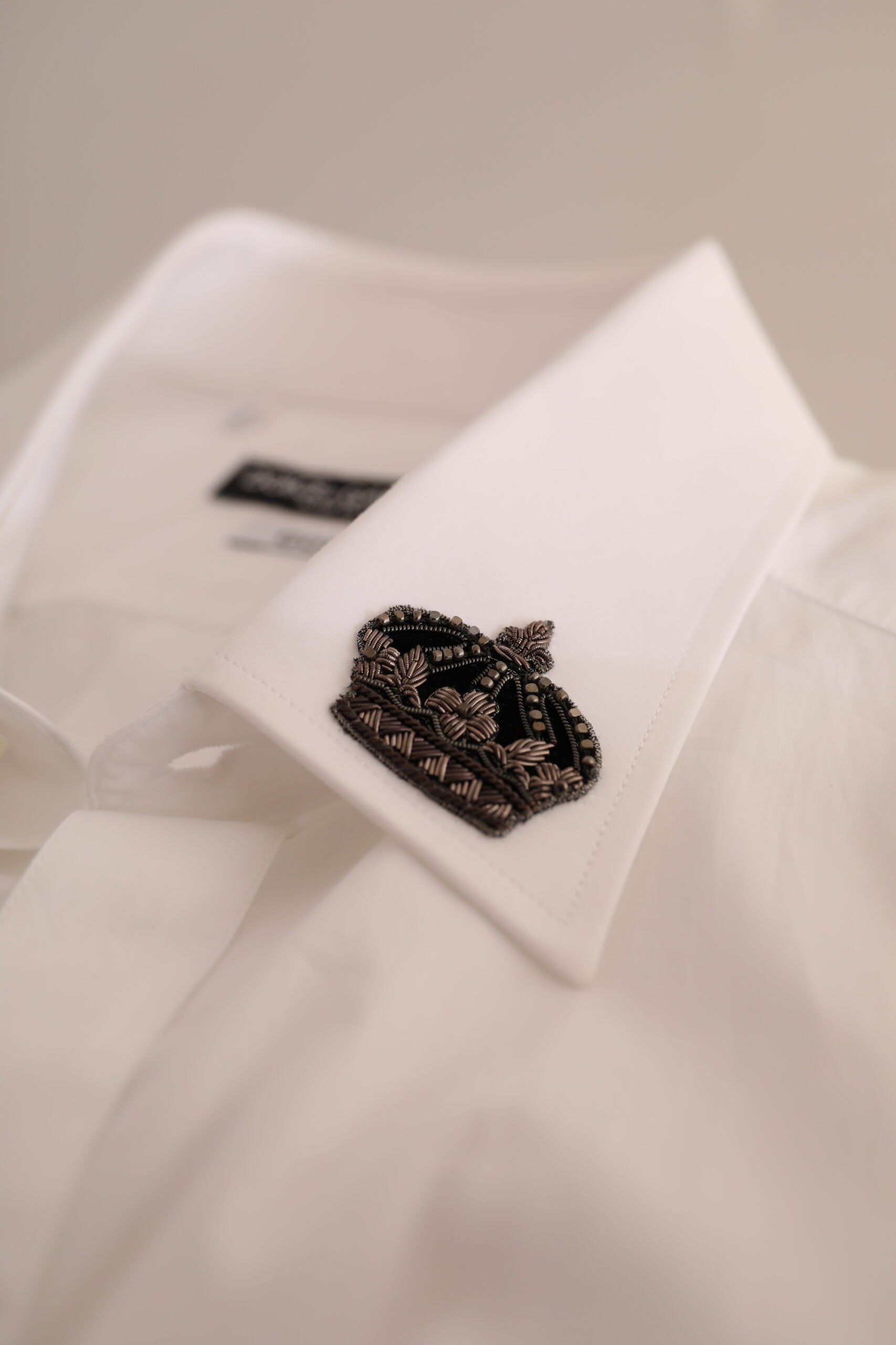 The standout feature is the majestic crown embroidery that adorns the turn-down collar, a symbol of regal finesse. Perfect for any formal occasion, this shirt ensures a sharp and distinguished appearance with every wear.