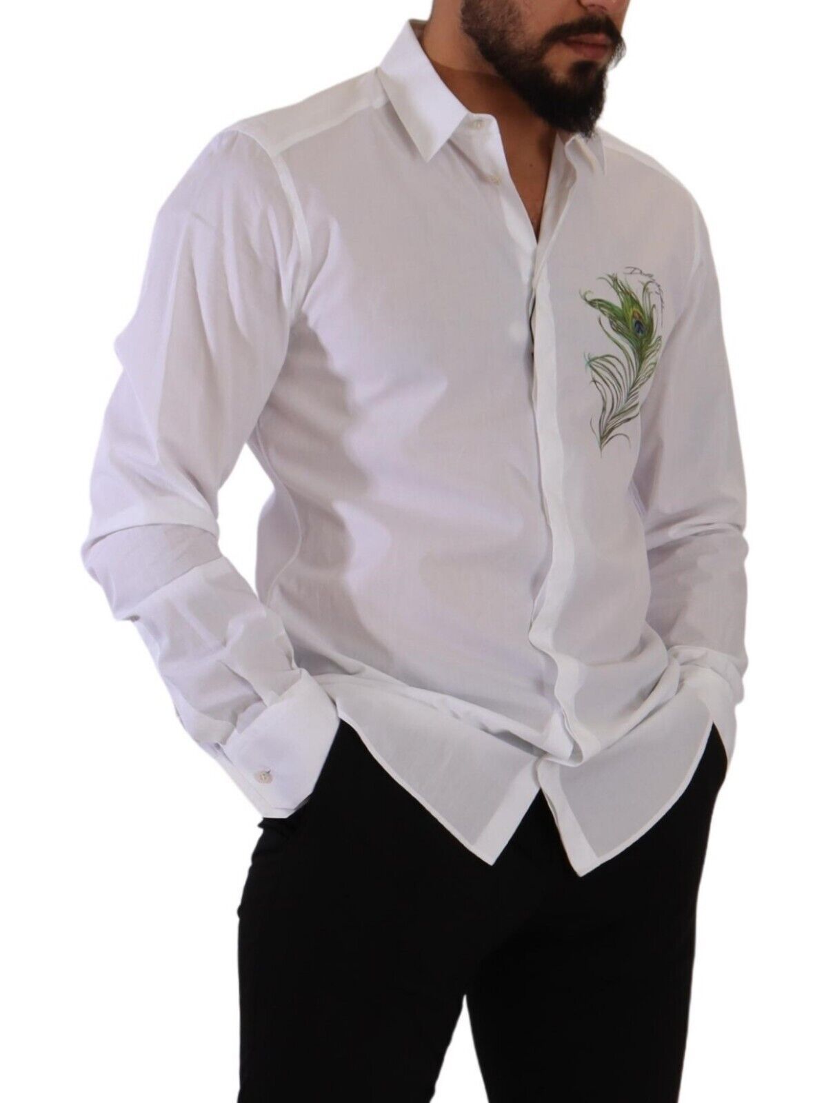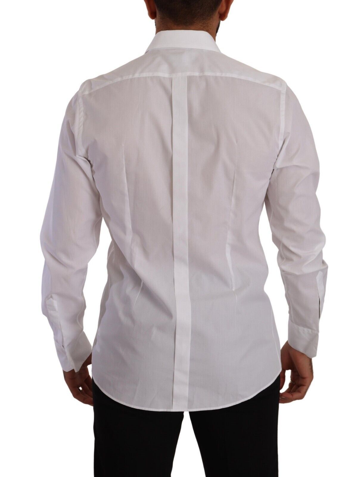 Indulge in the epitome of sophistication with this absolutely stunning, 100% Authentic Dolce & Gabbana dress shirt from their GOLD collection. This white slim-fit piece is not only a mark of high fashion but also an embodiment of elegant tailoring. It features a classic collar, long sleeves, and a seamless button-down closure, making it a perfect blend of comfort and luxury. Crafted from the finest 100% cotton, its crisp texture and flawless finish make it a must-have for any distinguished wardrobe. Complete with subtle logo details, it’s made in Italy, ensuring the highest quality and craftsmanship.
