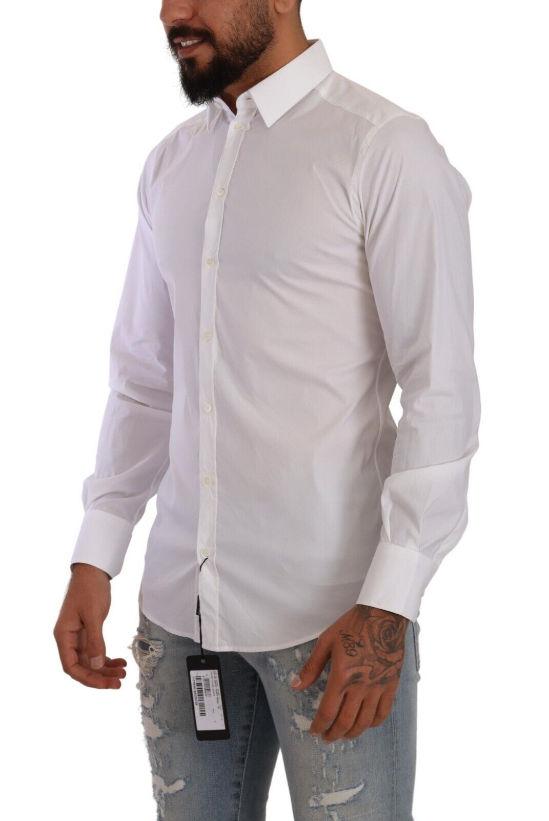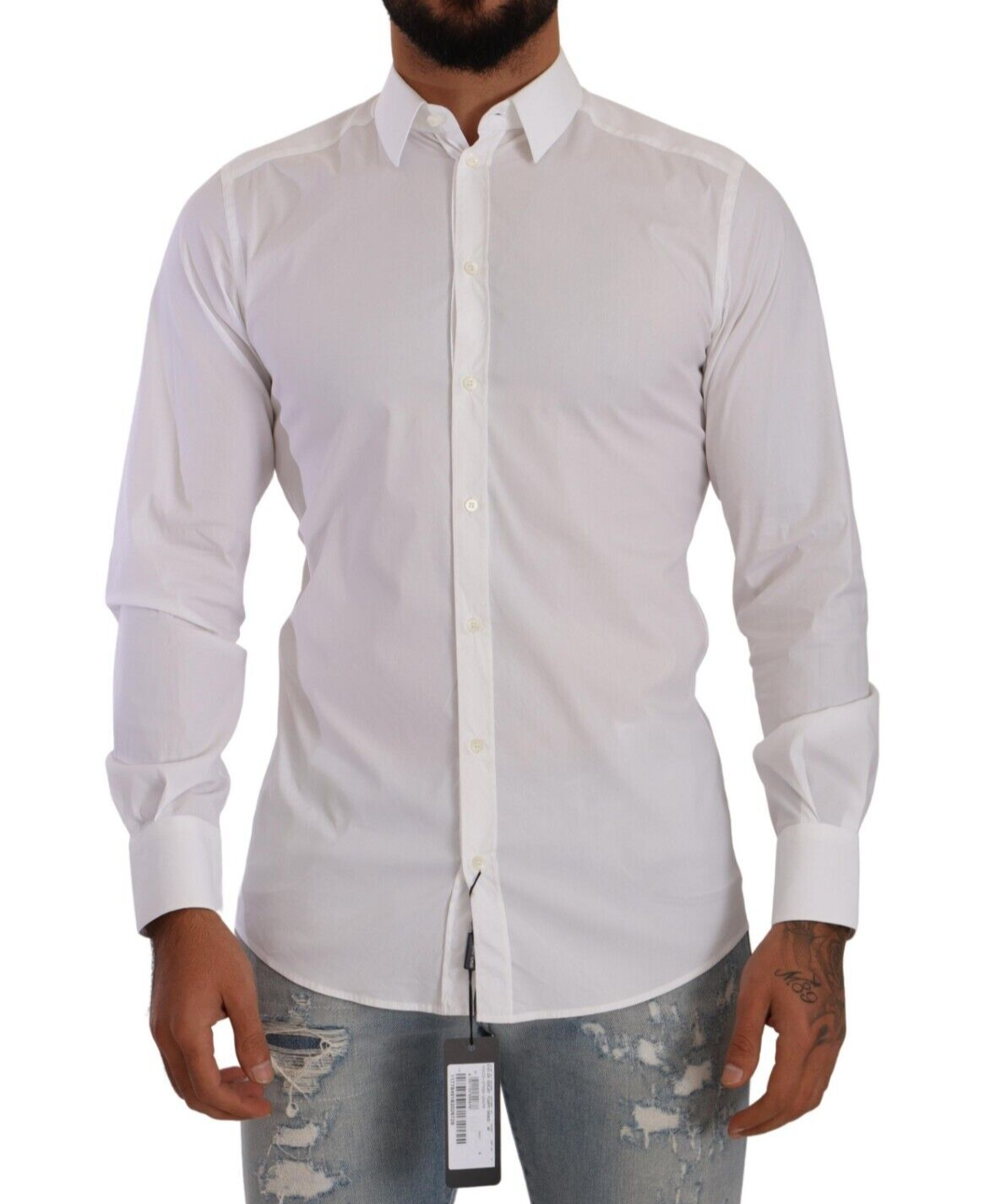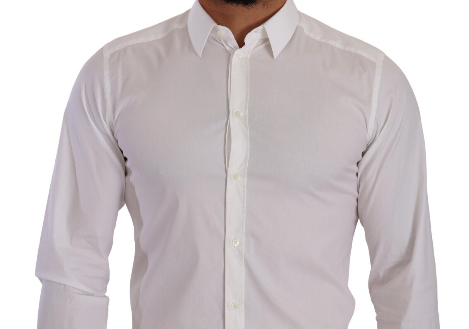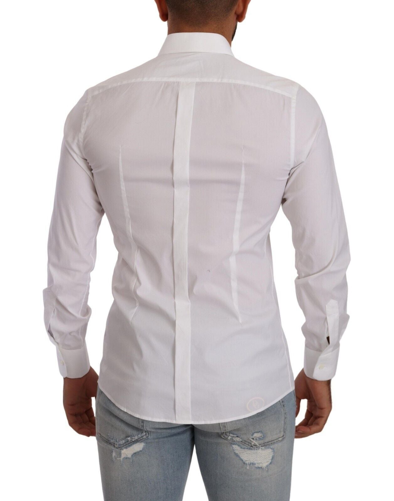 Refined elegance meets pure comfort with this stunning white dress shirt from the esteemed house of Dolce & Gabbana. Crafted with the finest 100% cotton, the ‘GOLD’ model exudes luxury while promising a slim fit that contours expertly to your form. Designed with a classic collar and sophisticated front button closure, this exquisite piece is a testament to Italian craftsmanship and the pinnacle of style suitable for any gentleman’s wardrobe. Make a statement at your next formal event with this impeccable shirt that is sure to turn heads.