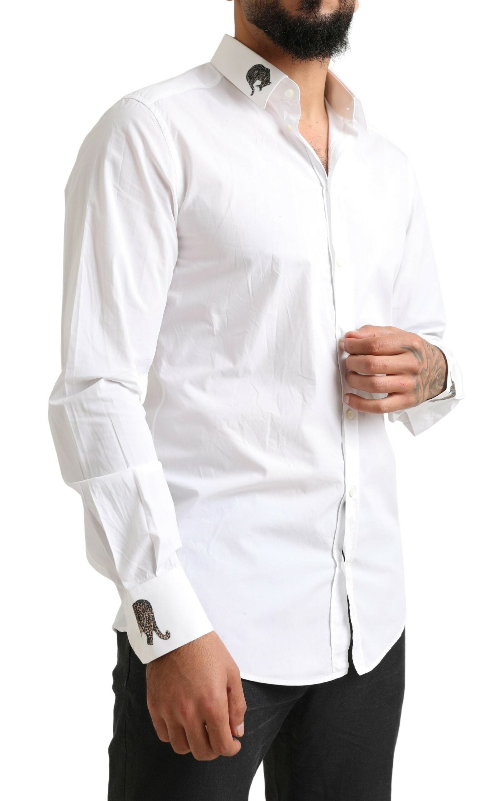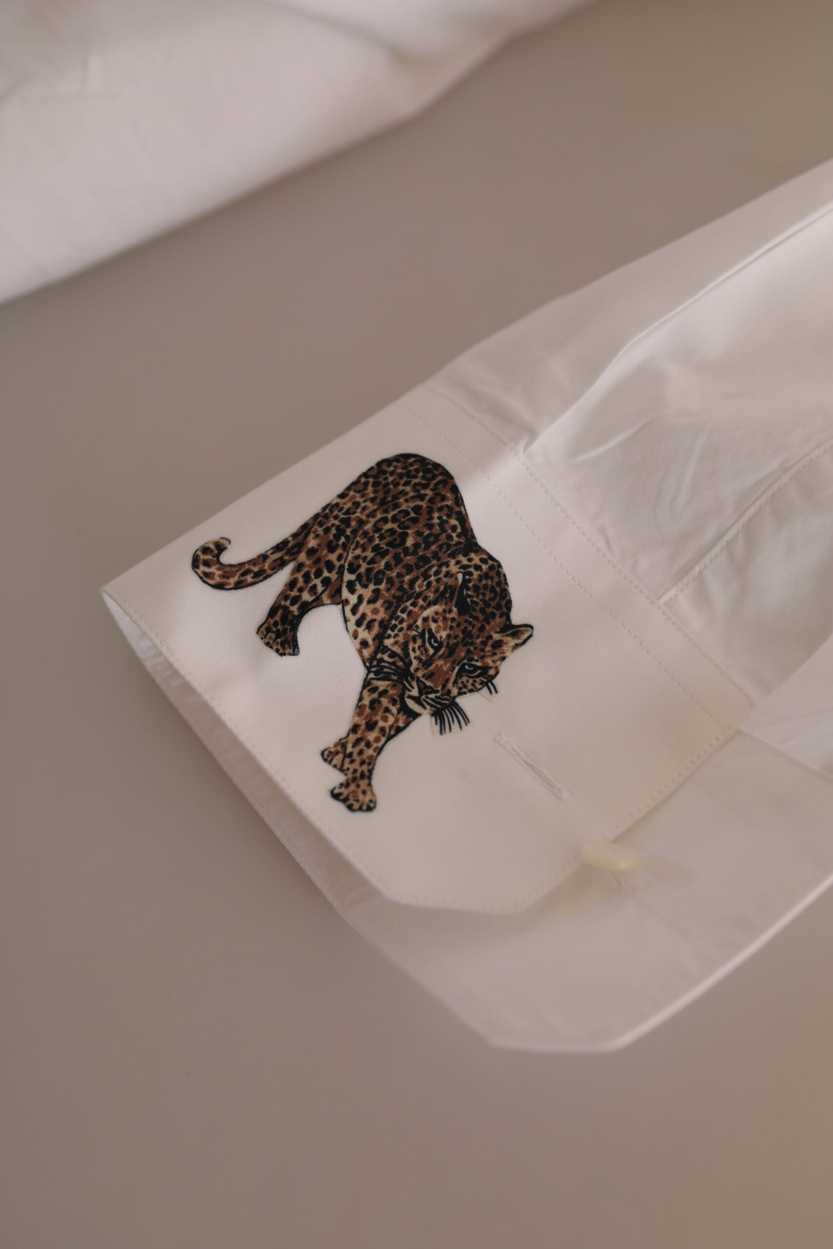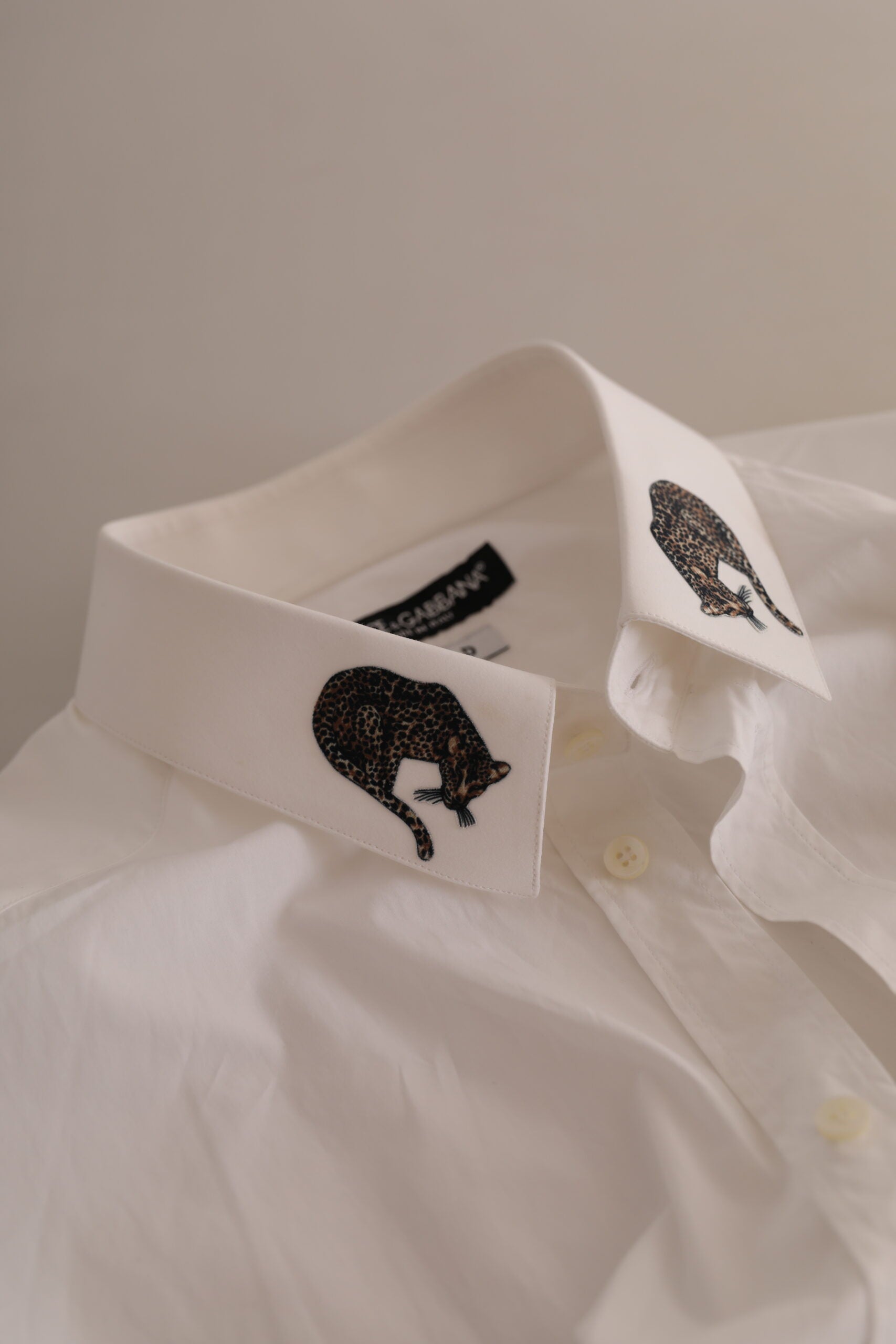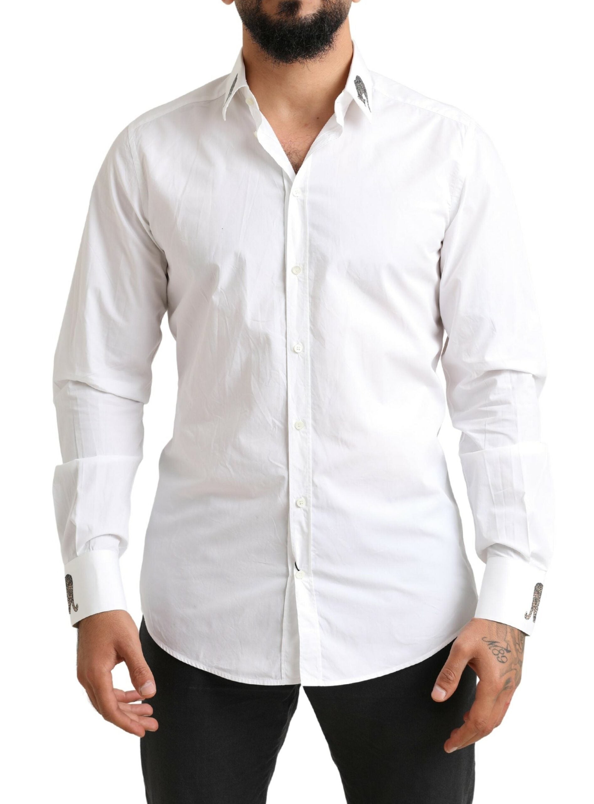 Exude sophistication and timeless style with this stunning Dolce & Gabbana dress shirt. Perfect for any formal or high-end occasion, this 100% authentic shirt is brand new with tags and embodies the luxury Italian craftsmanship. Its slim fit design is both flattering and comfortable, crafted from the finest 100% cotton fabric. The classic neck and long sleeves offer a polished look, while the front button closure provides a seamless finish. This elegant white shirt is enhanced with subtle logo details, adding a signature touch of Dolce & Gabbana’s iconic fashion house. Made in Italy, it truly represents the pinnacle of men’s fashion.
