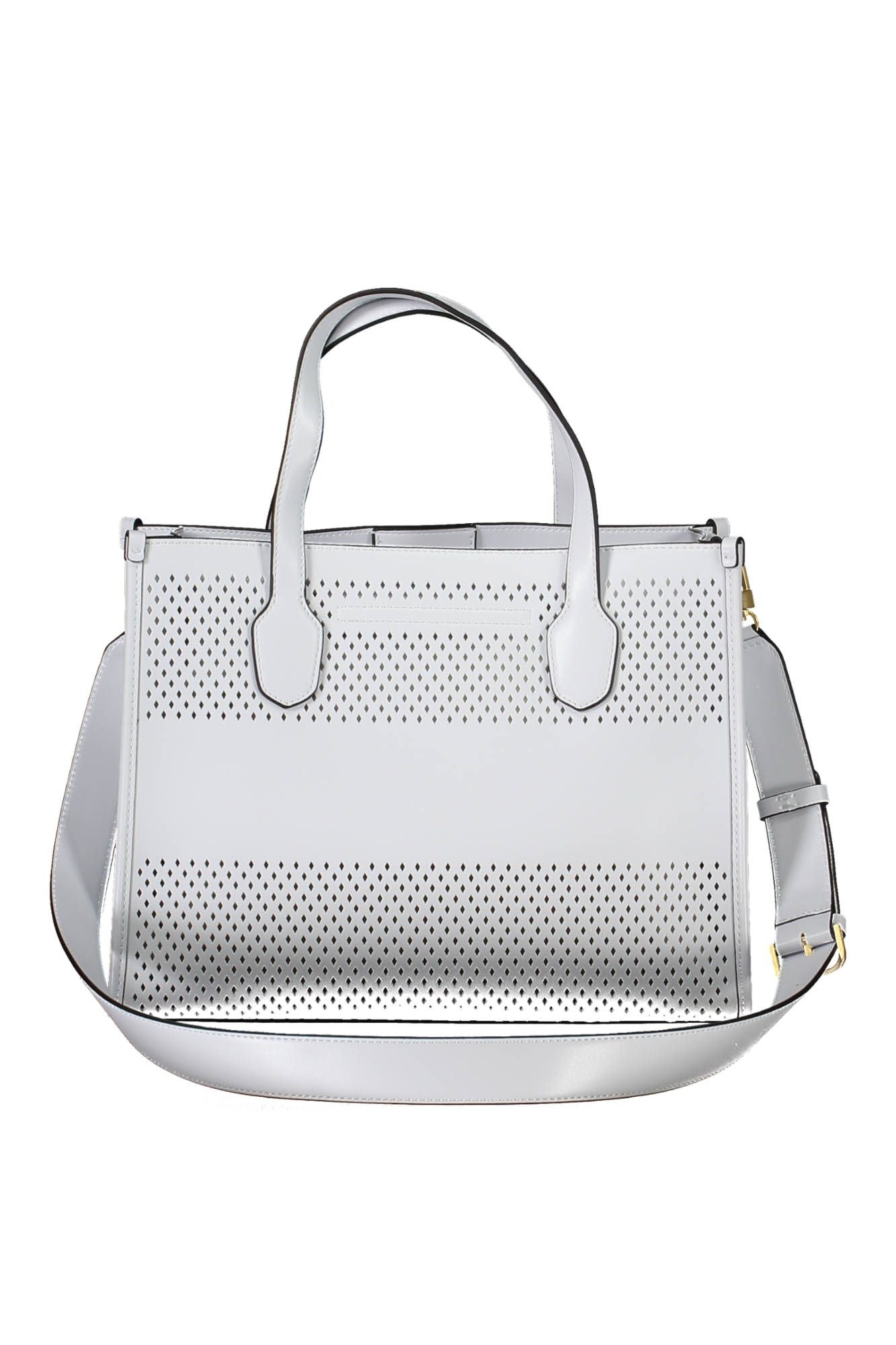Elevate your style with the sophisticated yet edgy ‘Guess Jeans’ handbag, an absolute must-have for the fashion-forward enthusiast. Crafted from sleek white polyurethane, it exudes luxury with every detail. Complete with two handles, a versatile adjustable and removable shoulder strap, and a chic removable pochette that converts on-the-fly for those spontaneous moments. Its contrasting details are a nod to modern design, while the secure zip and automatic closure ensure your items stay safe in an emblematic logo-emblazoned package.