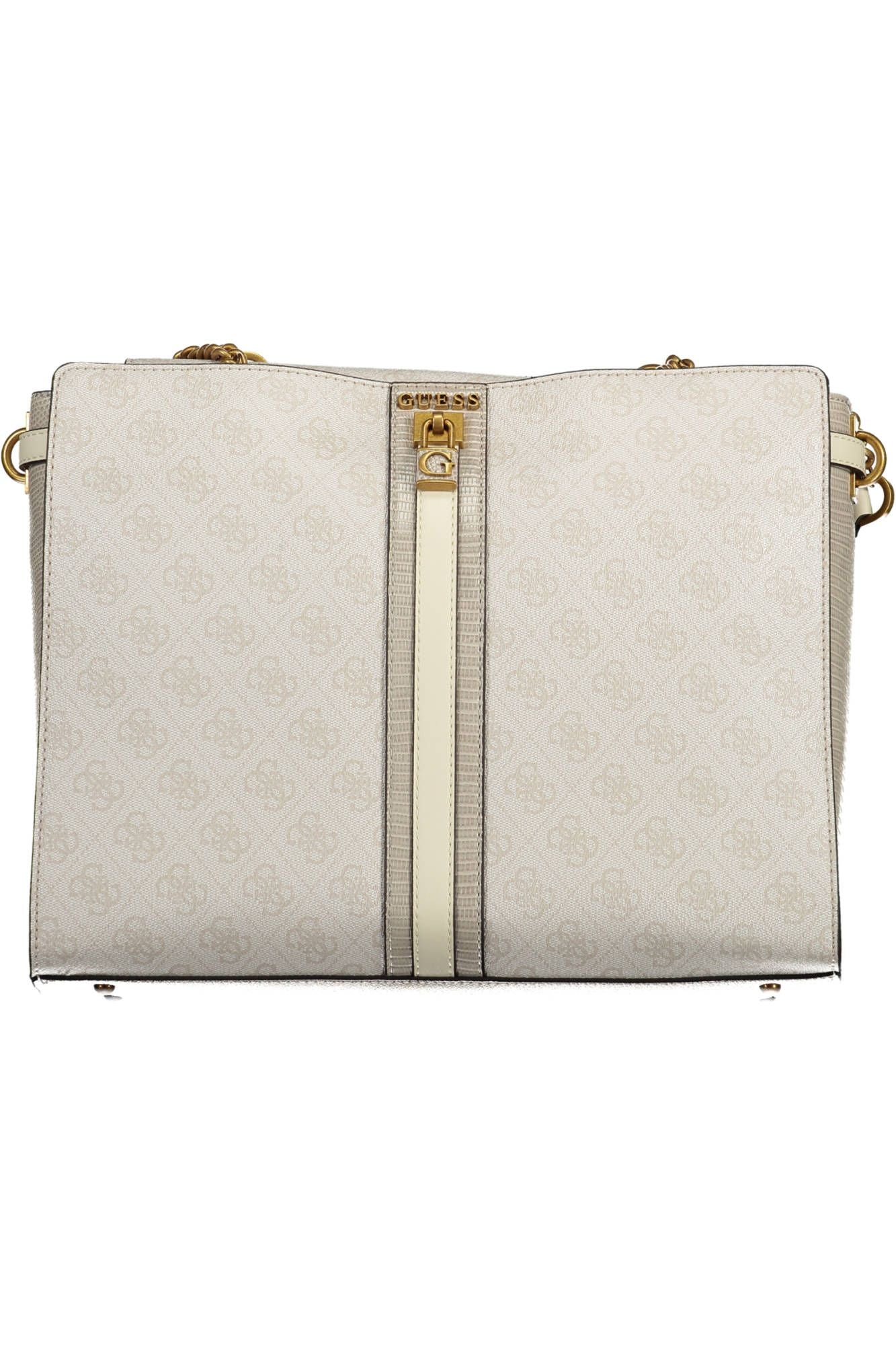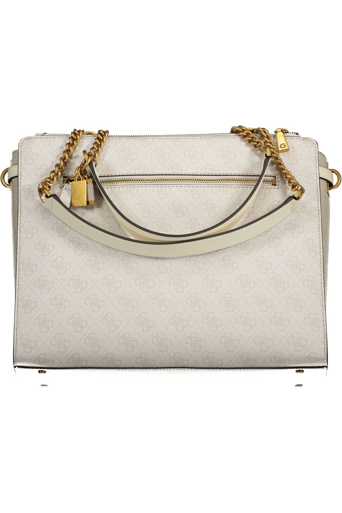 Dive into the epitome of contemporary chic with the Guess Jeans white handbag, where elegance meets functionality. With two gleaming chain shoulder handles, this bag captures attention and defines your outfit. An external pocket provides quick access, while the dual compartments and internal pocket ensure organization. Striking contrasting details accent the pristine white, and the piece de resistance is the iconic logo, showcasing your taste for renowned fashion. Its secure zip and automatic closure ensure your essentials are always safeguarded in style.