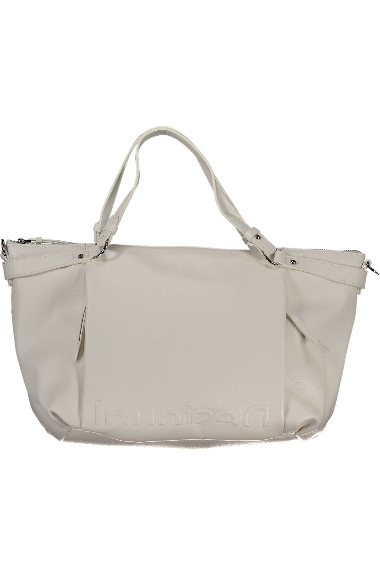 Elevate your ensemble with the Desigual charm featuring a versatile white handbag that seamlessly fuses functionality with fashion. The clever design flaunts two graceful handles, an optional removable shoulder strap to switch styles on-the-go, and innovative dual adjustable straps for personalized comfort. Staying organized is a breeze with its trio of external pockets and an interior haven for securing your essentials, all safeguarded with a sleek zip closure. The iconic Desigual logo adds that final touch of brand prestige to your look.