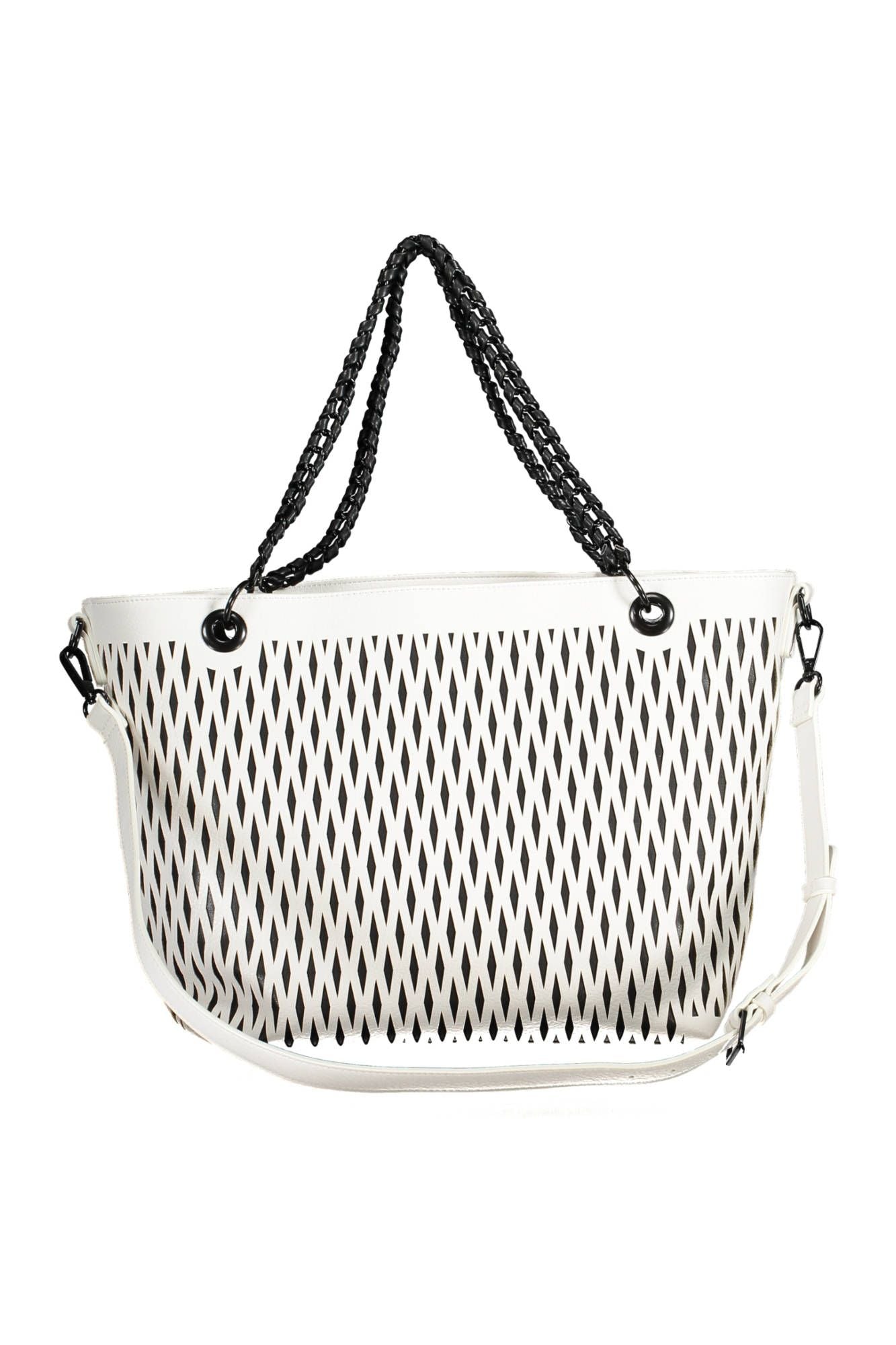Elevate your accessory game with this striking Desigual handbag, a perfect blend of functionality and bold fashion. Crafted with 100% polyethylene for durability, it boasts a pristine white palette, making a statement with its contrasting details. Featuring two chic chain handles, an adjustable and detachable shoulder strap, and a secure zip closure, it’s practical without compromising on style. The added convenience of an inner pocket ensures your essentials are always within reach. Desigual’s signature logo adds a flawless finishing touch, making this bag a must-have for trendsetters.