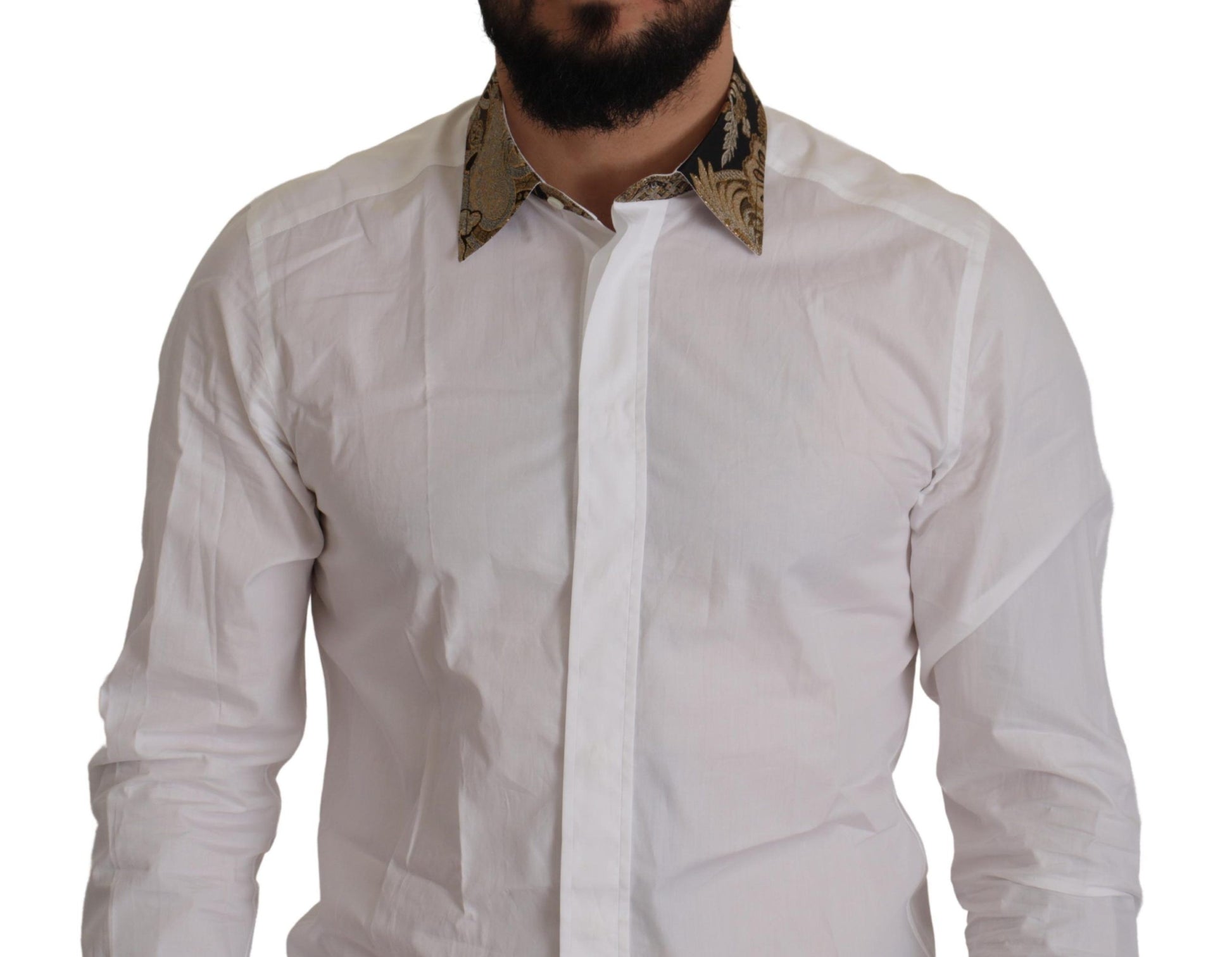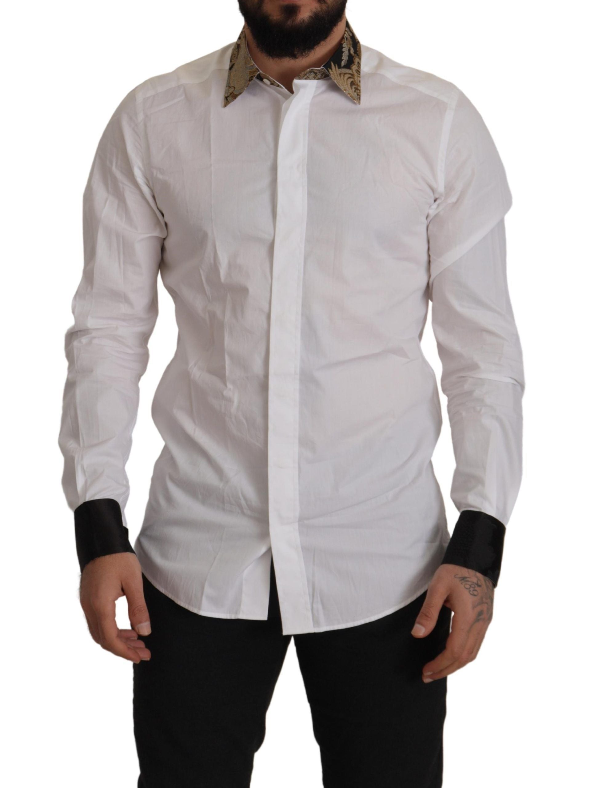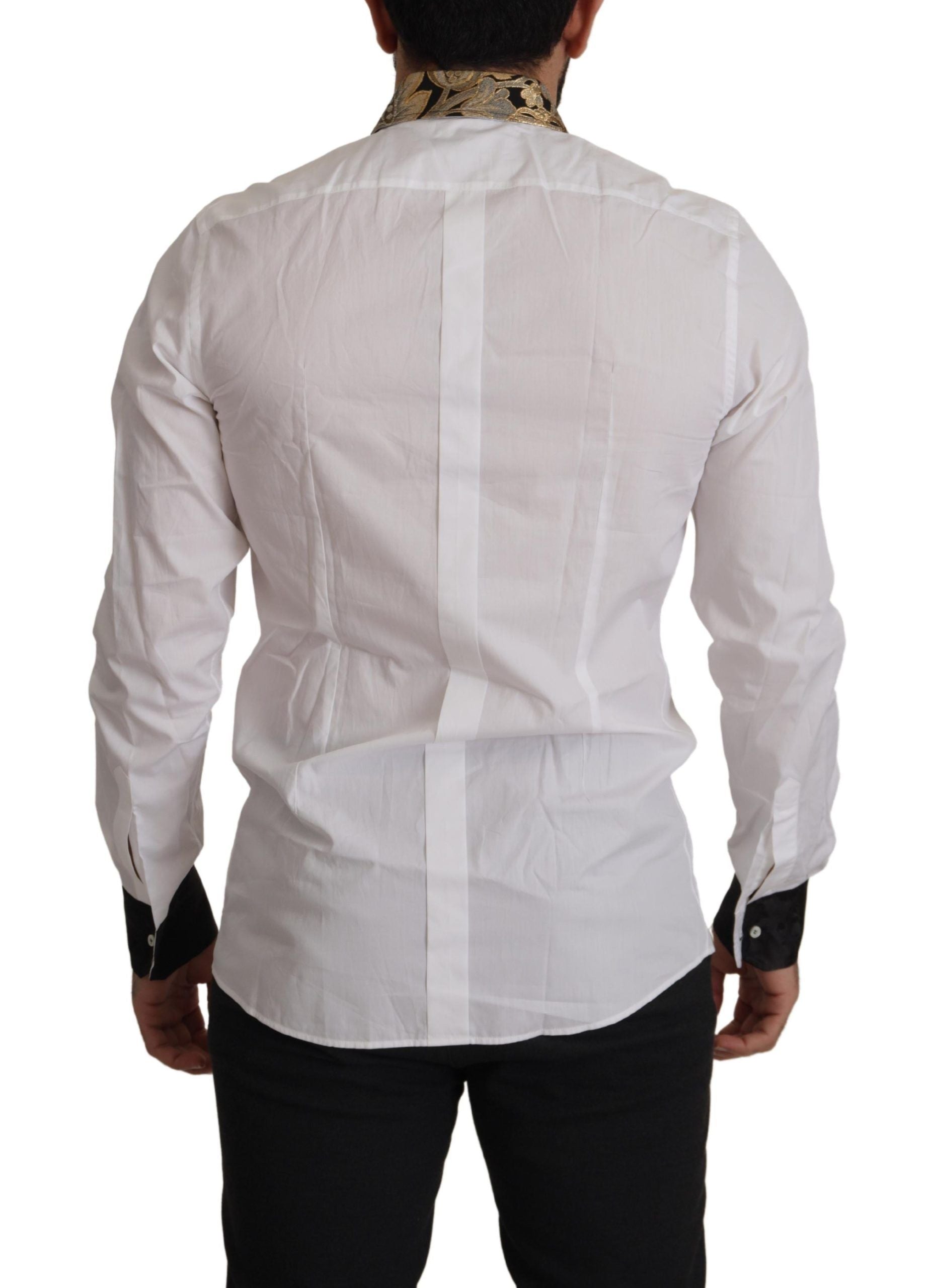 Exude elegance and sophistication with this stunning, 100% Authentic Dolce & Gabbana dress shirt. Crafted with impeccable quality, this white shirt features a classic neck, long sleeves, and a sleek button-down closure. Tailored for a slim fit, it’s perfect for any formal occasion or sophisticated event.