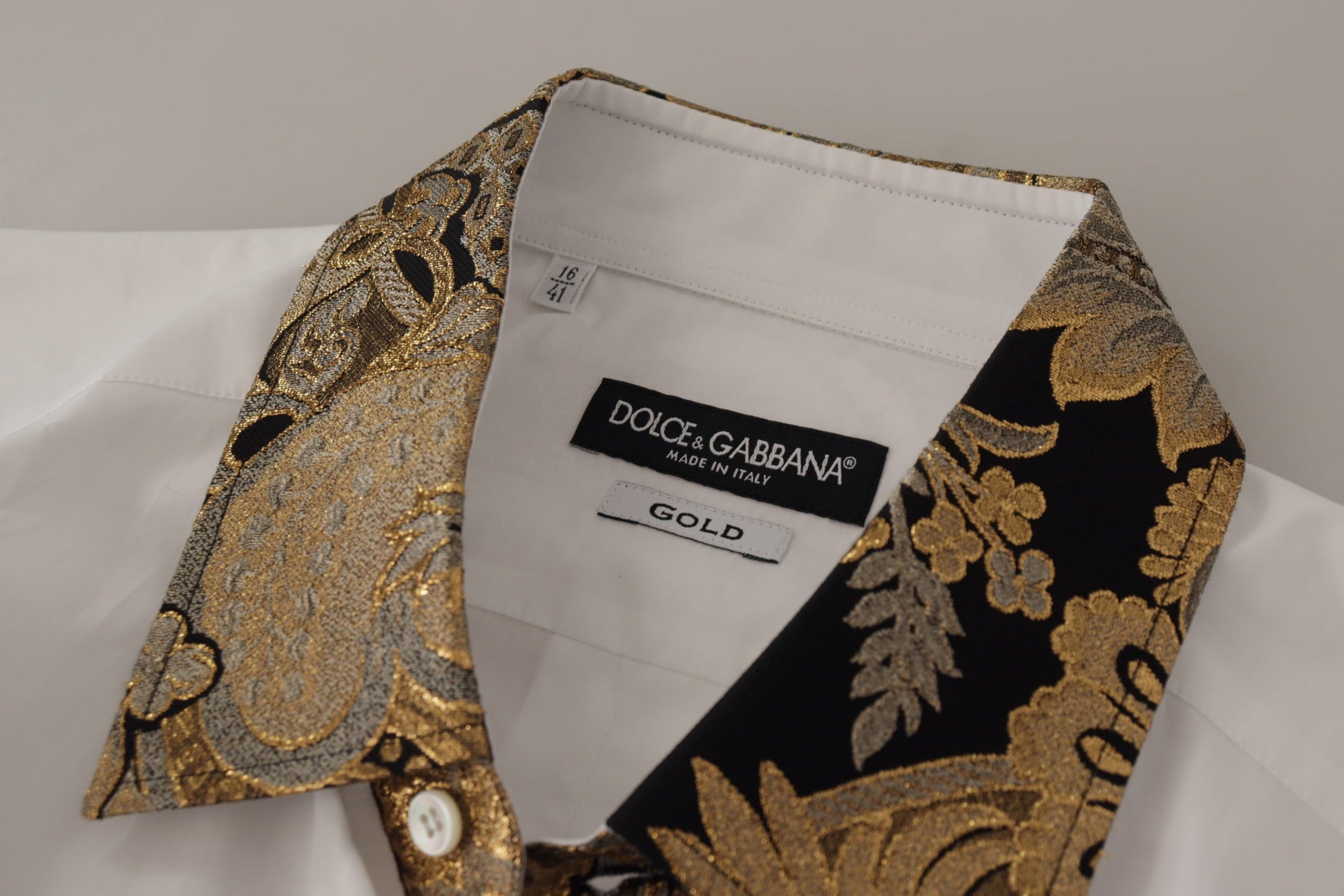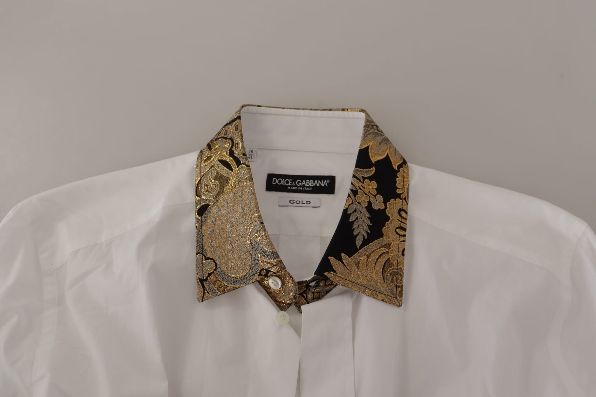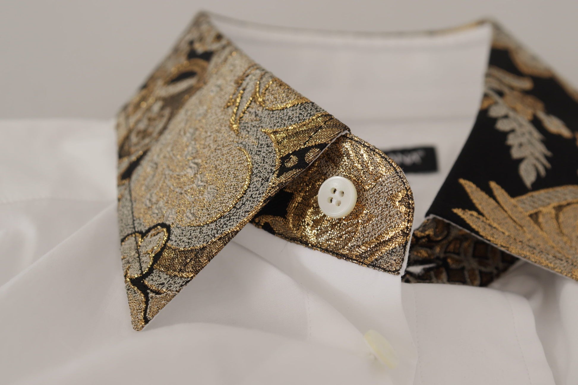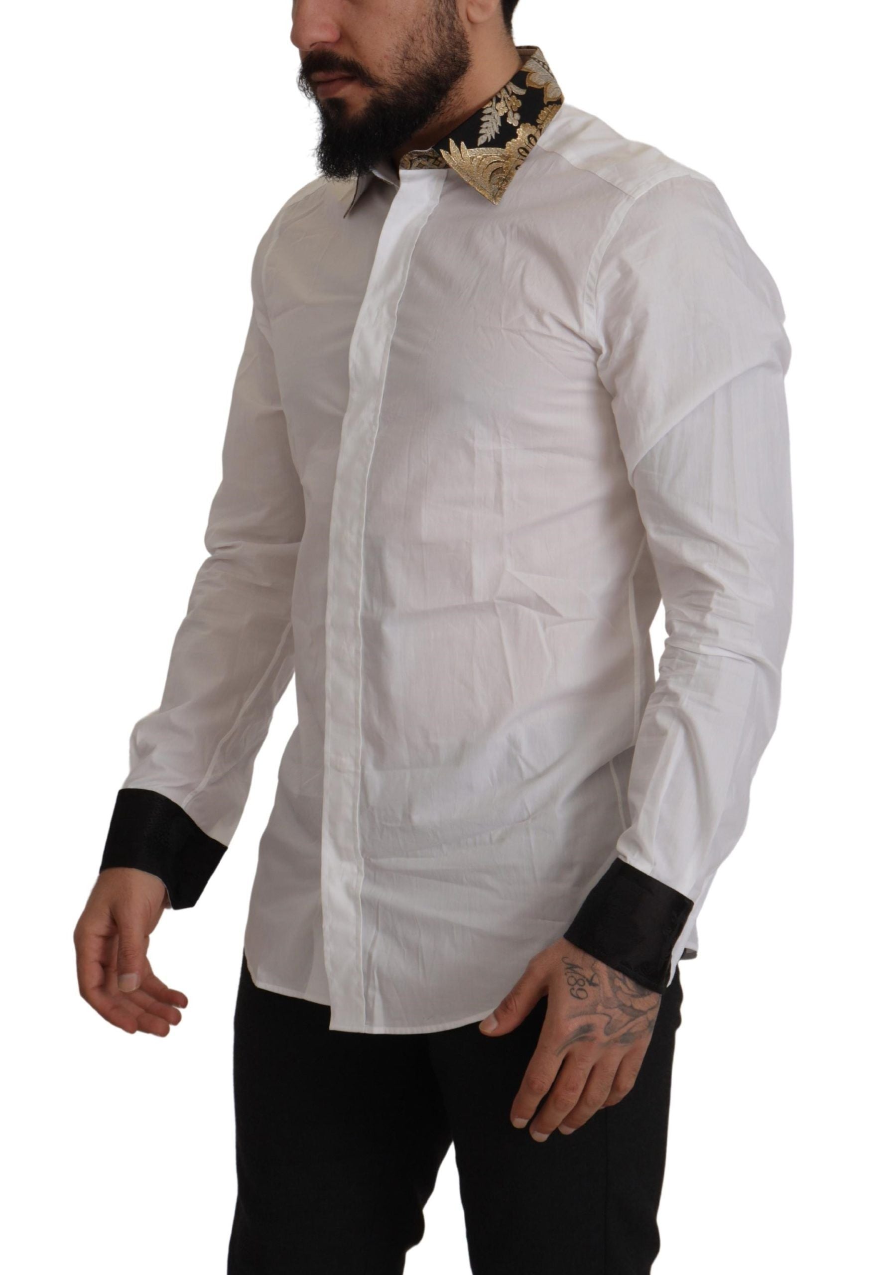 Exude elegance and sophistication with this stunning, 100% Authentic Dolce & Gabbana dress shirt. Crafted with impeccable quality, this white shirt features a classic neck, long sleeves, and a sleek button-down closure. Tailored for a slim fit, it’s perfect for any formal occasion or sophisticated event.