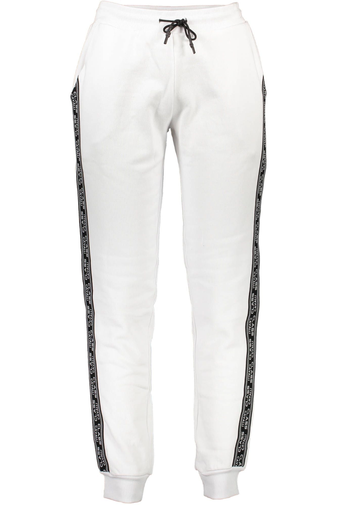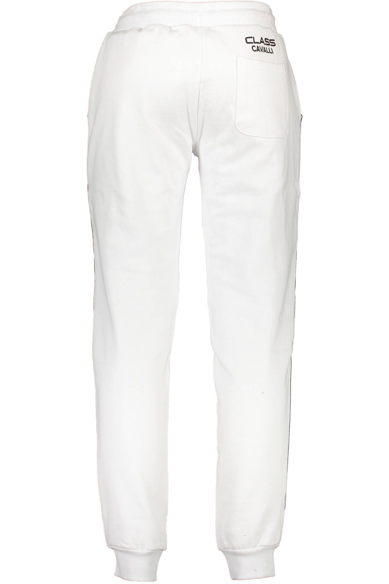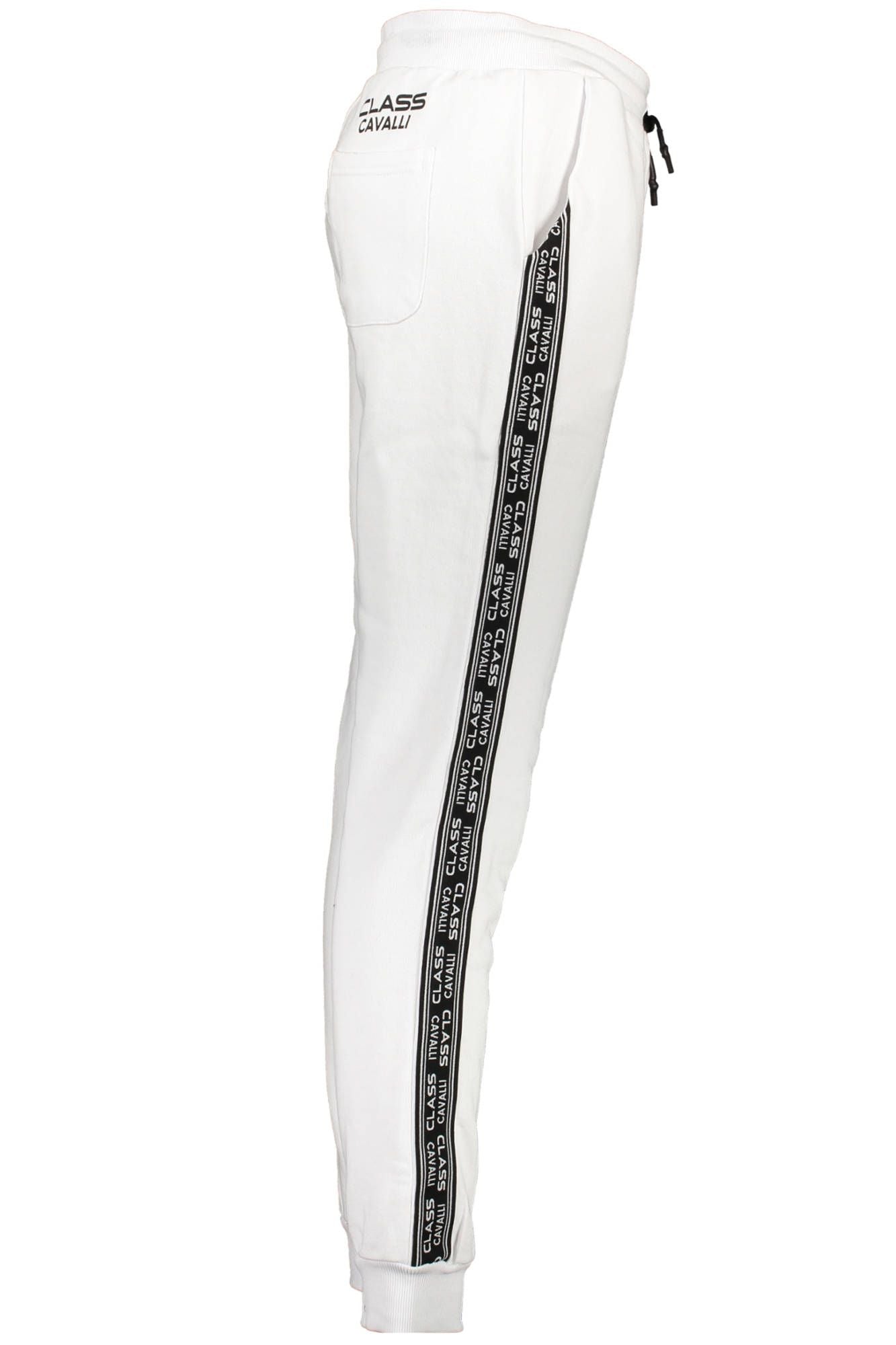 Elevate your sporty-chic aesthetic with these immaculately tailored Cavalli Class sports trousers. Designed for the fashion-forward man, these trousers feature a comfortable elasticated waist with drawstrings, ensuring a perfect fit. With three practical pockets, they boast eye-catching contrasting details and the distinctive Cavalli Class logo that adds a touch of opulence to your casual ensemble. Crafted from 100% breathable cotton, these trousers are as comfortable as they are stylish, perfect for making a bold statement while on the move. The pristine white color makes them versatile for any fashion-forward wardrobe.