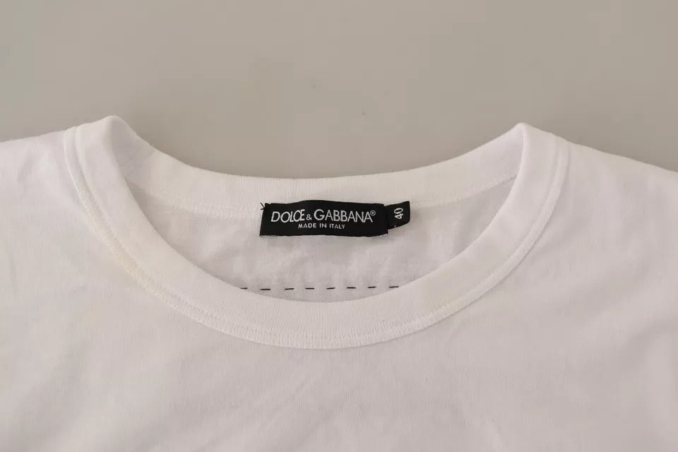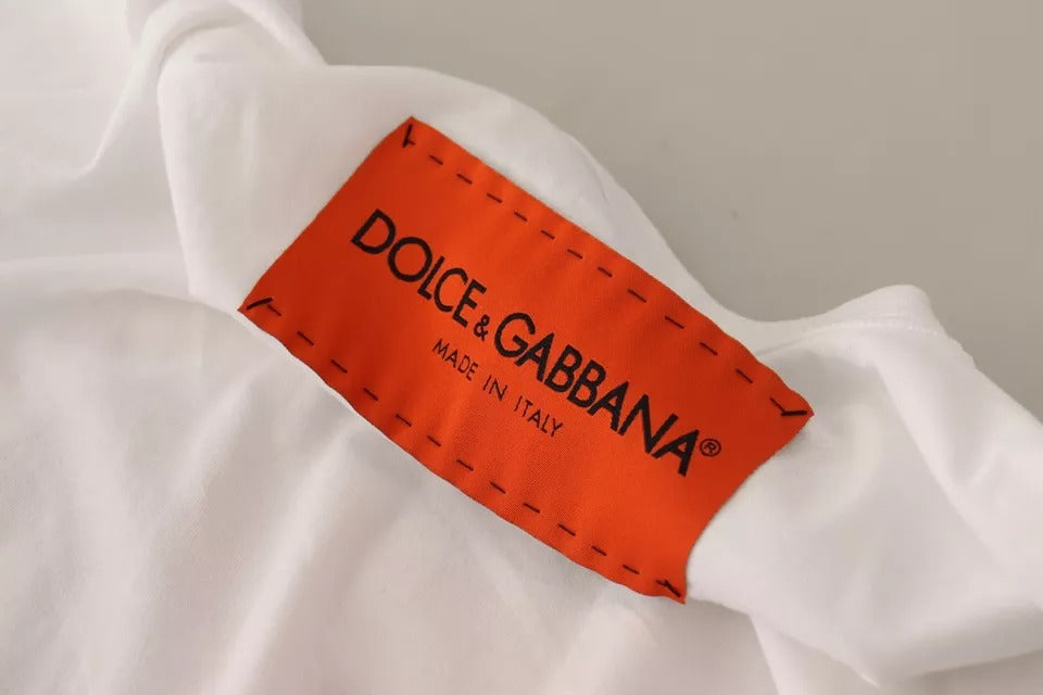 Gorgeous brand new with tags, 100% Authentic Dolce & Gabbana White tank top. Made of cotton. Enriched by a black, red and white-tone graphic print. Features round neck and orange and black logo patch on the back.