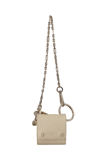 Elegant White Leather Coin Purse with Chain Strap