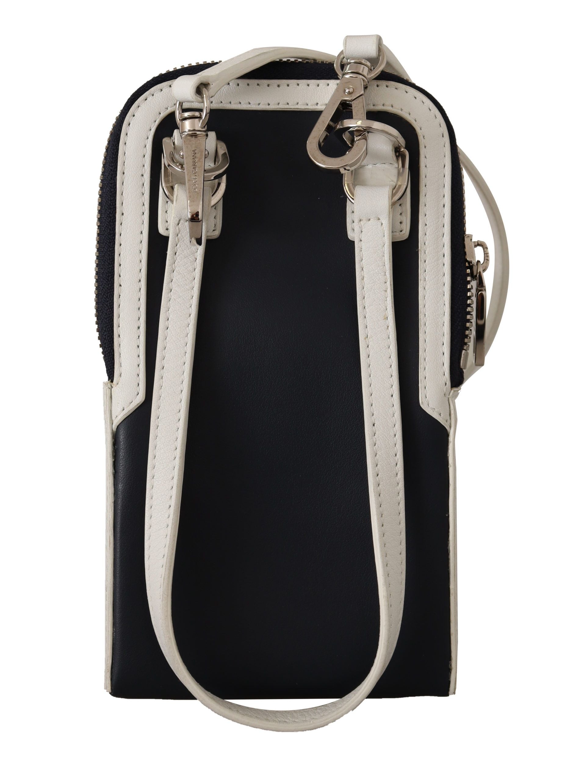 Step up your style with this authentic Dolce & Gabbana phone pocket neck strap, perfect for keeping your essentials within reach. In a classy blue and white print, and crafted from premium leather, this accessory is not only fashionable but also functional with multiple card slots and a secure zipper closure. The detachable neck/shoulder strap provides versatility, ensuring you carry your device with ease and elegance. Made in Italy, it is a testament to impeccable craftsmanship and timeless design.