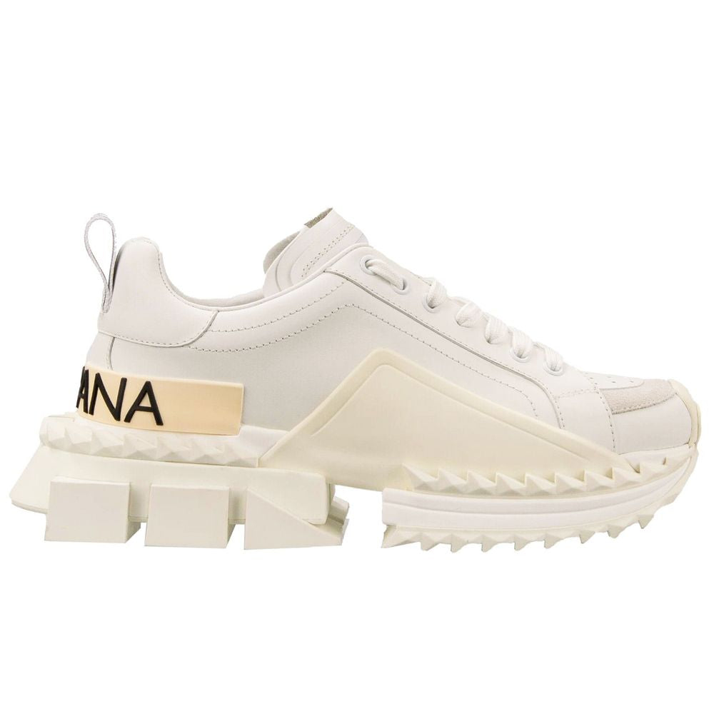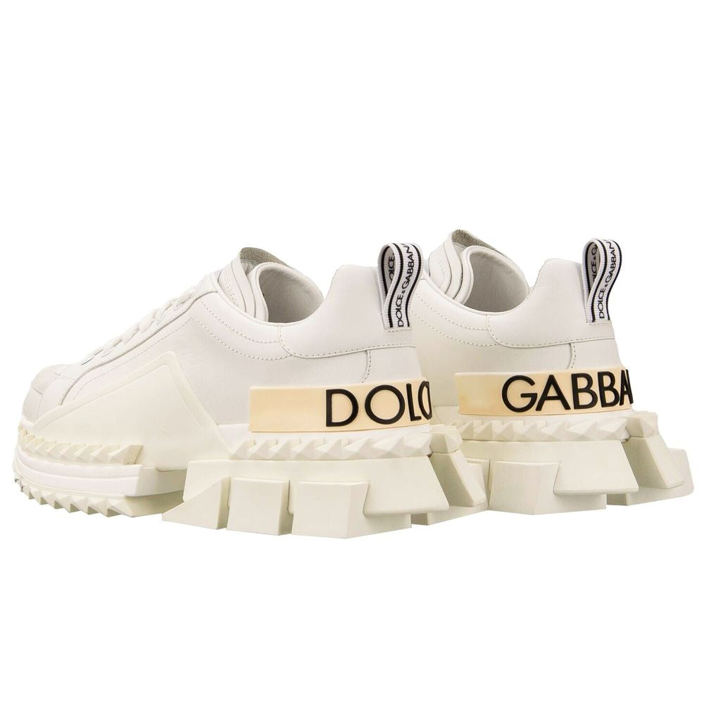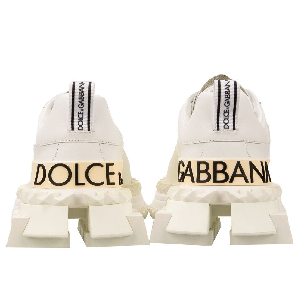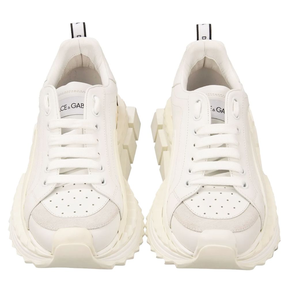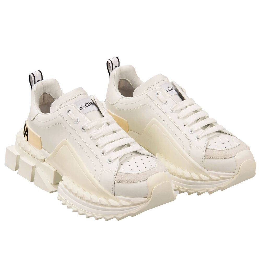 Dolce & Gabbana white calfskin and viscose leather sneakers with white rubber high sole, suede toe part