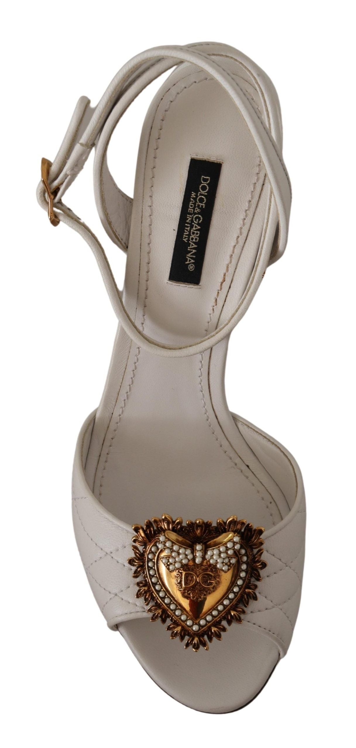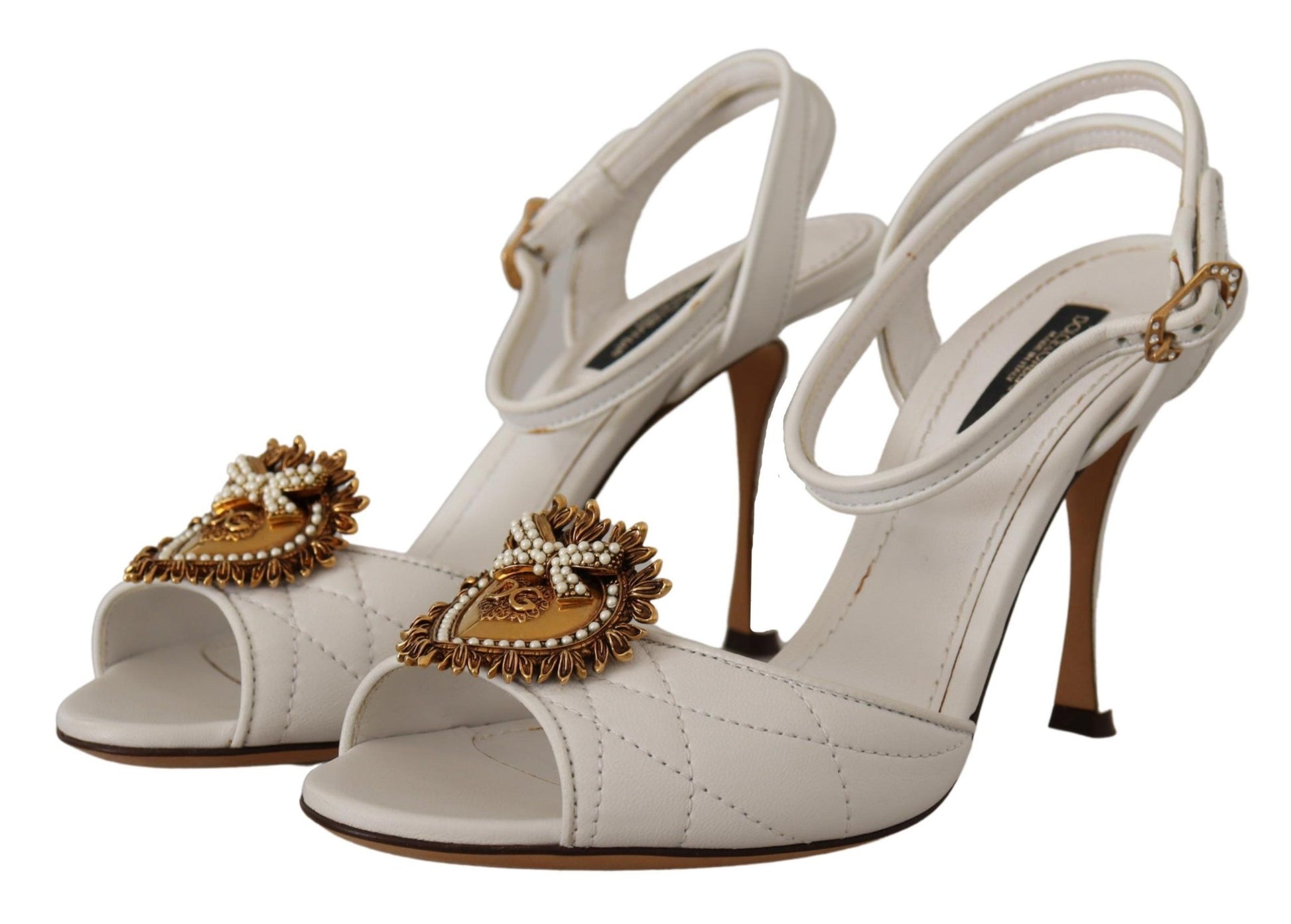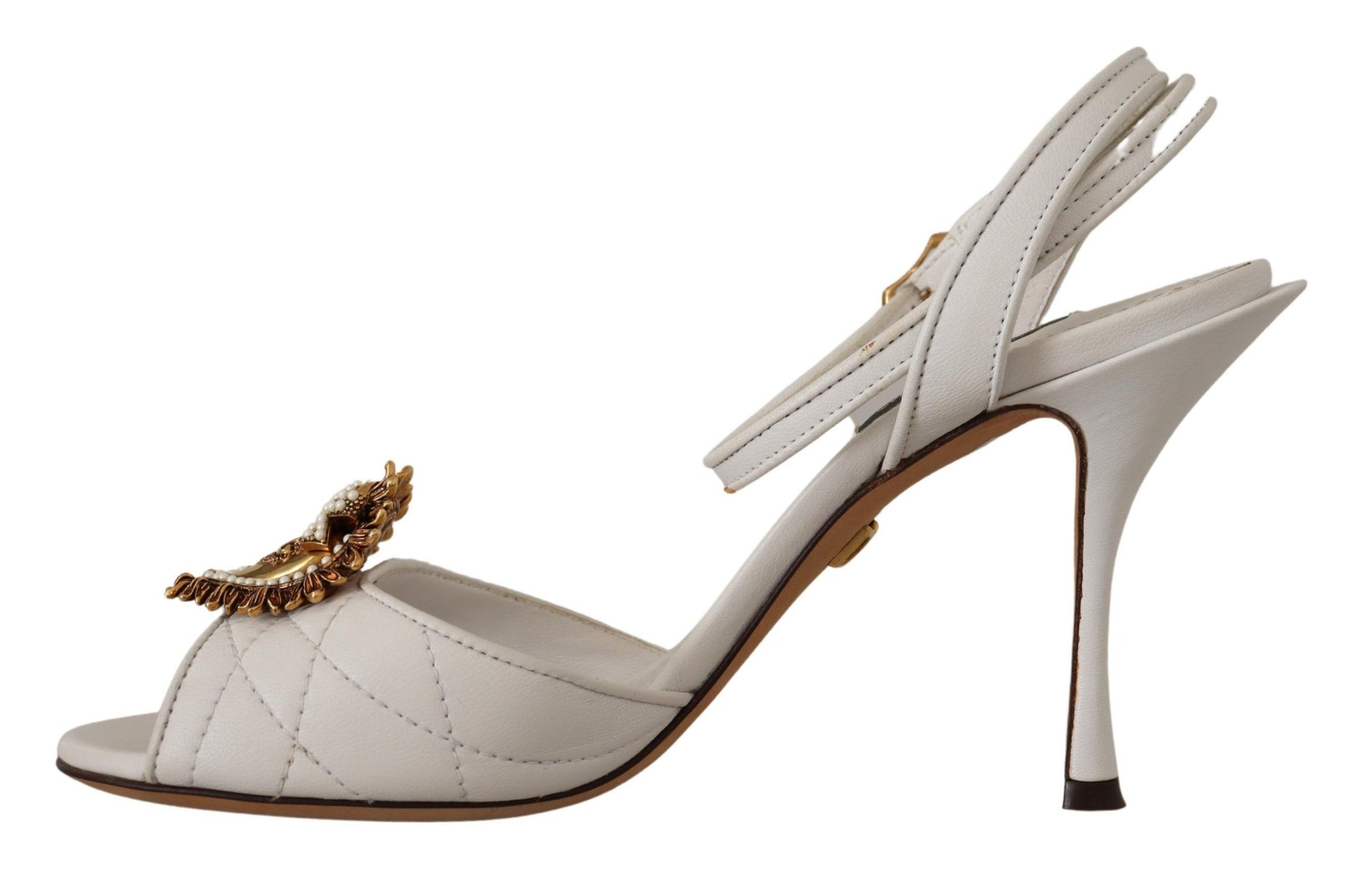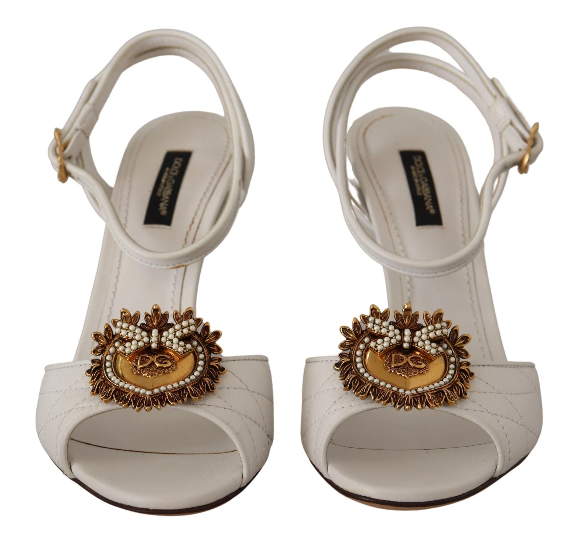 Discover the epitome of elegance with these pristine white and gold heeled sandals from Dolce & Gabbana. Designed for those who don’t compromise on luxury, the ‘Devotion’ line offers an unmatched level of sophistication and quality. Adorned with subtle logo details for a touch of exclusivity, each pair is a testament to Italian craftsmanship. Perfect for elevating your evening attire, these heels will carry you with grace and style.