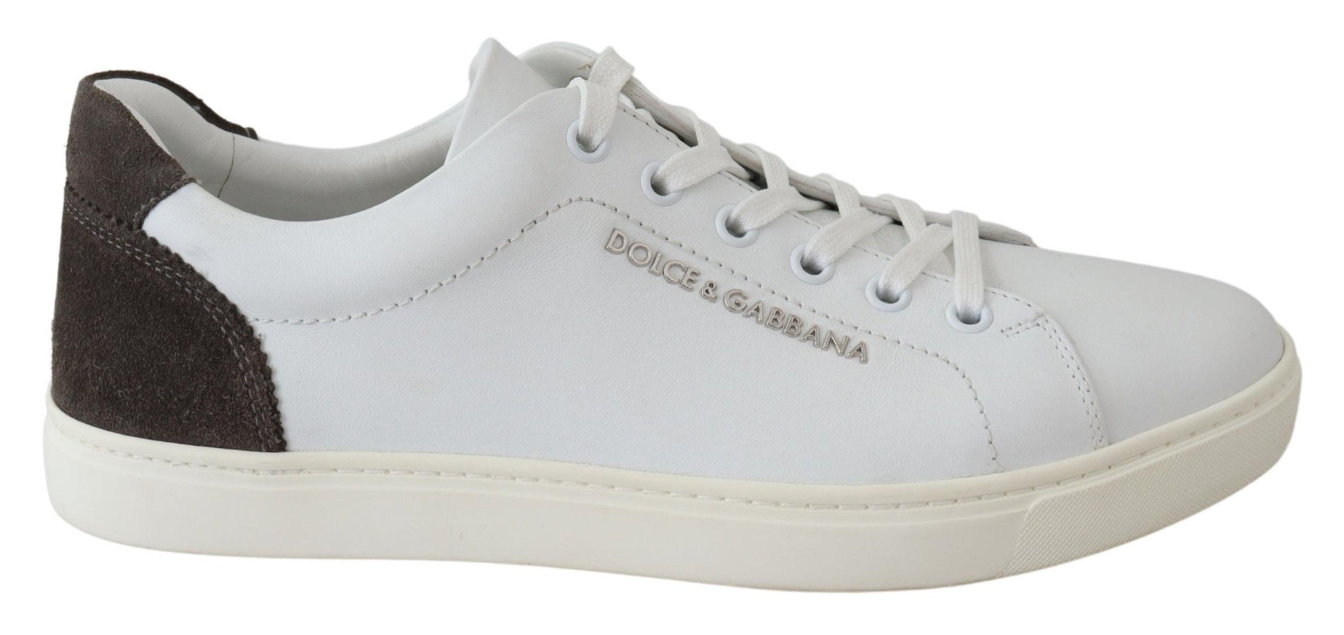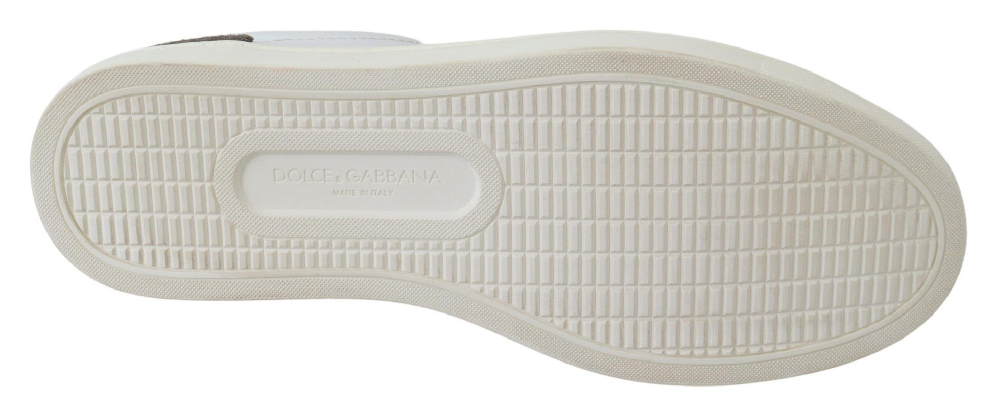 Discover the epitome of Italian craftsmanship with these sleek Dolce & Gabbana low top sneakers. Designed for the fashion-savvy individual, these sneakers come brand new in box, ensuring authentic luxury and unparalleled style. Crafted from sumptuous 100% leather, the white and gray colorway offers versatility for any ensemble, while the durable rubber sole provides comfort and longevity. Featuring the iconic logo, these sneakers are a testament to the excellence of ‘Made in Italy’.